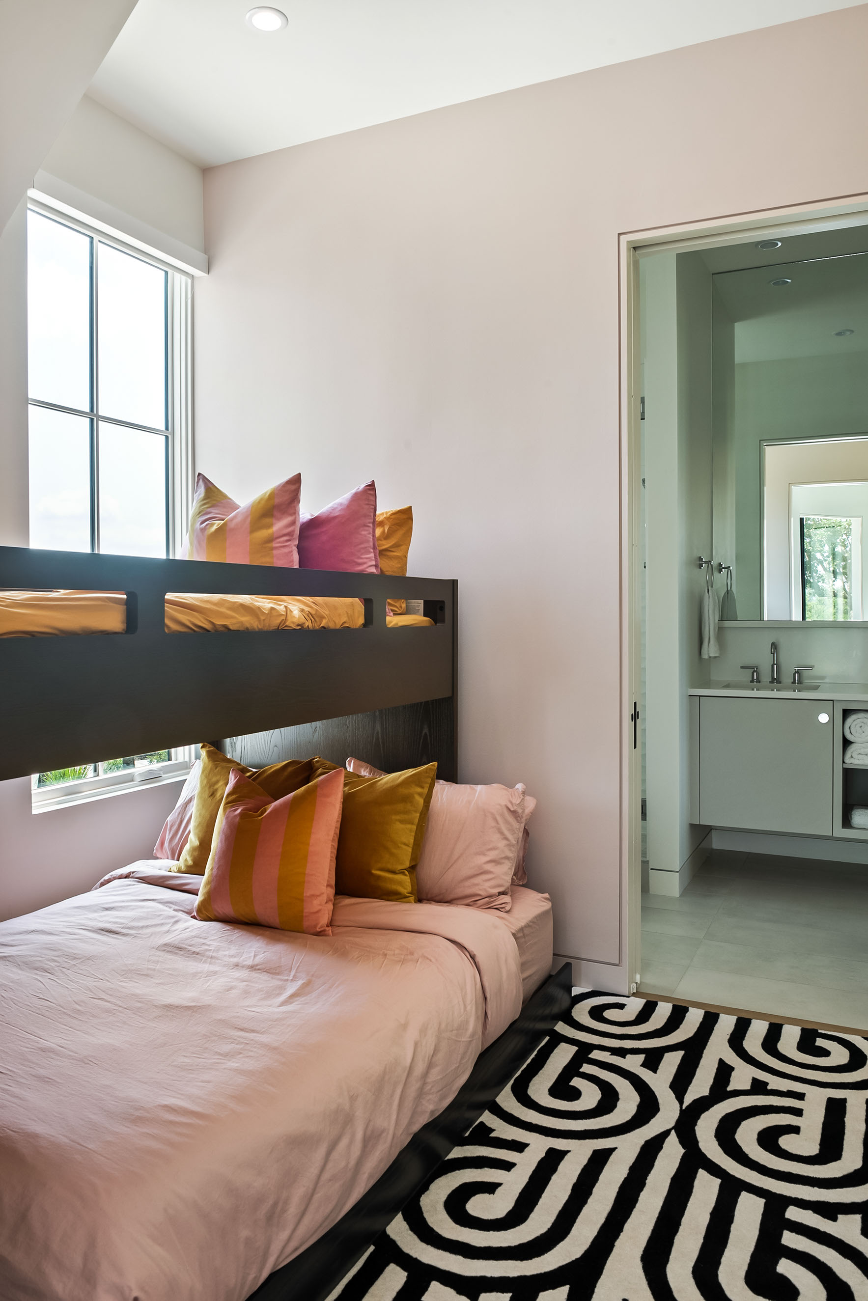 Bunk beds also make it easy to host cousins and friends without dragging mattresses across the floor. This room stays relatively simple so that it can flex between everyday use and extra guests.