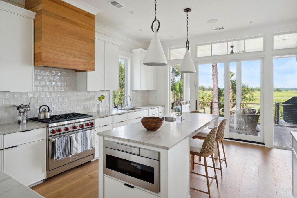 At the top of the kitchen trends list for 2024, warm-toned wood elements contribute to the rustic, lived-in feel we’re seeing in projects across the Lowcountry.