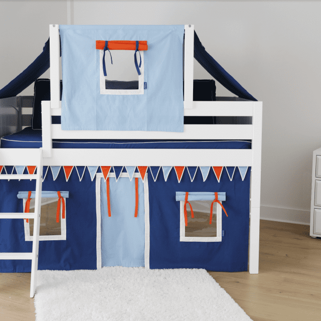 Maxtrix® furniture is based on a system that allows you to adjust the pieces as your child ages and their needs change. The leg extension system means you can start with a basic bed and raise it to any height, enabling the creation of a bunk bed, or even a triple bunk bed. They also offer connection kits that can let you create nearly endless combinations—parallel bunk beds, L-shaped, twin over full…the list goes on and on.