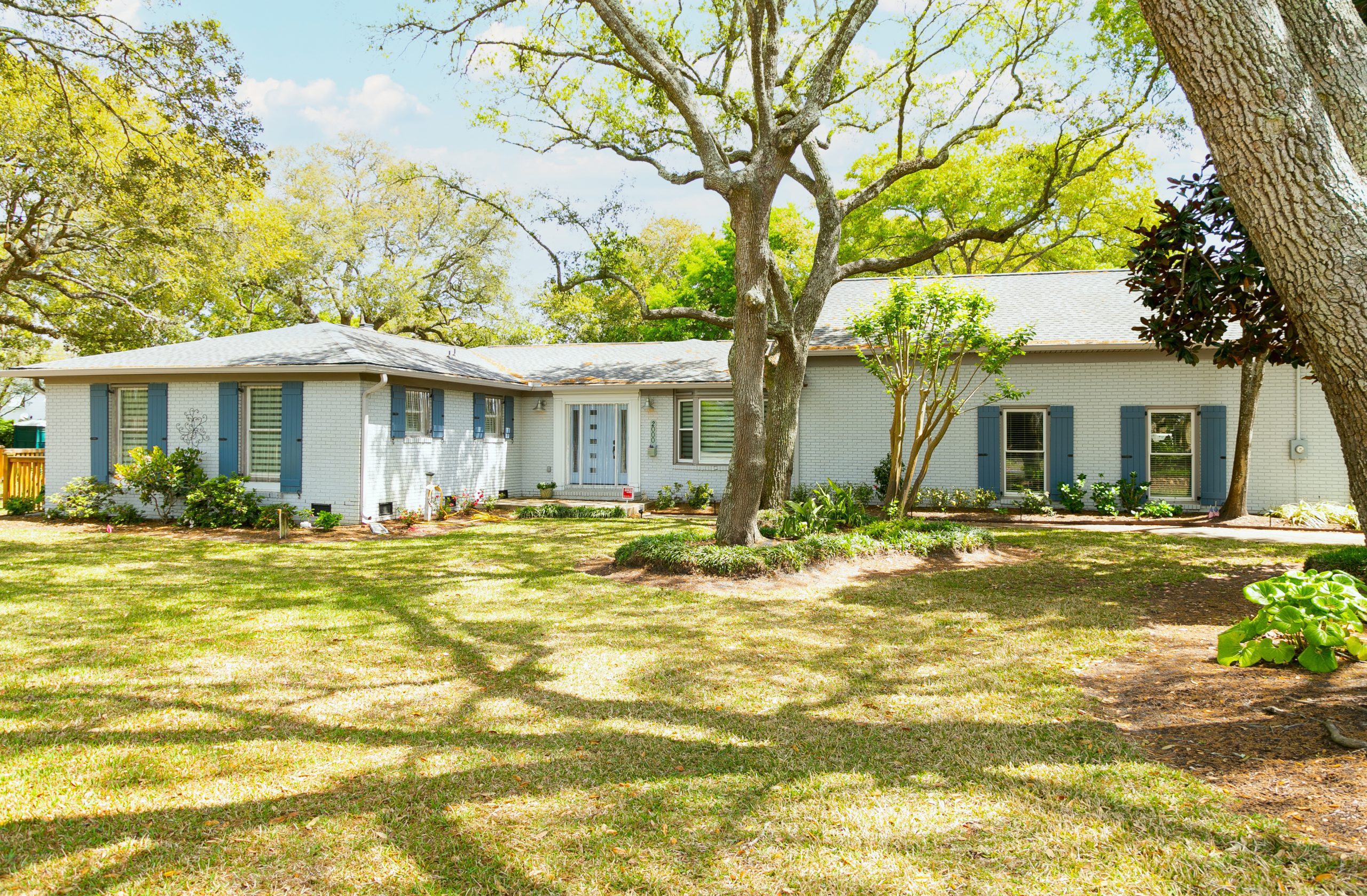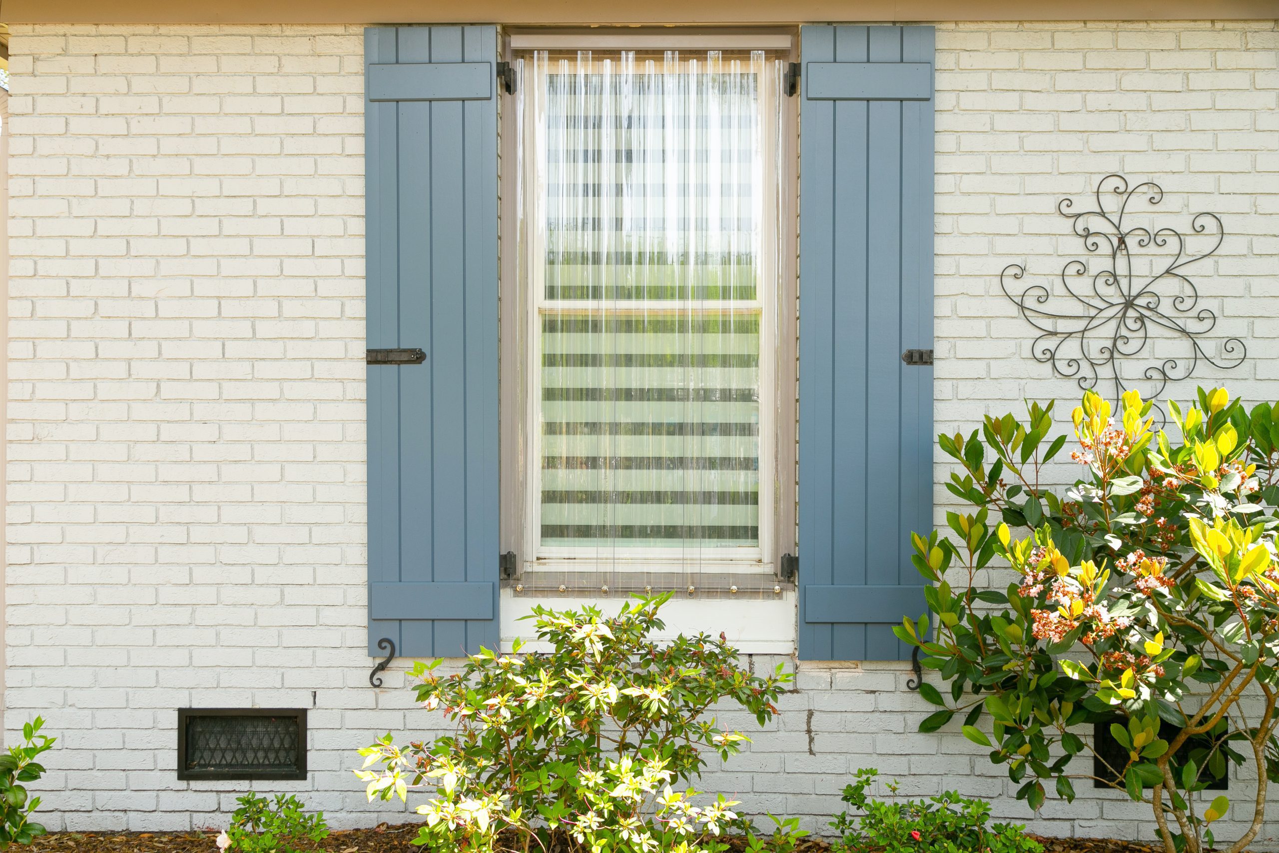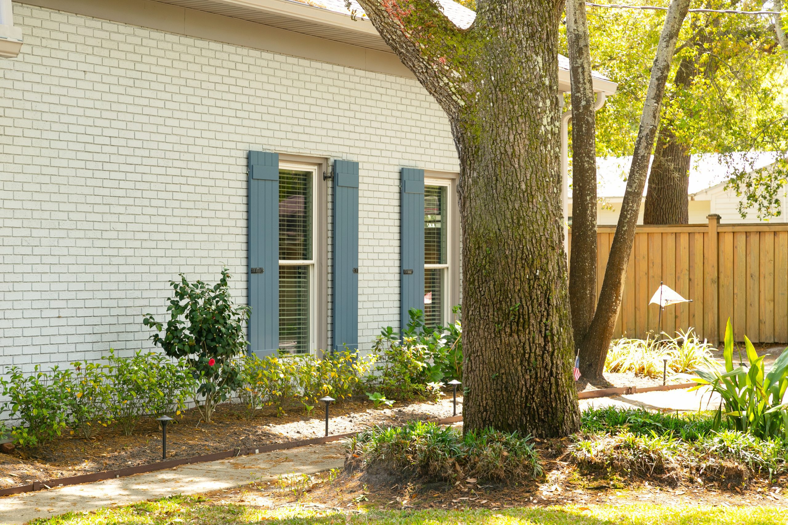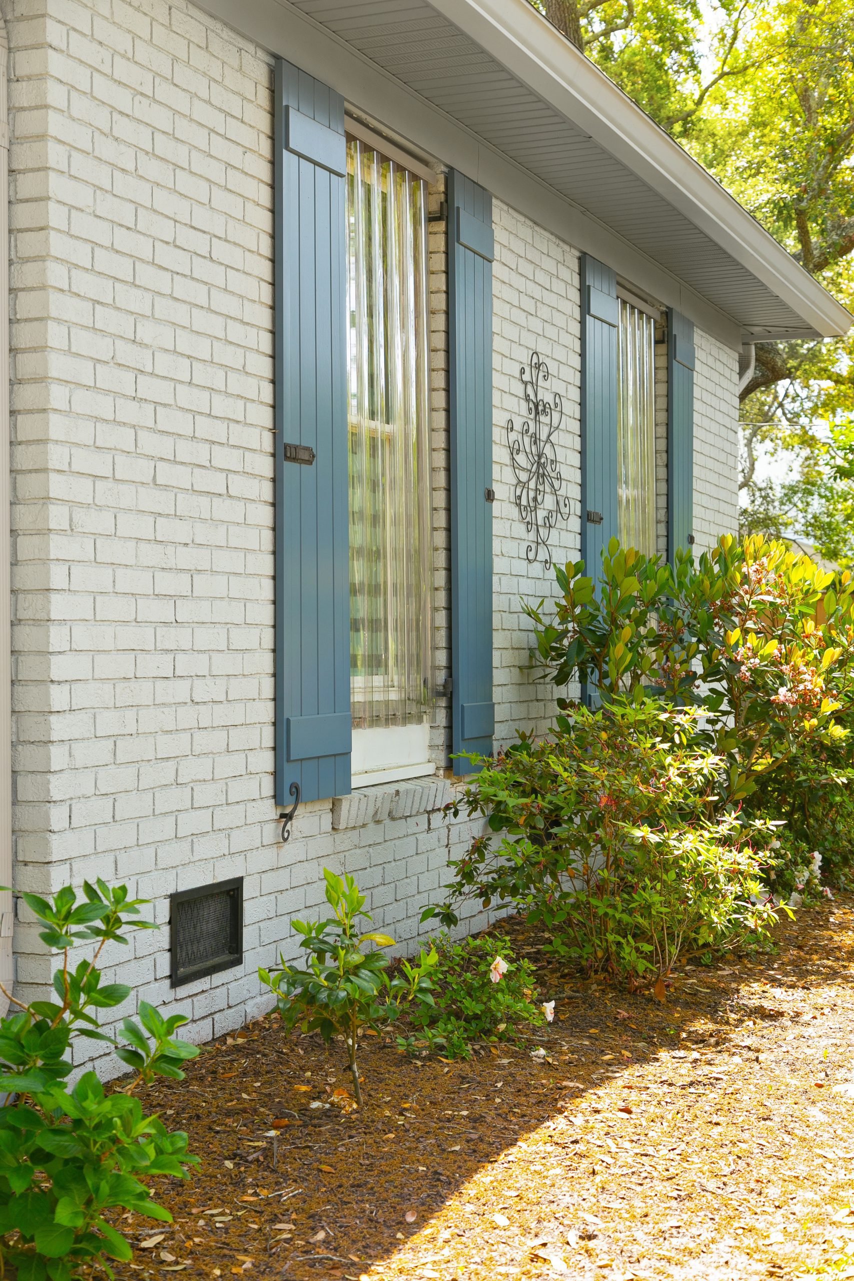 Don’t forget about your front door! A front door with color never fails, especially when coordinated with the shutters. This home opted for a slightly lighter blue than their shutters and it clearly brightens the entrance.