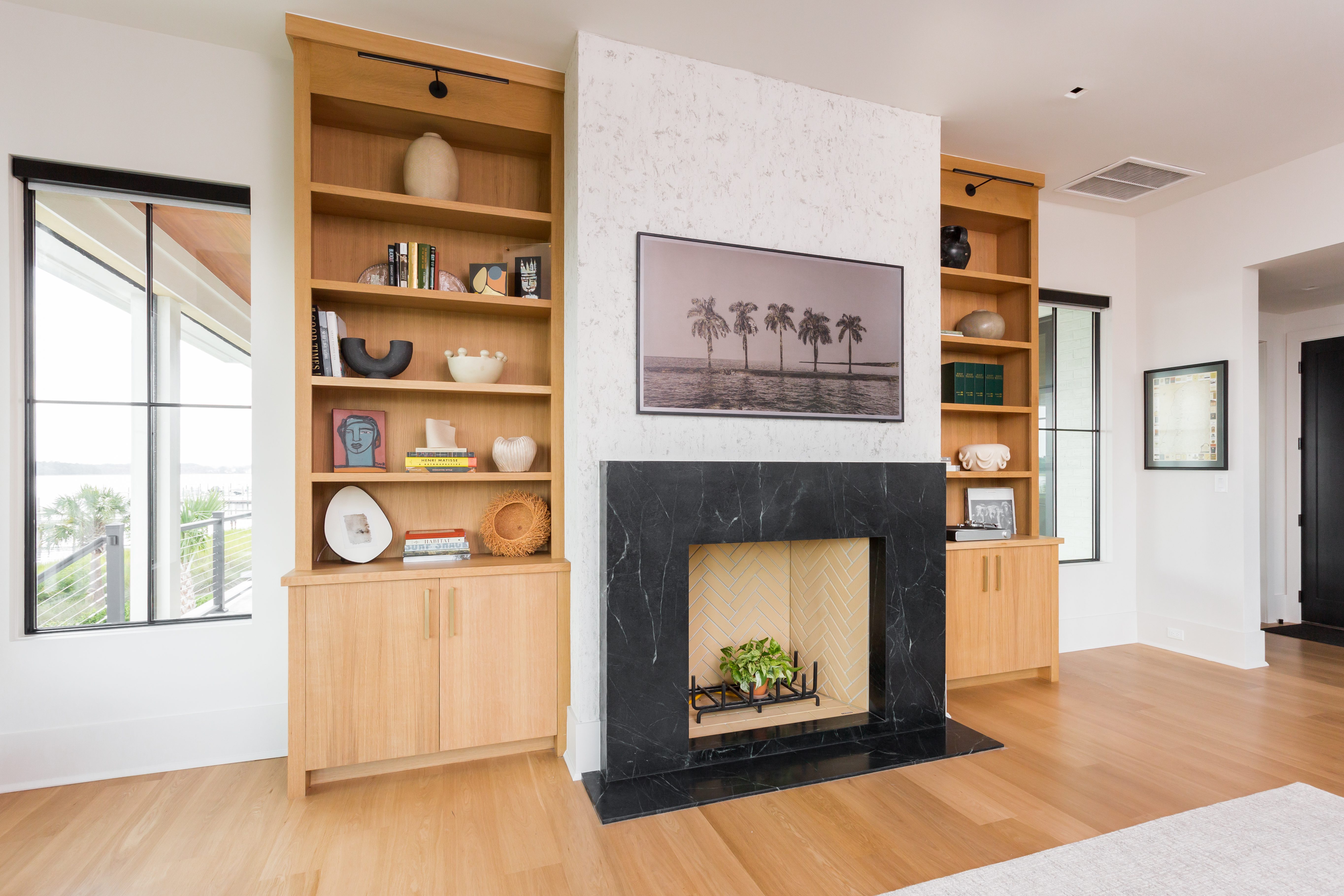 The home’s direct river access placed it within a critical OCRM line, prohibiting construction there. Situated on the flood plain, the home required elevated livable space to meet code, rendering the bottom level uninhabitable. To maximize efficiency on the exterior, we collaborated with Zourzoukis Homes, as well as Tidal Creek Designs to rearrange the pool area and create a beautiful outdoor living space.