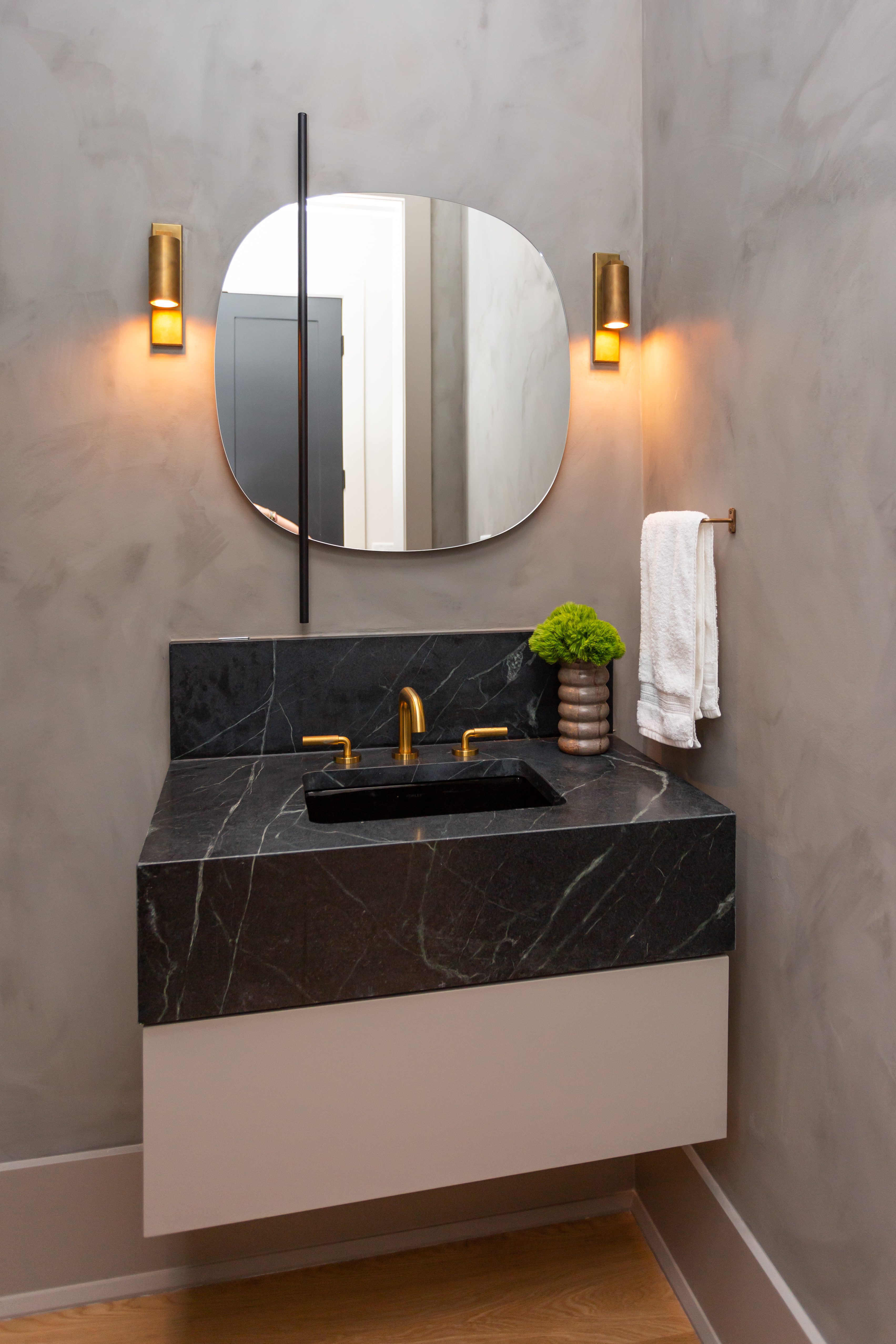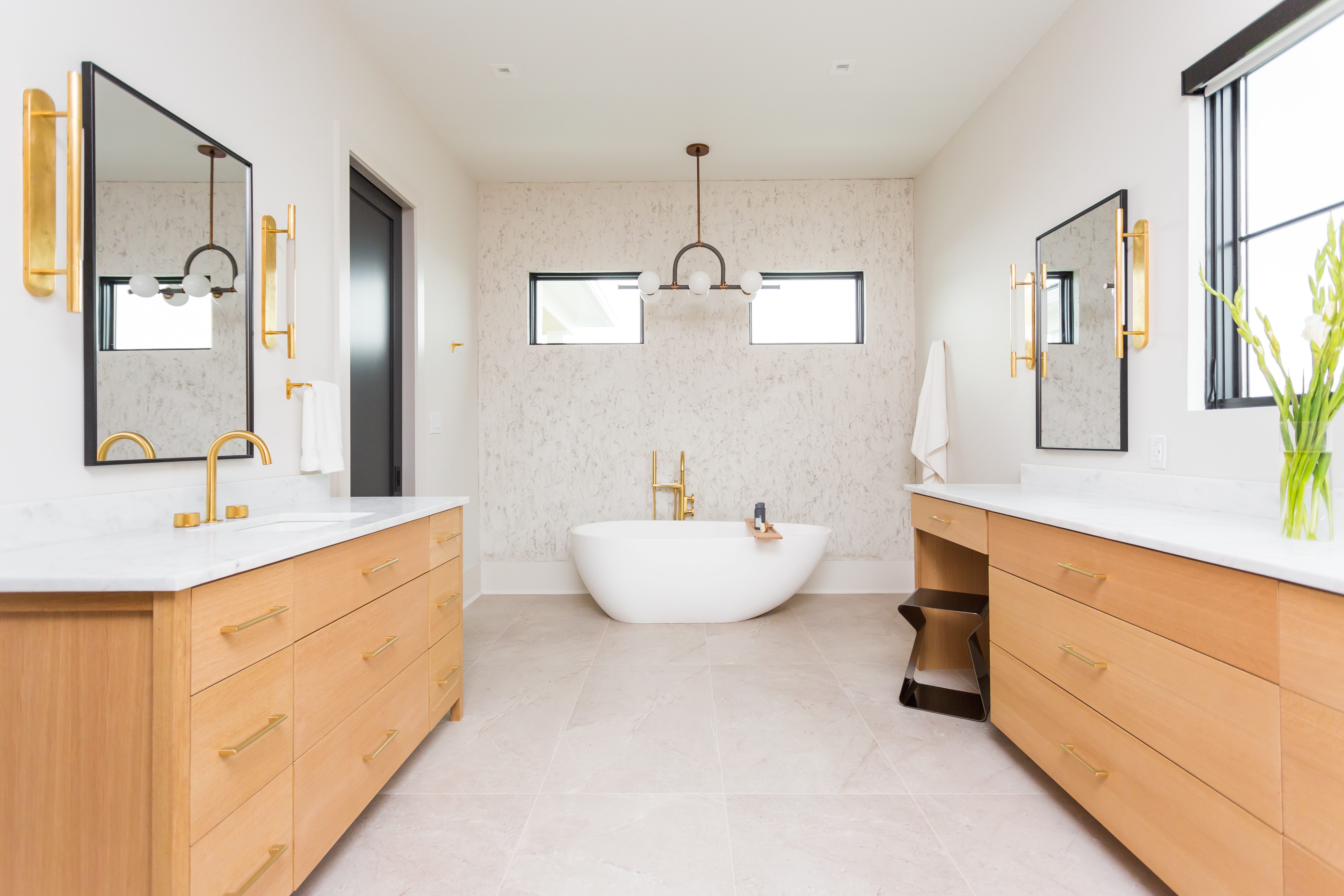 The original design had awkward angles and obstructive doors, so the interior layout was adjusted, adding a bathroom to the front of the house, closing in an exterior patio off the wall for a walk-in pantry, gutting the bathrooms, and incorporating pocket doors to optimize the space. Becca Jones Interiors was instrumental in striking the perfect balance.