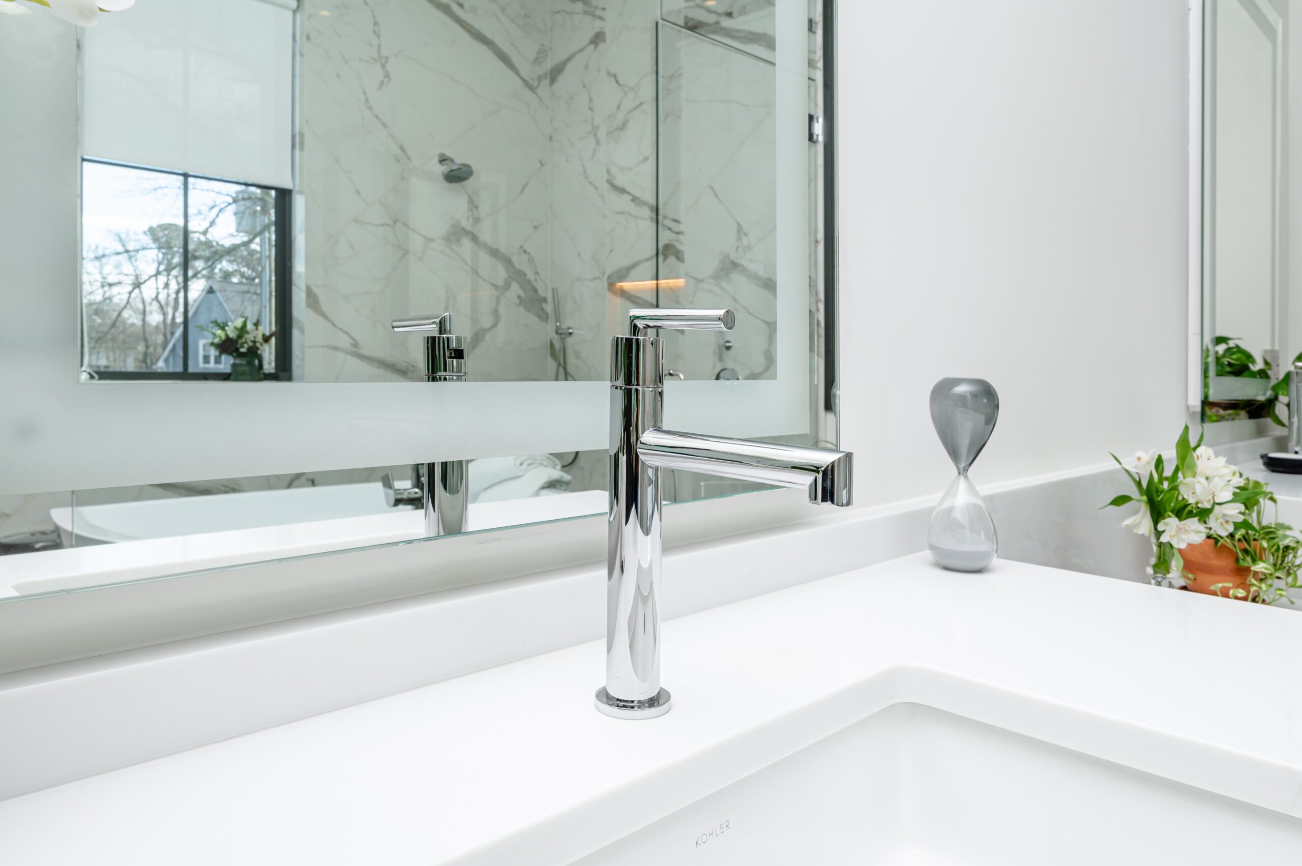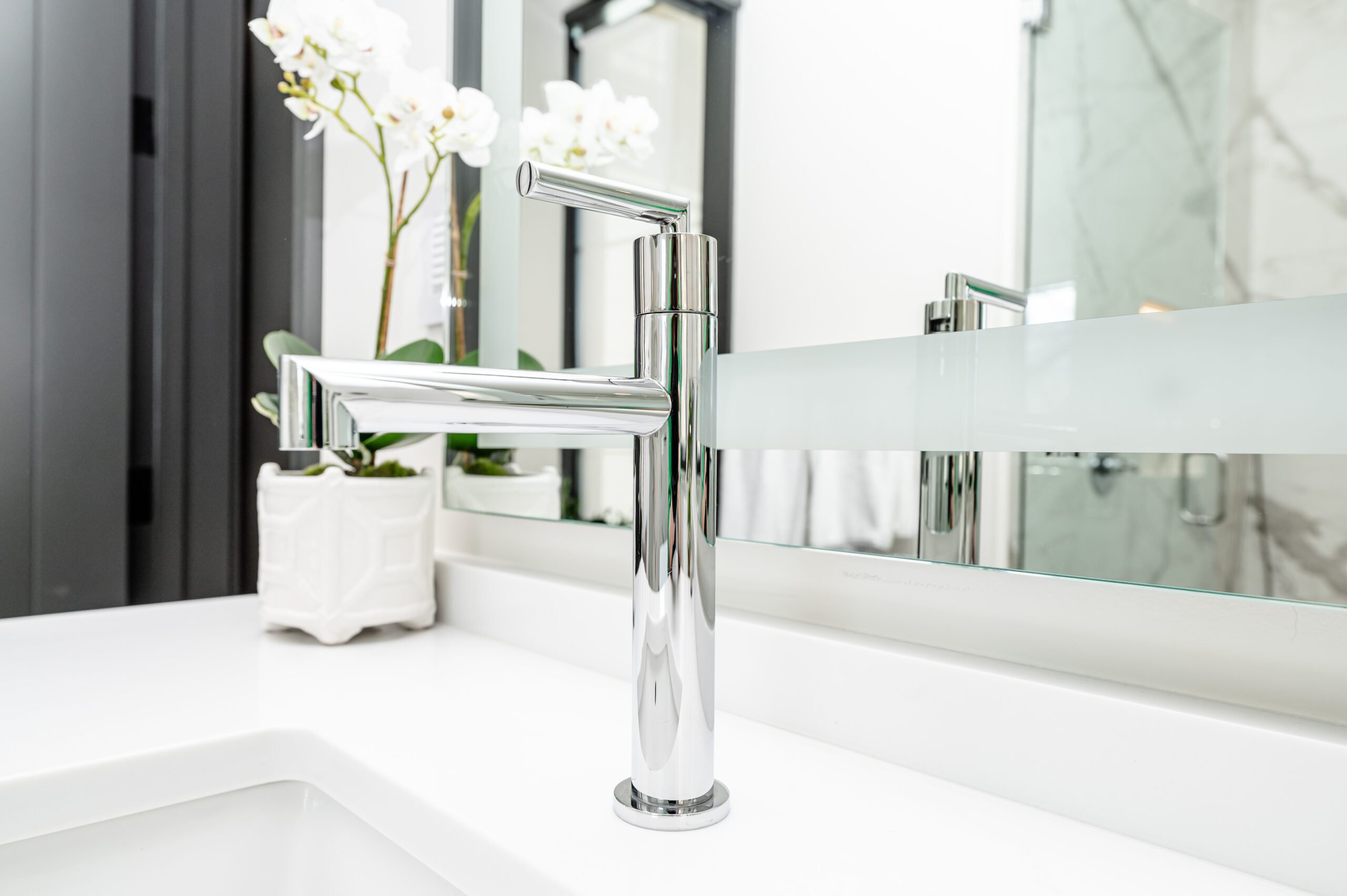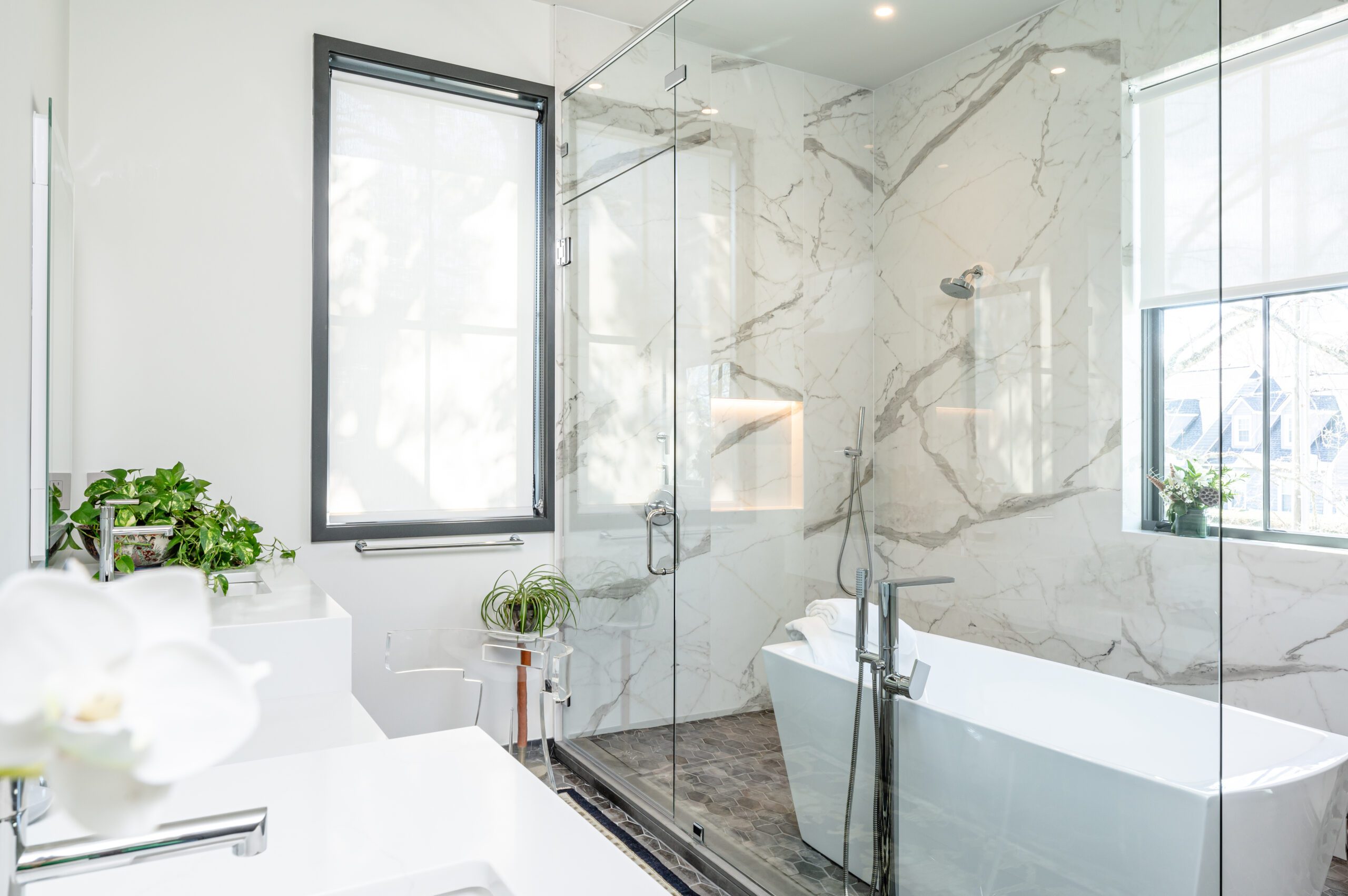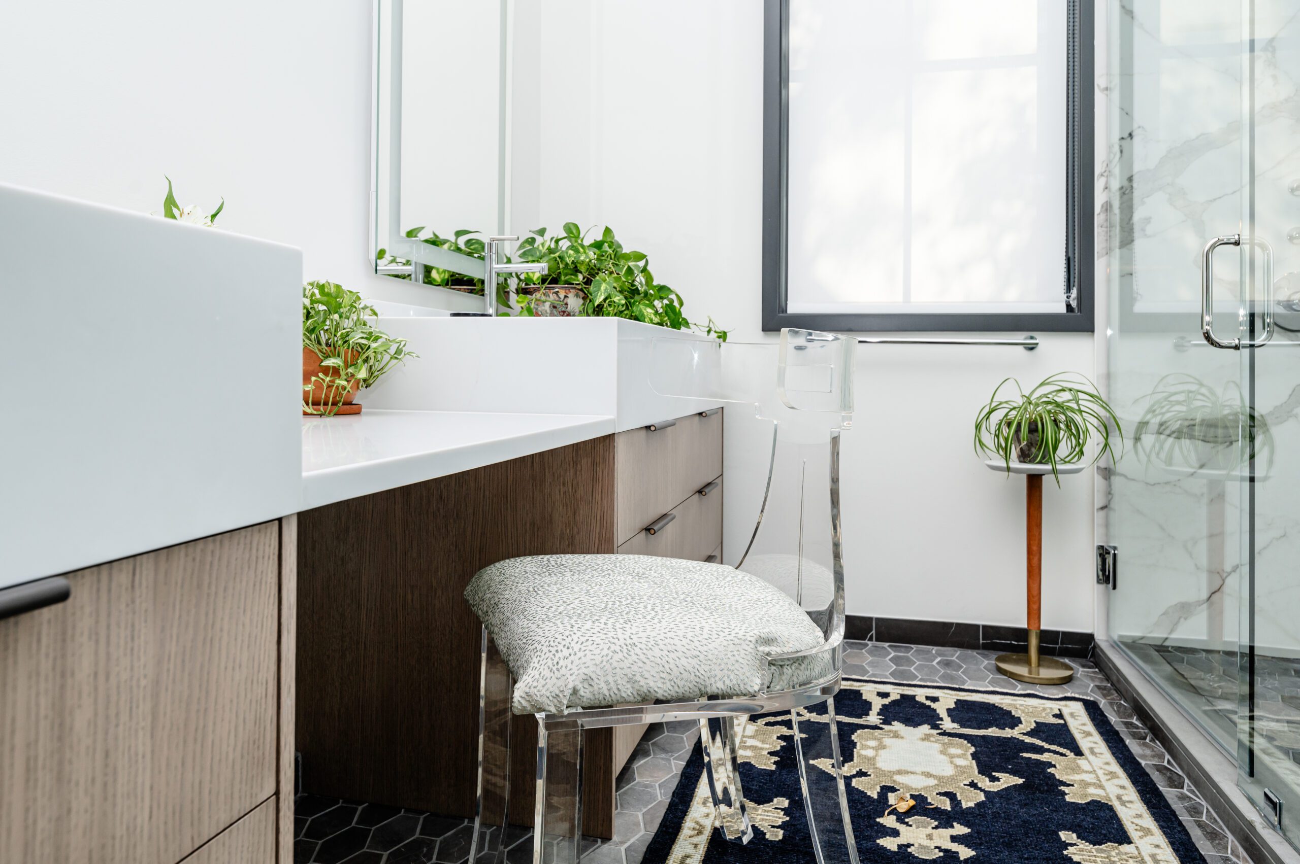 The interior design team at Malatich Cochran Design transformed this primary bathroom alongside the builders of Sifly Homes to create a contemporary wet room complete with two showers, an integrated soaking tub, and a separate water closet.