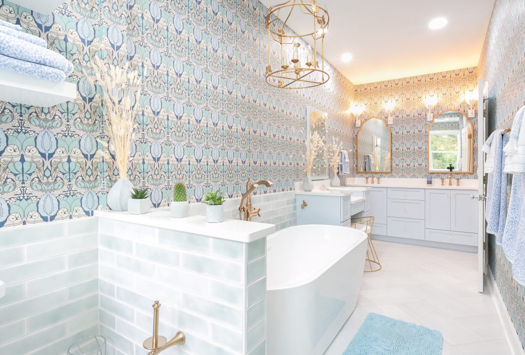 Many homeowners opt for a freestanding bathtub and a larger shower space. Knowing this ahead of time allows for proper planning of backsplash and wallpaper placement for long-term durability.