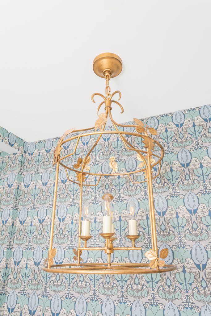 Decorative lighting makes a huge impact on a bathroom. How perfect is this brass owl birdcage light fixture from Rick’s Lighting?