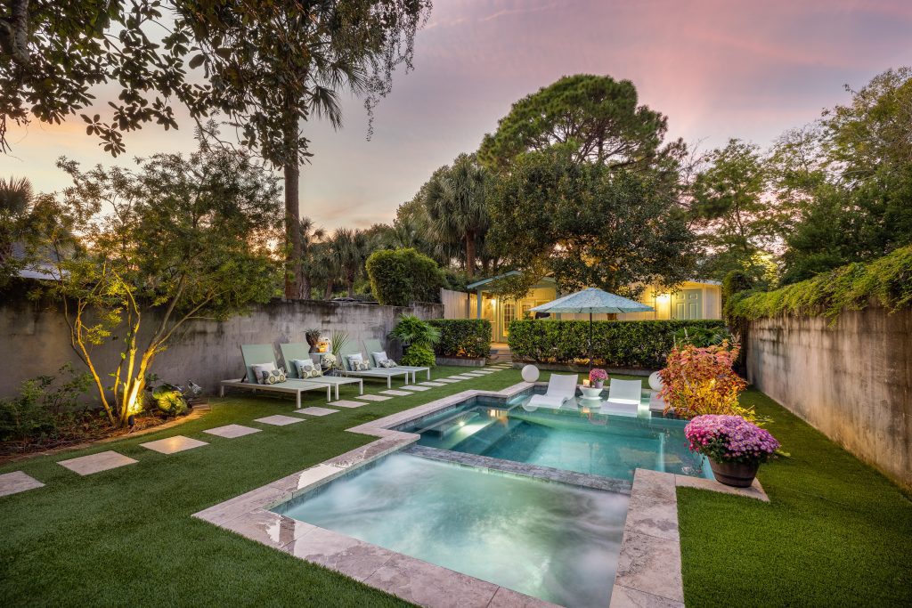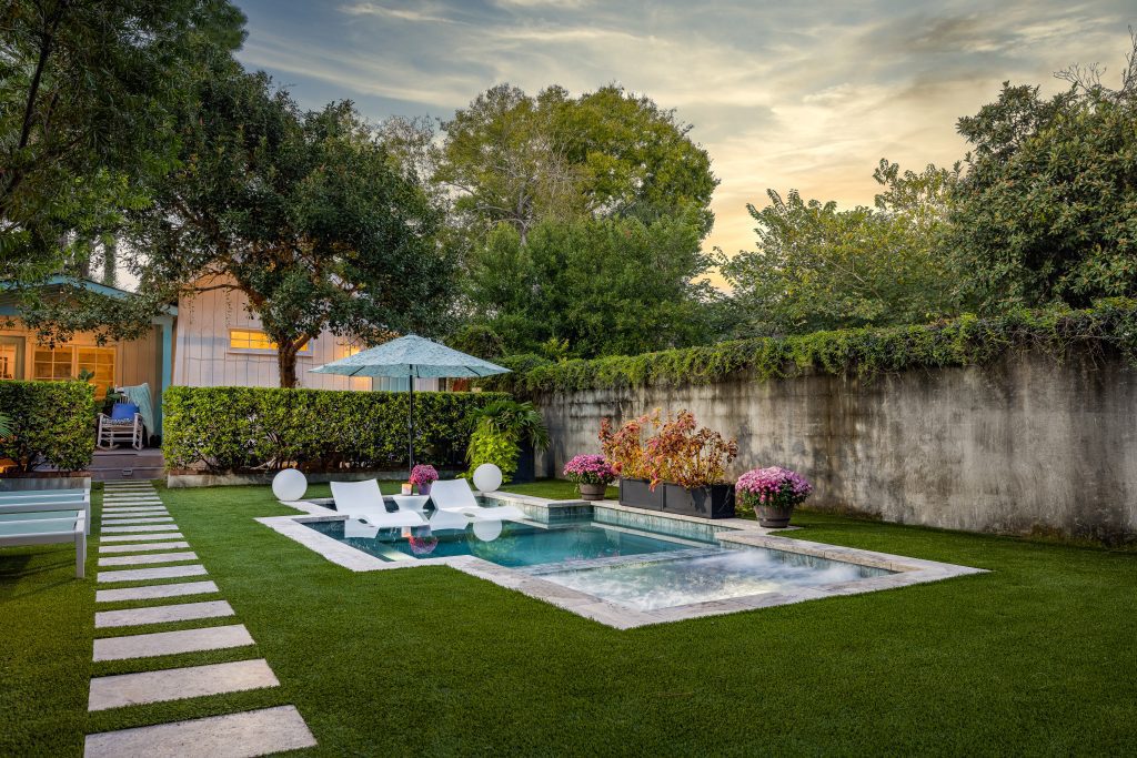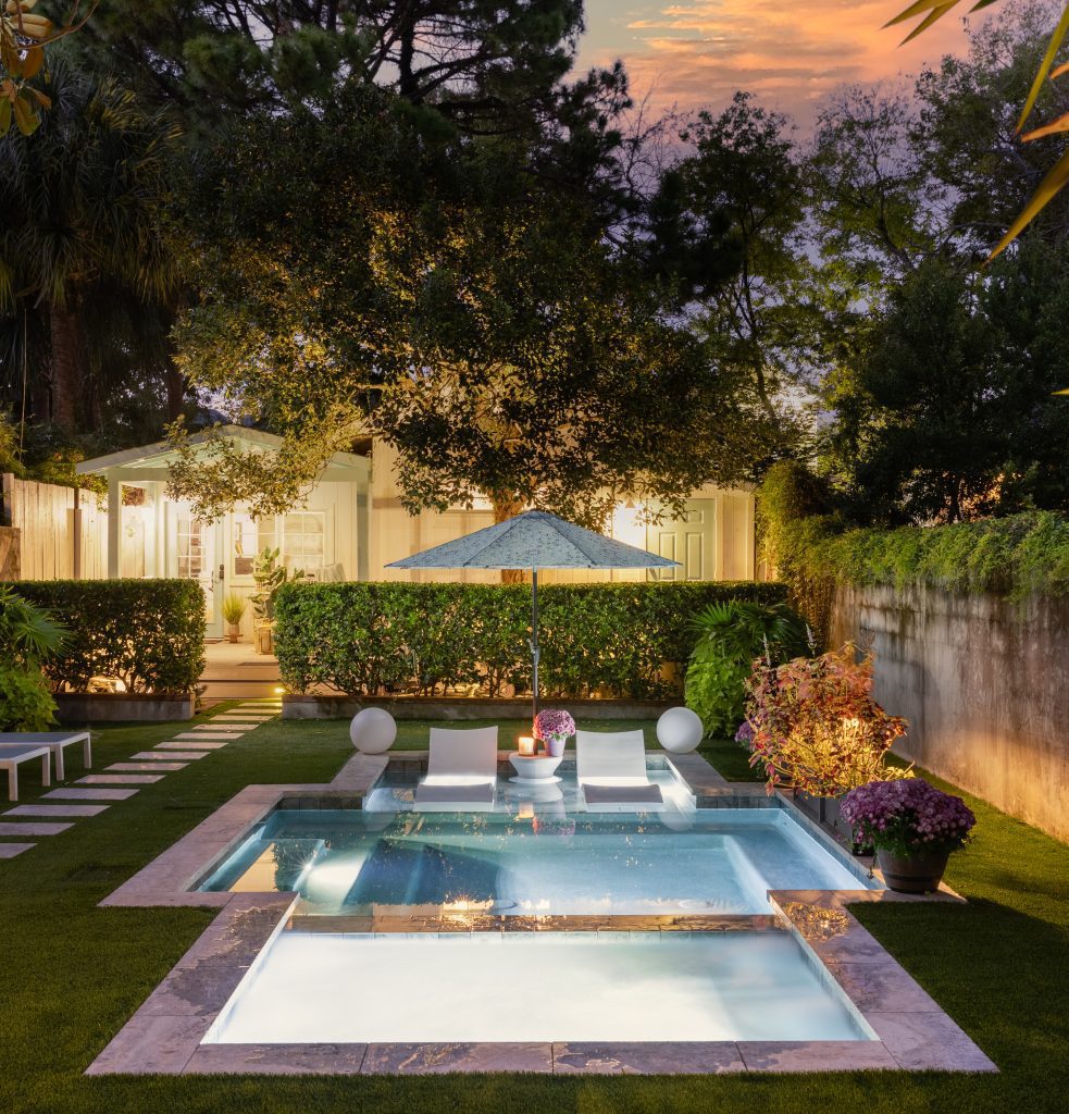 This Lowcountry pool by Heritage Pools, LLC has it all. Tucked away in the charming backyard of this Charleston home, the pool offers homeowners the perfect place for a summer pool party or just to take a dip after a long day. The modern lines of the pool marry contemporary design with the more classic feel of the landscape. This space is the outdoor oasis of the homeowners’ dreams.