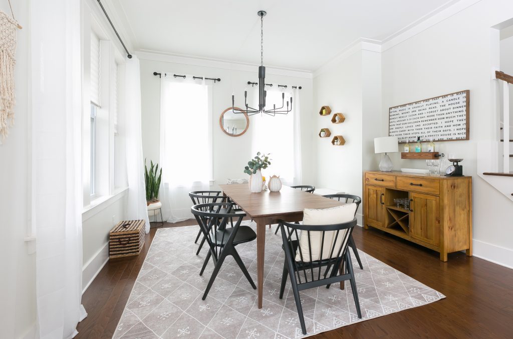 Let’s move on to wallpaper. I can’t stress enough the power of a good accent wall. To maintain that cohesiveness throughout the home, opt for similar patterns in similar hues, and paint the rest of the walls the same color as the background of the wallpaper so it blends together. As mentioned above, a whole room doesn’t need to be wallpapered; you absolutely can if you want, but an accent wall is just enough. Also, only use wallpaper in a few spaces; it’s unnecessary in every room.