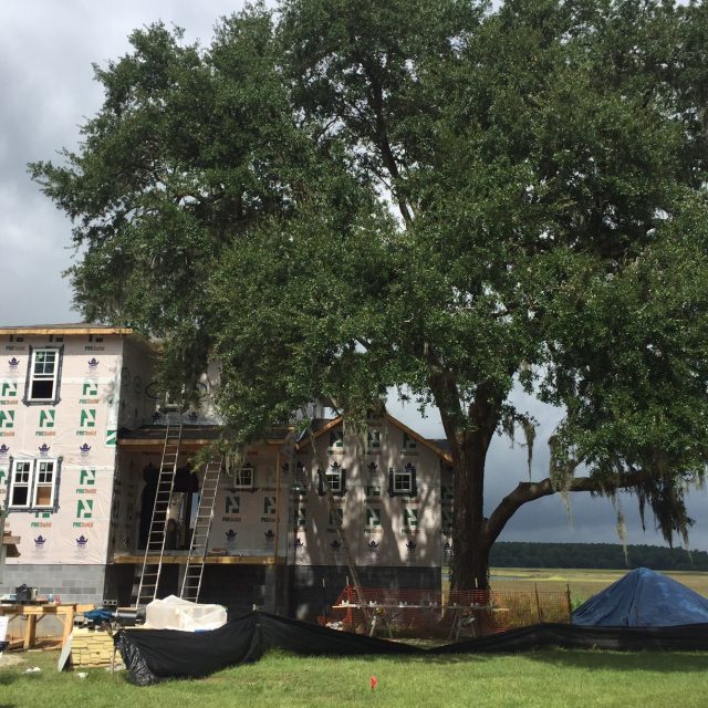 I approached the Town of Hollywood’s Board of Zoning and Appeals (BZA) to obtain two more variances for the rear and side setbacks. I also requested to withdraw the previous variance to remove the live oak. My husband and I actually went to the site one morning and got very creative in measuring a main leader of the tree to ensure the roof of the house would materialize below it.