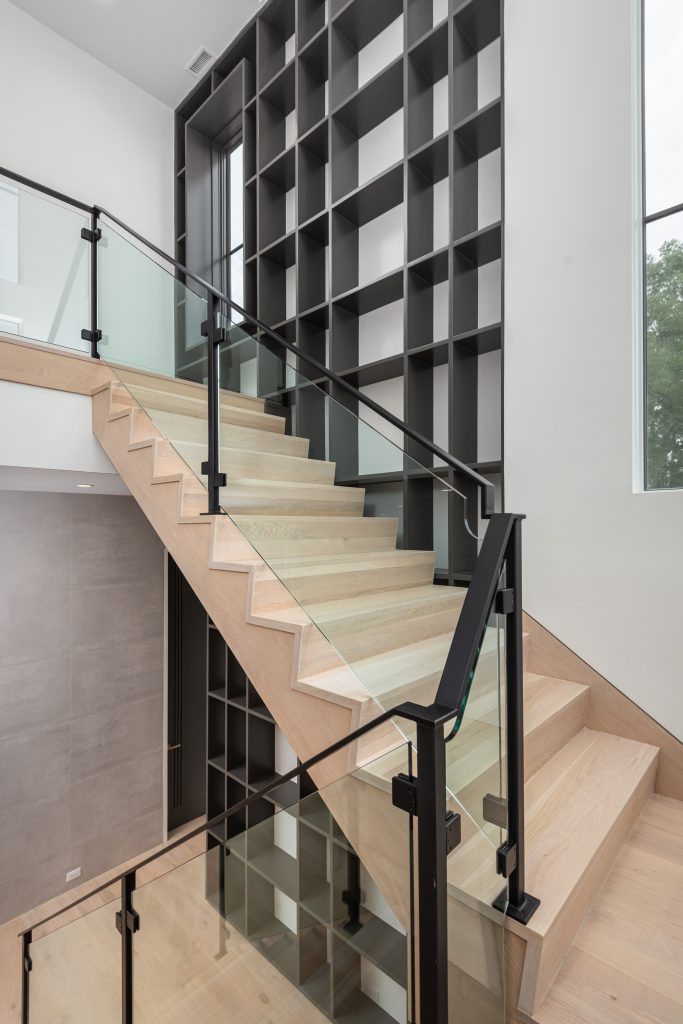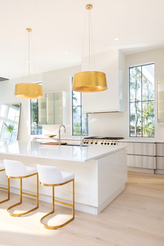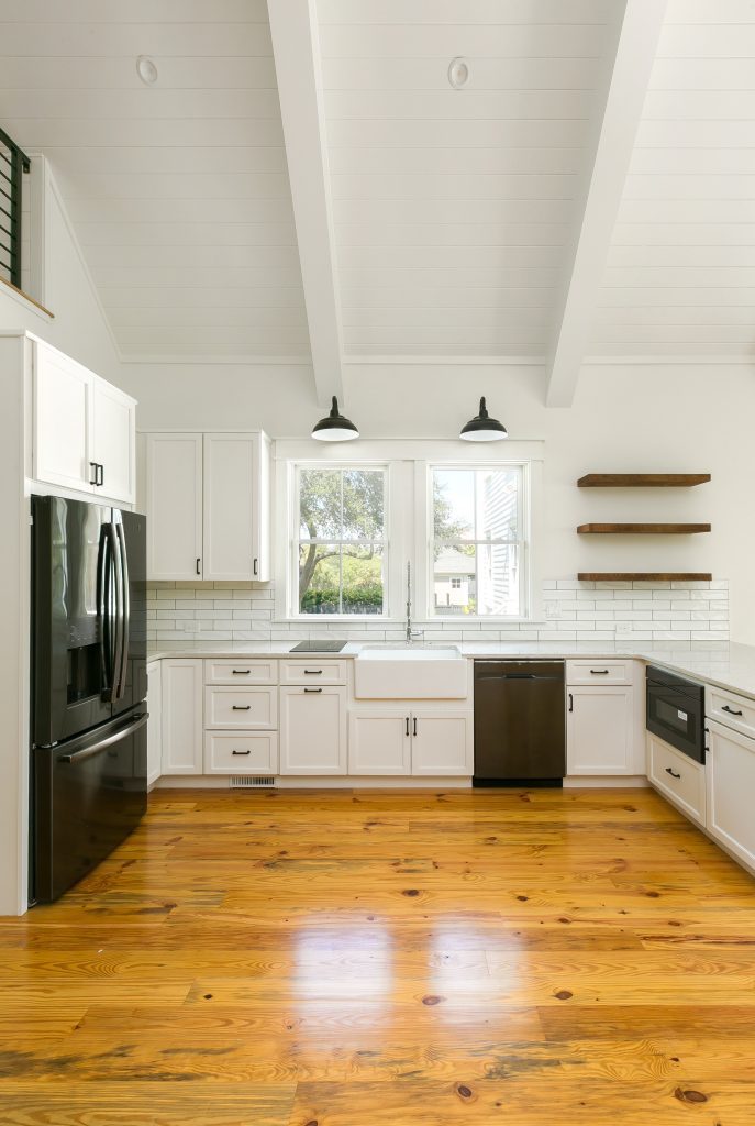 SHELTER designed this Daniel Island home with clean lines in mind. This is a modern space with an abundance of natural light. The focus was on form, function, and simplicity. Adding to the high quality design are the eco-friendly and energy efficient elements included in this home. They used LED can lights, tankless water heaters, spray foam insulation, high efficiency HVAC heat pumps, synthetic turf, and recycled decking.