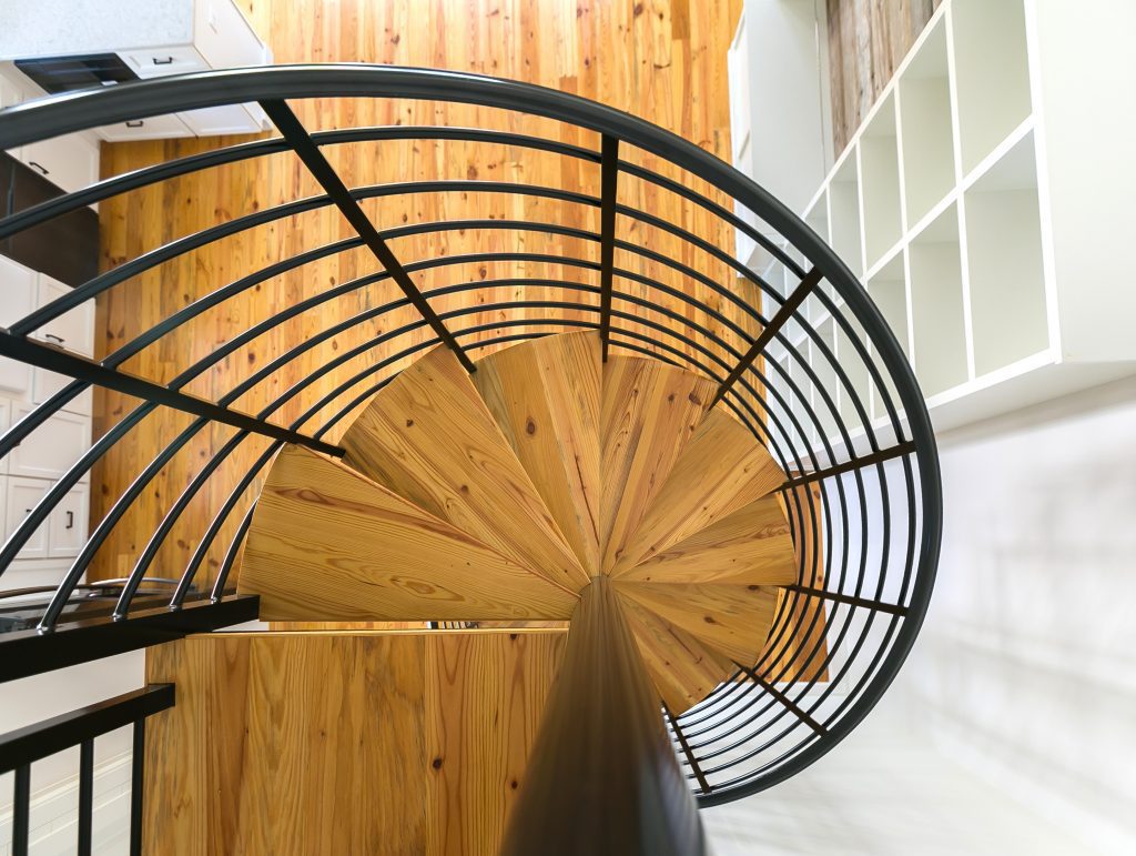 This custom home addition was connected via covered walkway. It was important to the owners that the addition meld well with the original house. SHELTER’s build-design team took the existing home’s exterior and interior details and developed an updated vision that included a new bathroom and spiral staircase.