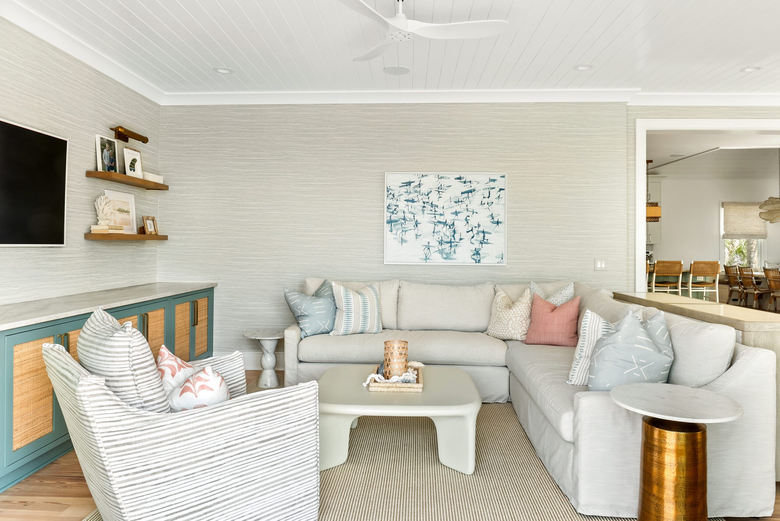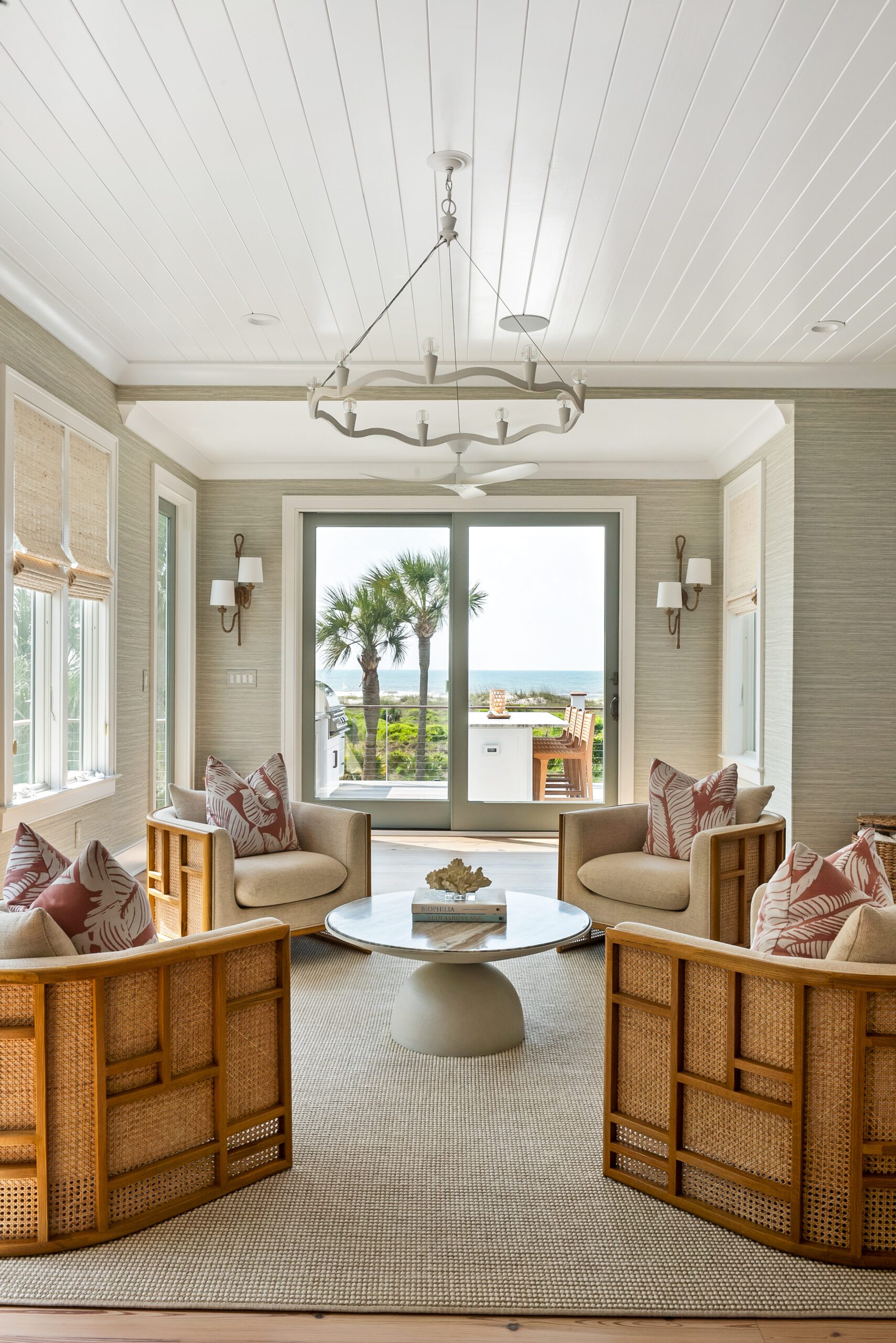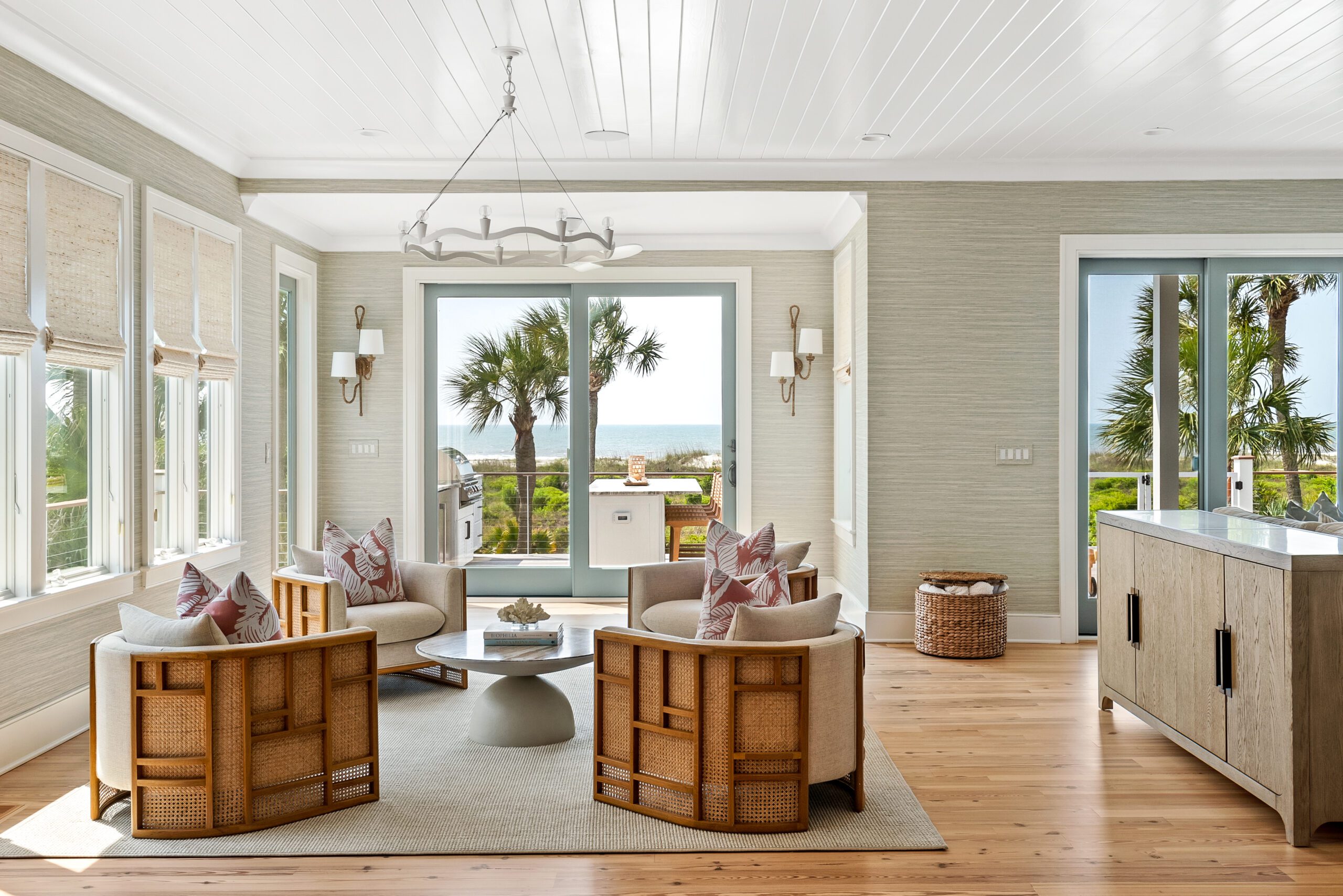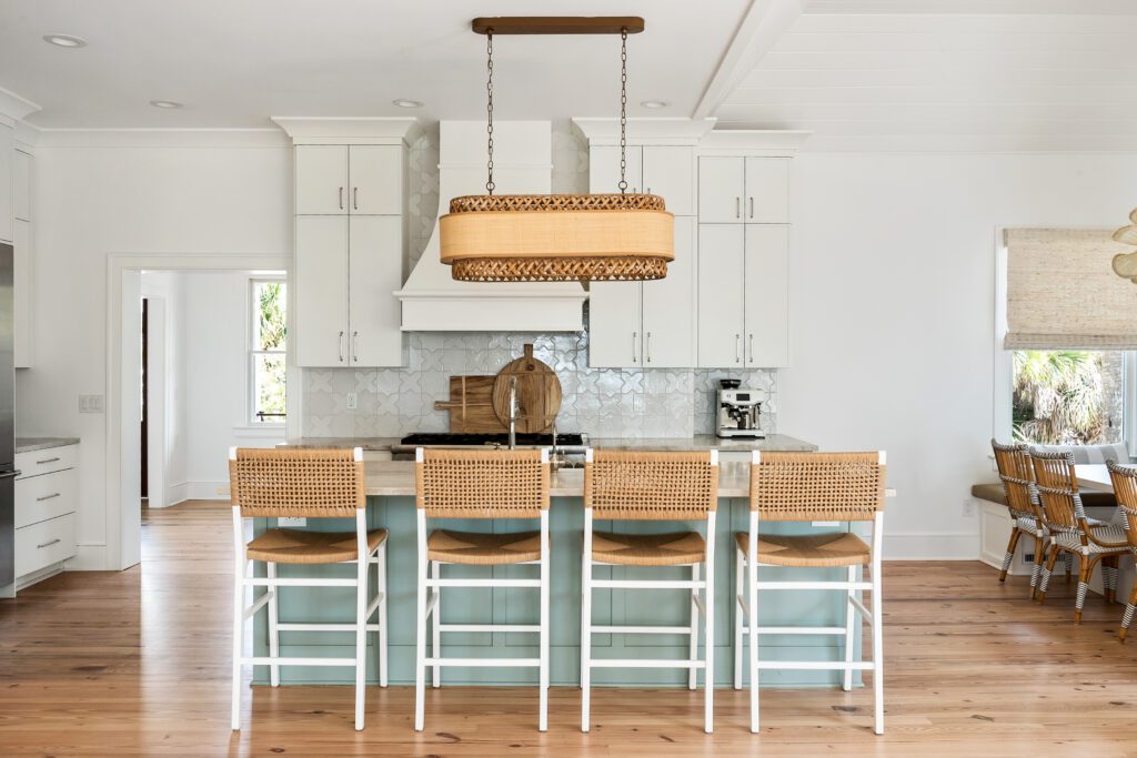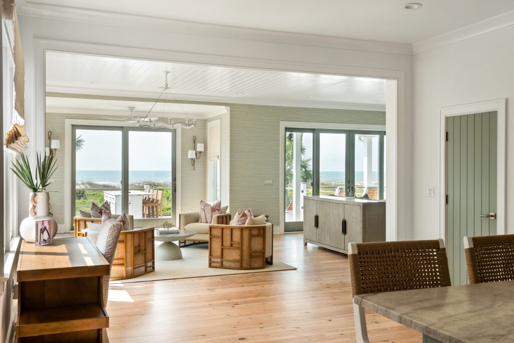“We carefully selected finishes, fixtures, lighting, materials, furnishings, rugs, and décor reflective of this home’s beachfront location for the family who loves to entertain.”