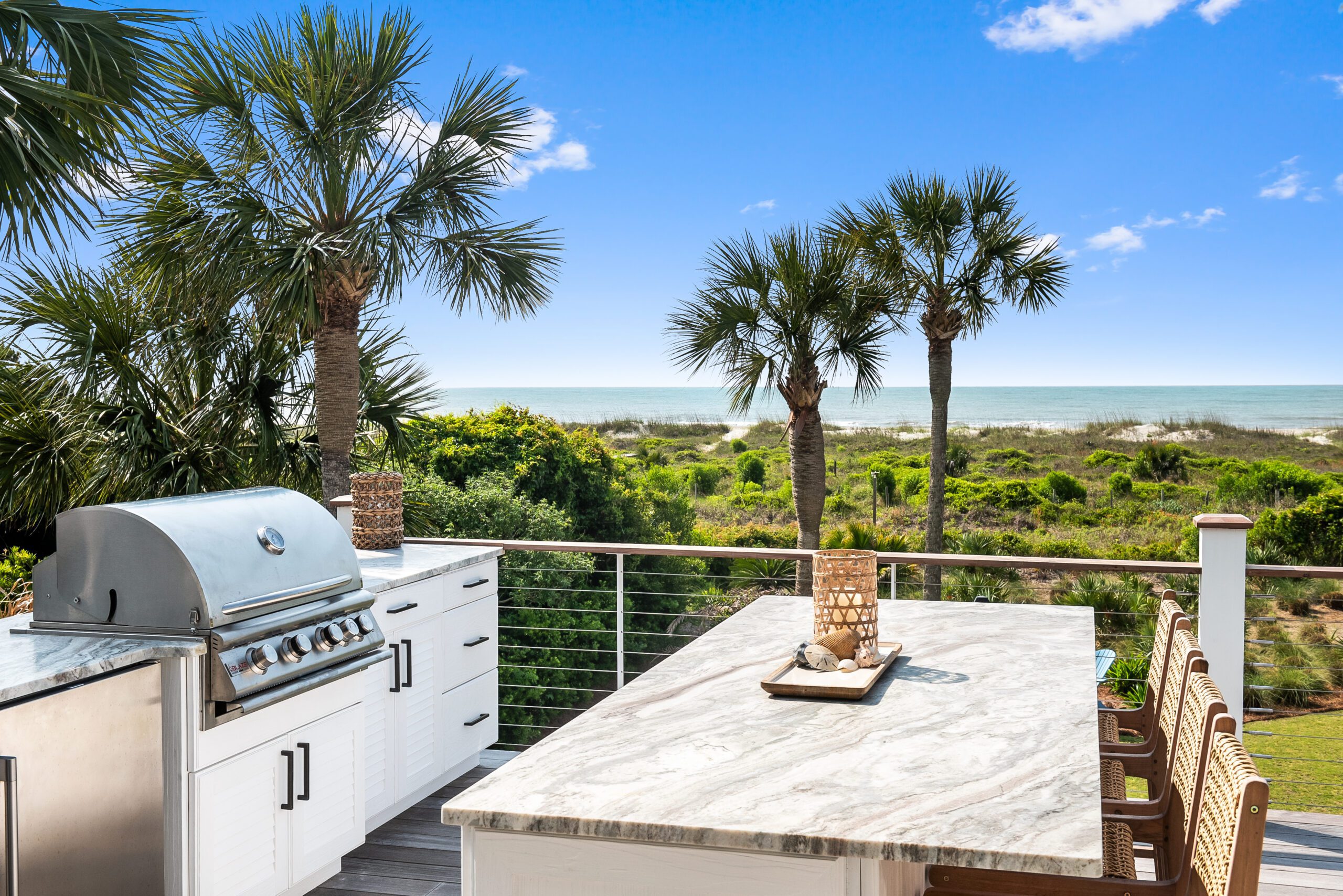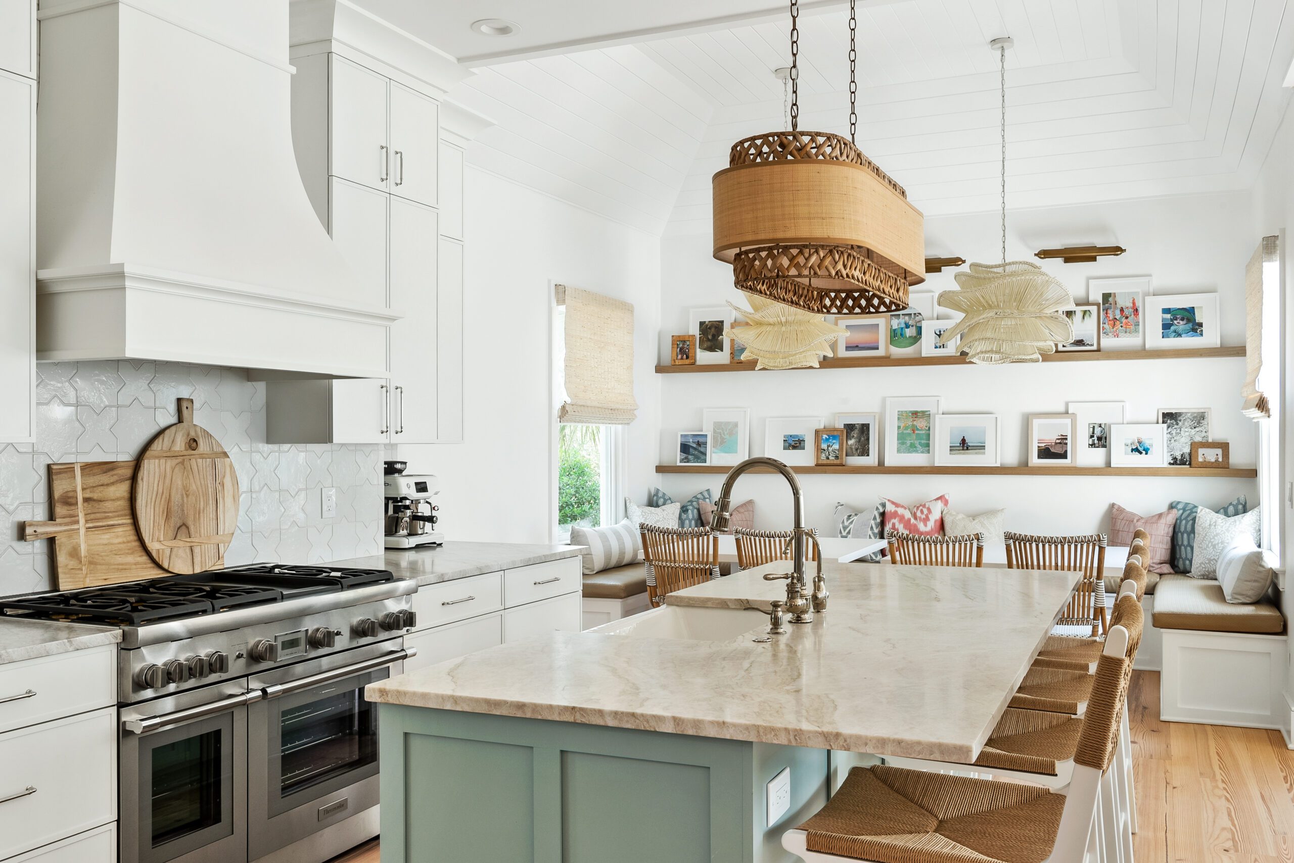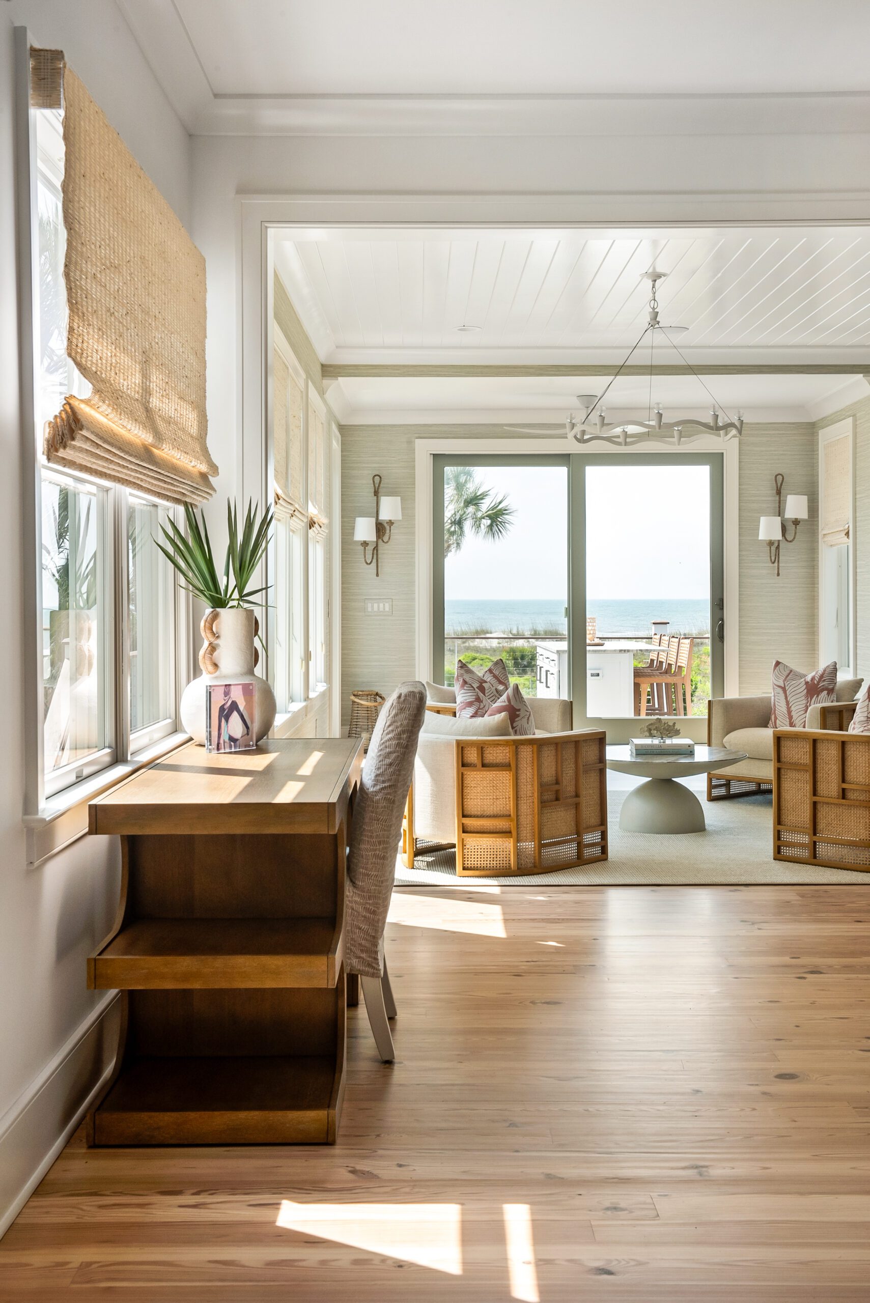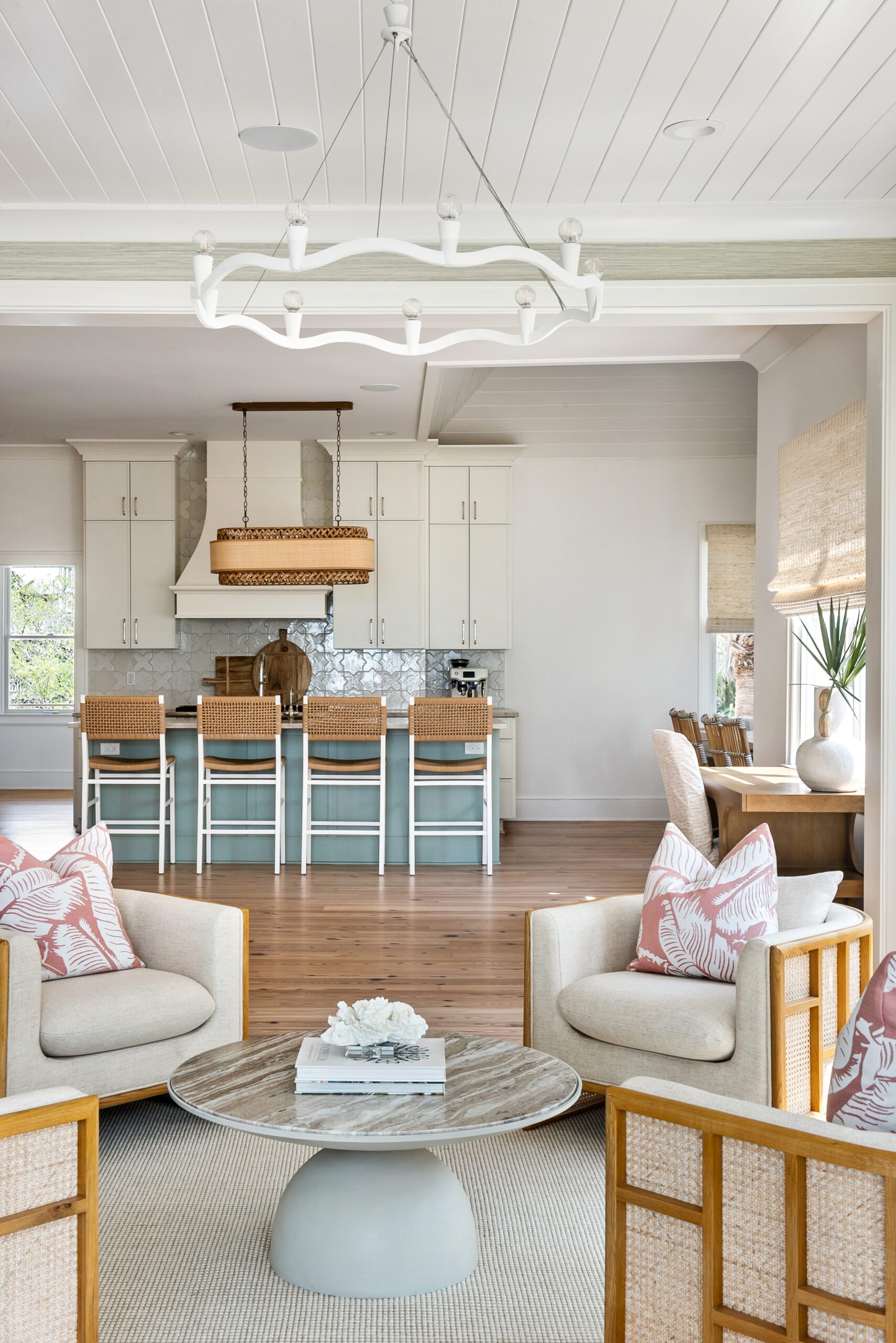 “We carefully selected finishes, fixtures, lighting, materials, furnishings, rugs, and décor reflective of this home’s beachfront location for the family who loves to entertain.”