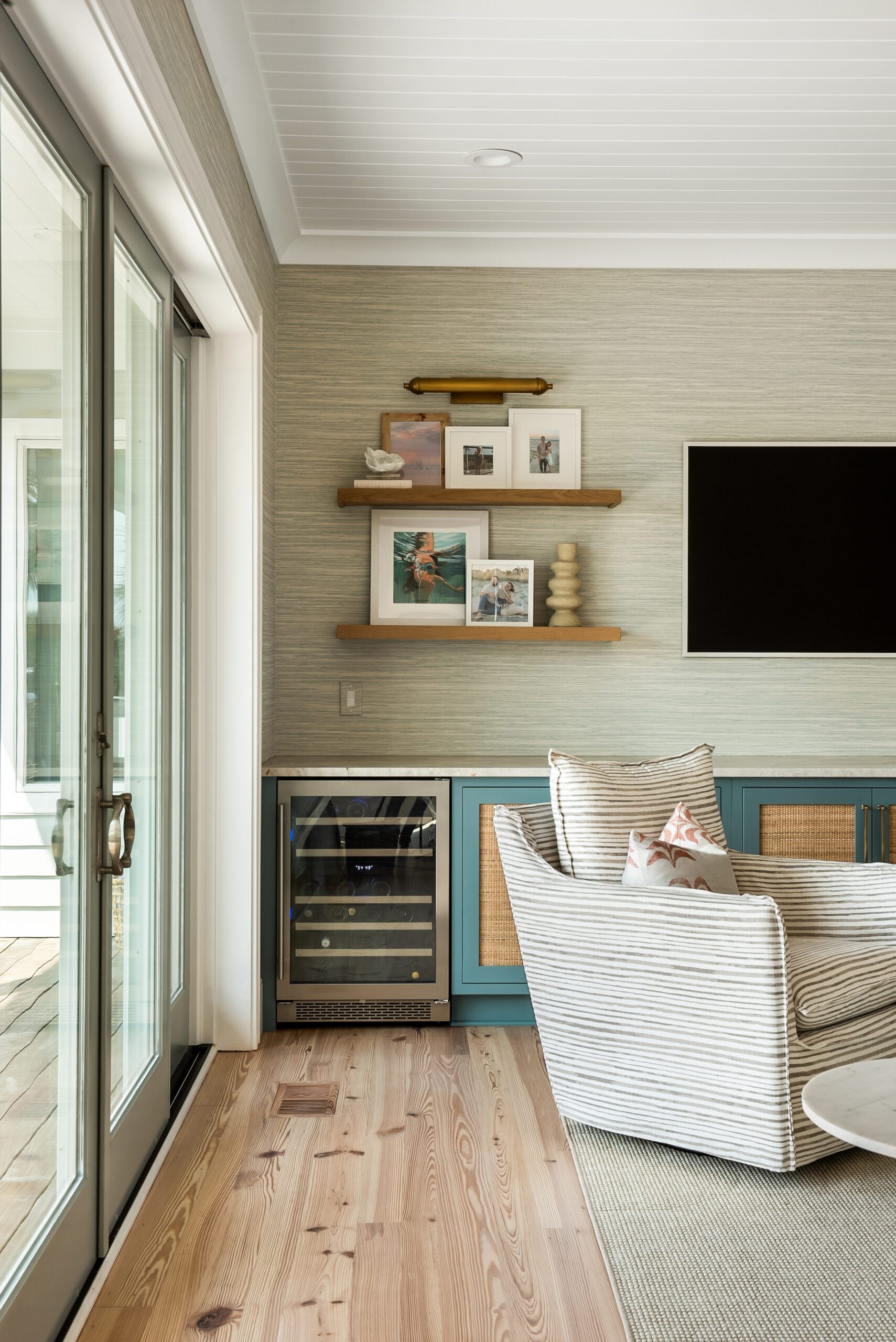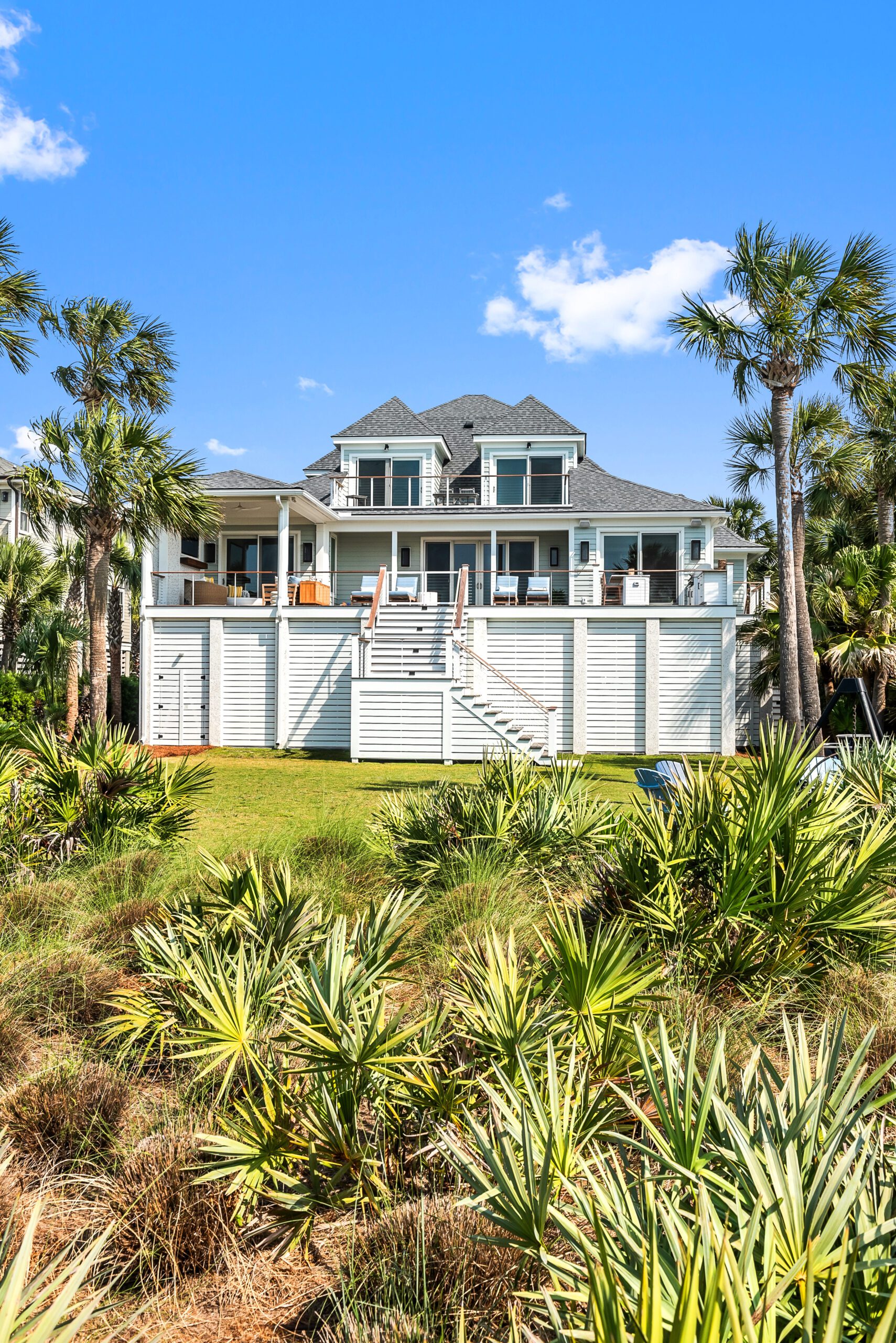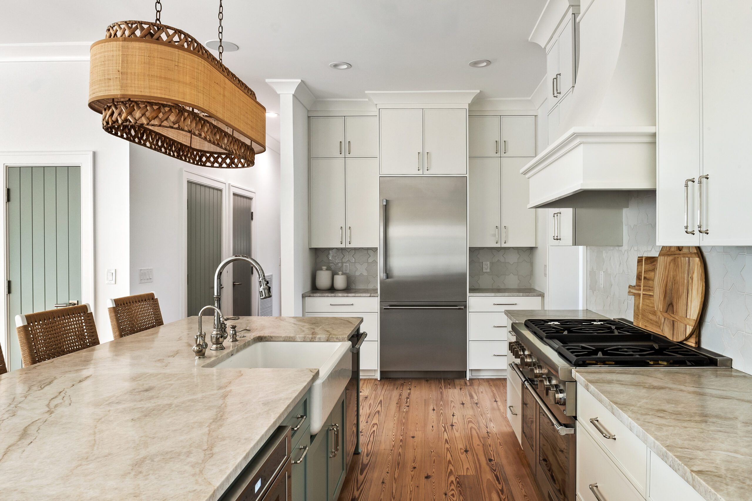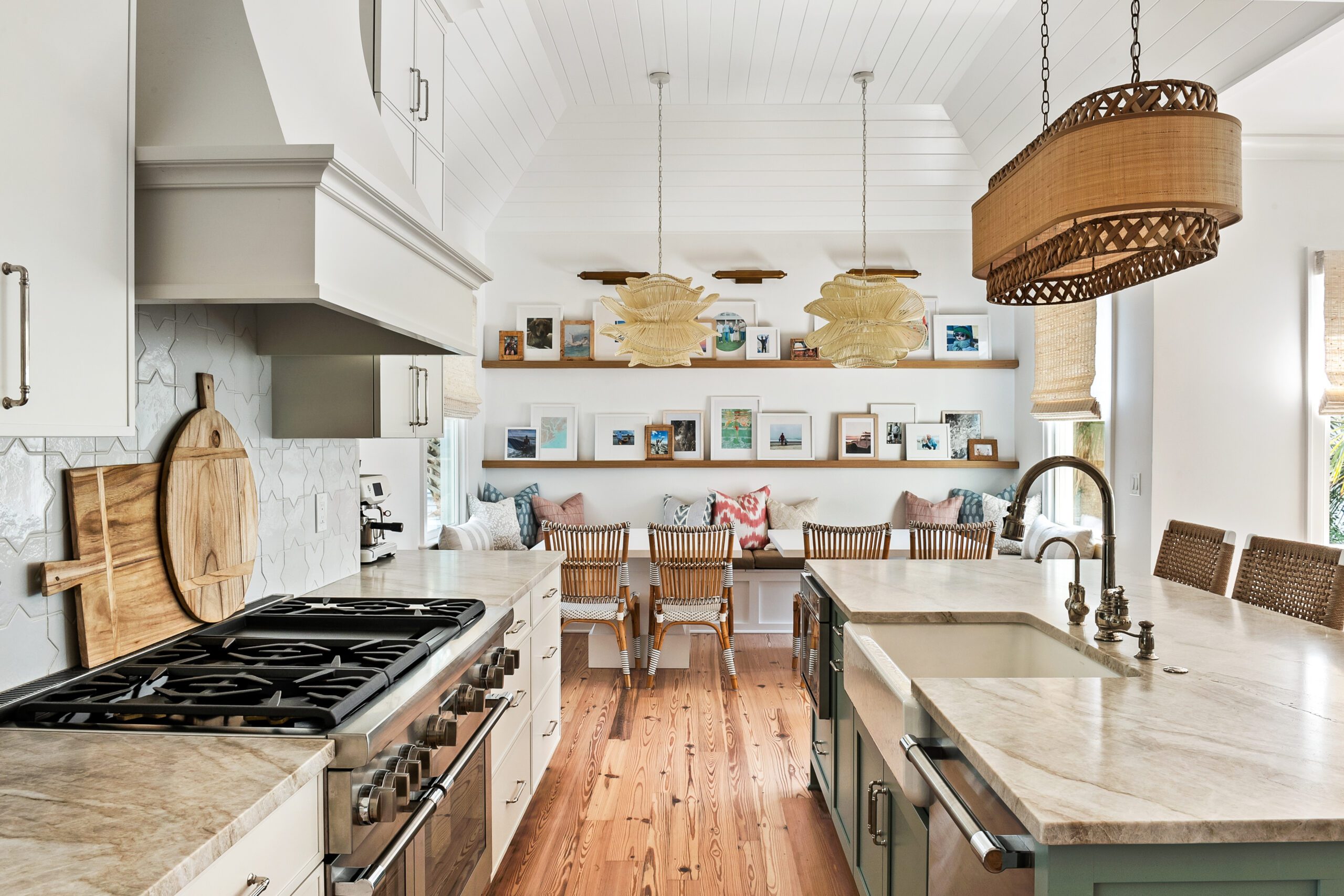 “We carefully selected finishes, fixtures, lighting, materials, furnishings, rugs, and décor reflective of this home’s beachfront location for the family who loves to entertain.”