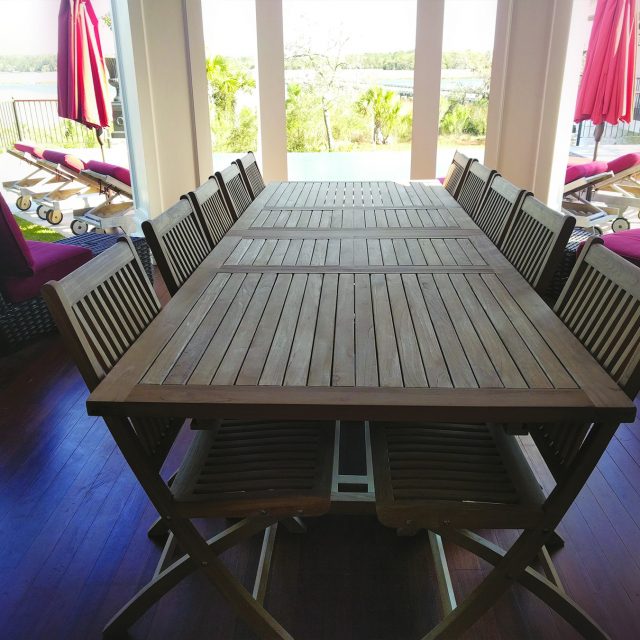 With summer well under way and fall fast on its heels, now is the time to take advantage of the outdoors before the weather turns cold. The best way to do that is to fill your outdoor space with durable, attractive furniture for outdoor entertaining and relaxation. Teak is a great wood choice for outdoor furniture because it’s long-lasting and it also assumes a beautiful silvery gray color the more it weathers.