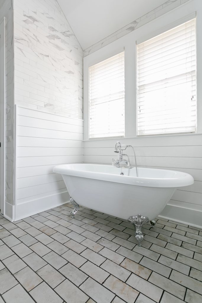 If you’re looking for something simple but a little rustic, this floor tile is virtually perfect. All of the tiles have a slightly different wear, and they pair excellently with a black grout, which is an expert at hiding pesky dirt.