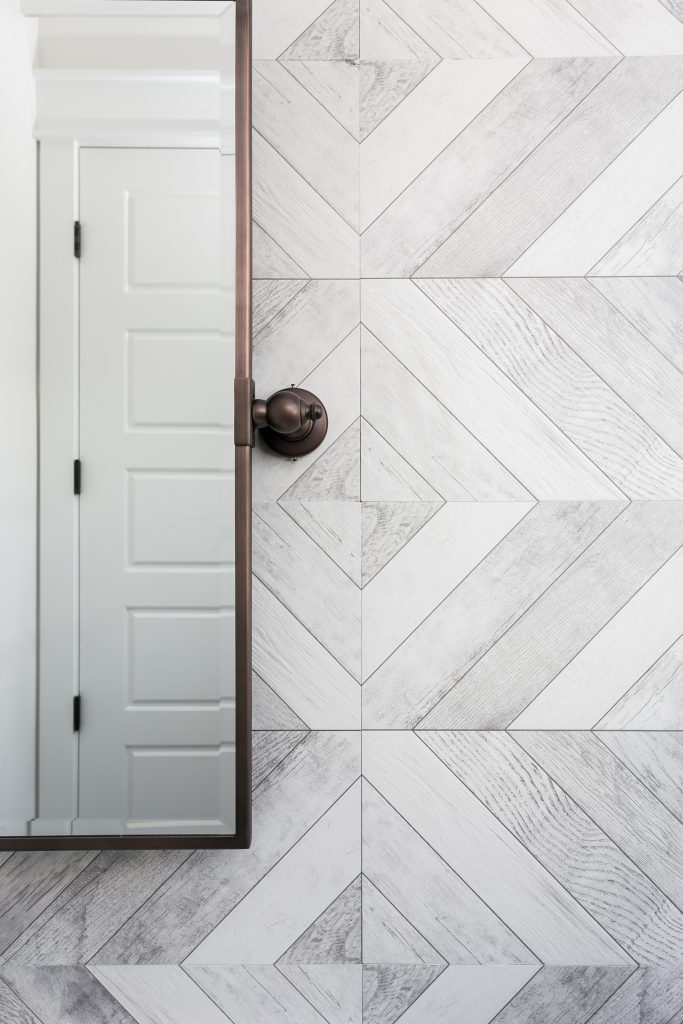 This tile option is another exciting neutral. The way this tile is laid into expanding squares is so beautiful, and the gray and white etchings almost make this tile look like wood. This would add great texture to a modern or rustic space.