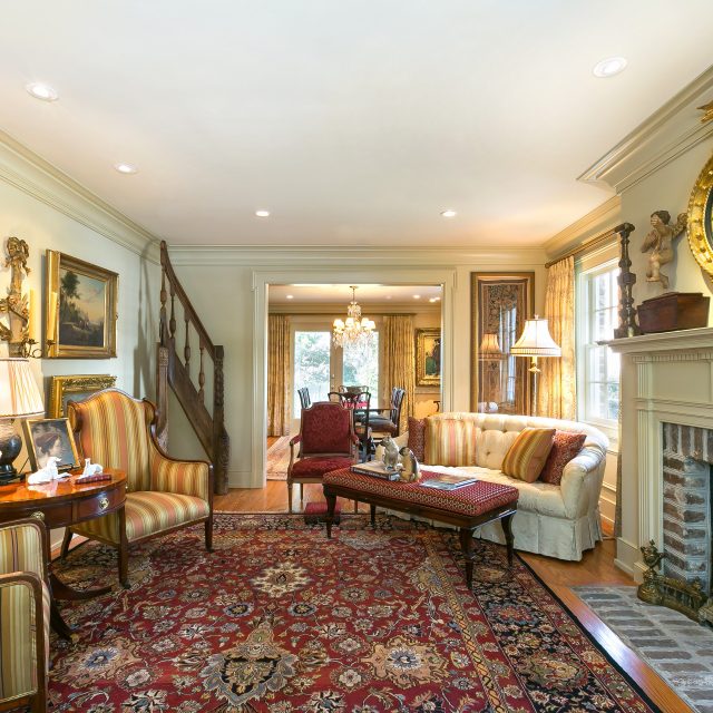 The built-in bookshelves also created perfect display areas for most of Patricia’s smaller antiques, and they left wall space open in other places to share her curated paintings. Now, whenever she has visitors, they see a sophisticated art collection displayed on a historical backdrop that transports them to a different era. And if they peer out a window? It would be no surprise to see a horse-drawn carriage trotting along the street.