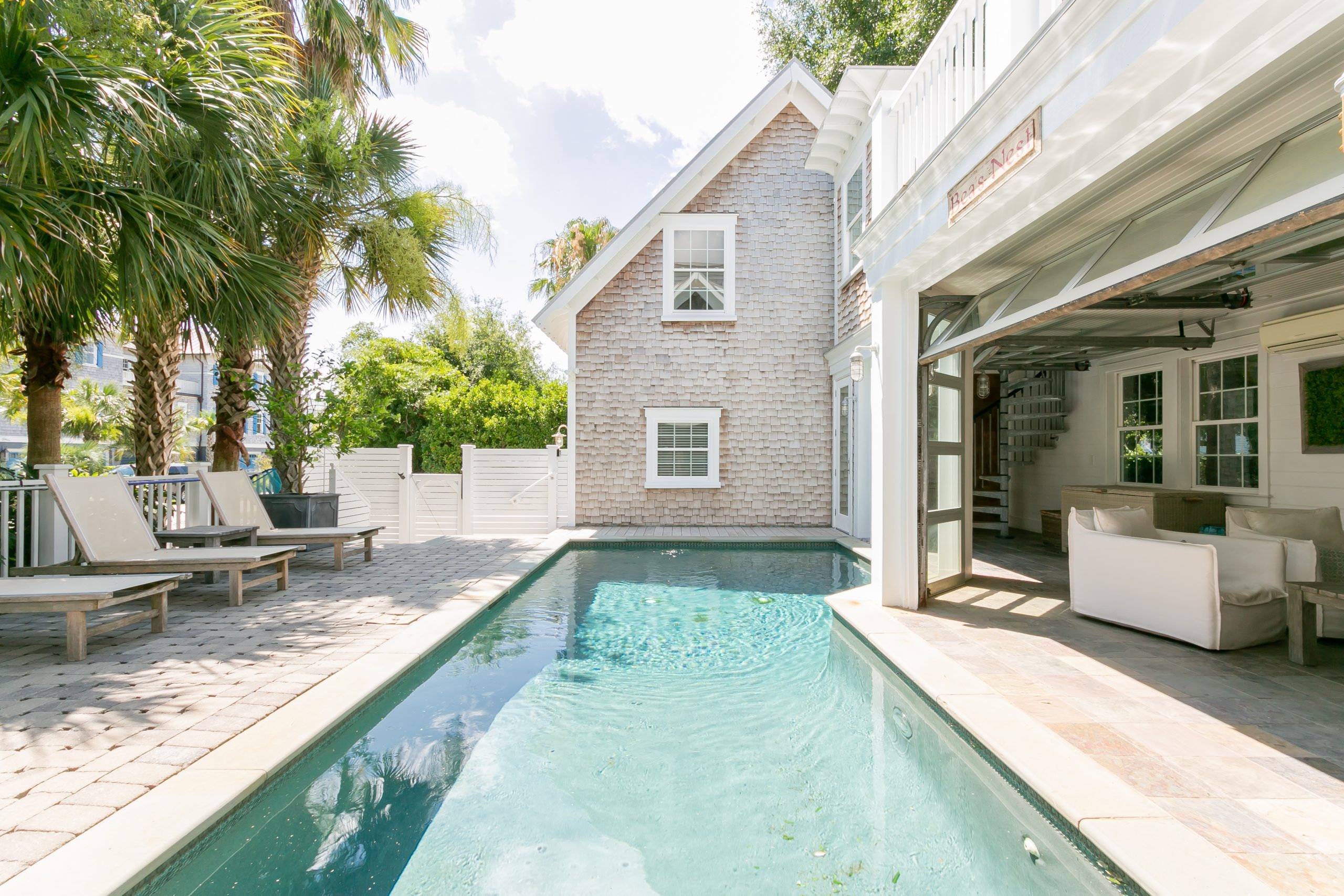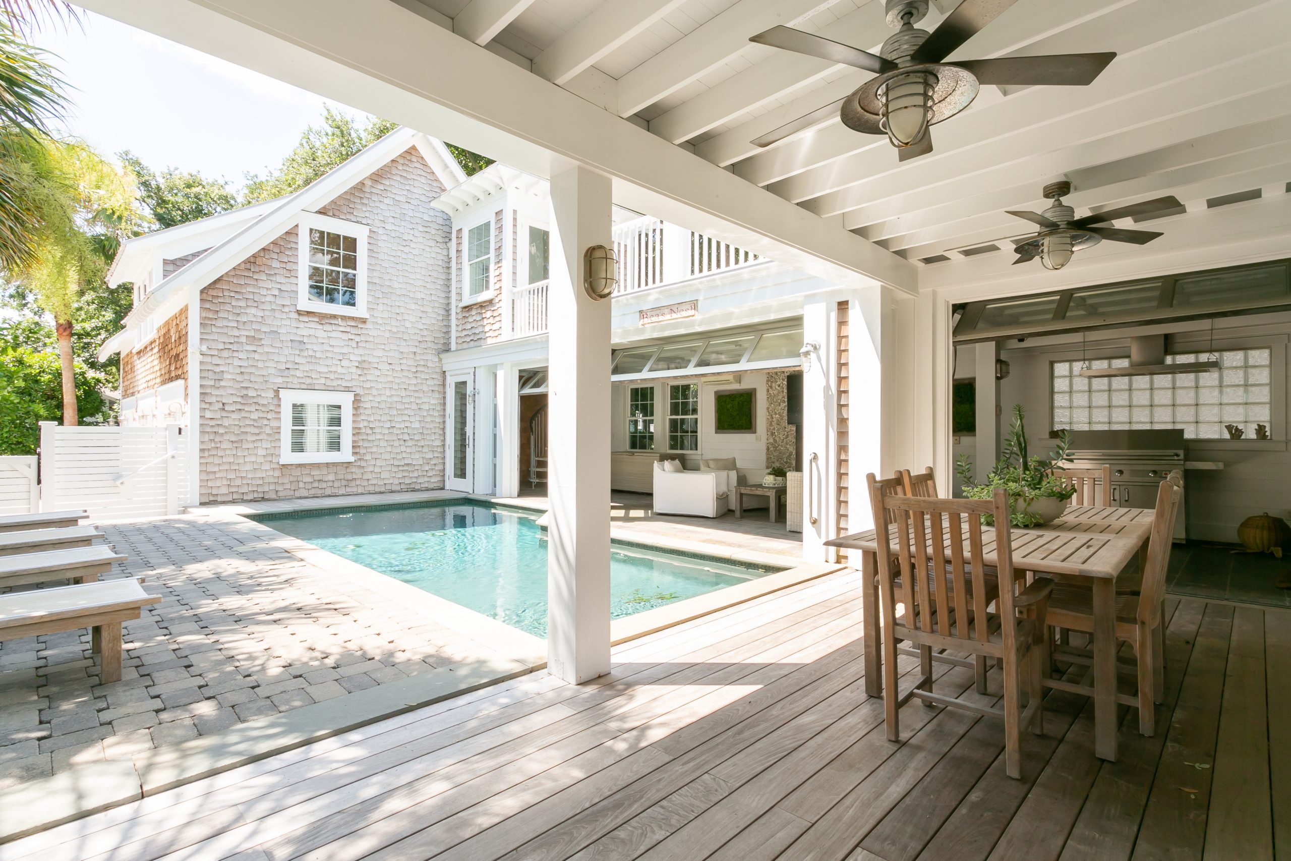 The goal for the Andersons was to create a space that blended their love of New England with their love of Charleston; a place where guests could enjoy architectural details of both, relax by the pool, or take a walk down a couple of blocks to the beach. Prior to MaryJo and Bryce purchasing the home, Pat Kelly with Kelly Builders Carolina had already completed a large scale renovation on the home. Once the Andersons bought The Bea’s Nest, they enlisted the help of Katie Goodrich from Ivory & Bone Interiors to bring the New England charm meets Southern charm interior together.