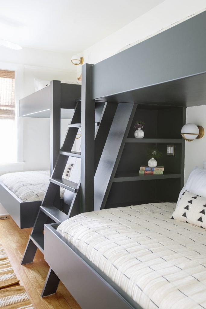 If your rental property doesn’t have a bunk room, you’re missing out. This bunk room is both stylish and functional; you could sleep up to six people in this space if needed which is always great for family vacations or bachelorette parties. Not only does the space offer lots of room for sleeping, it also has built-ins to store whatever you might need easy access to during your trip.