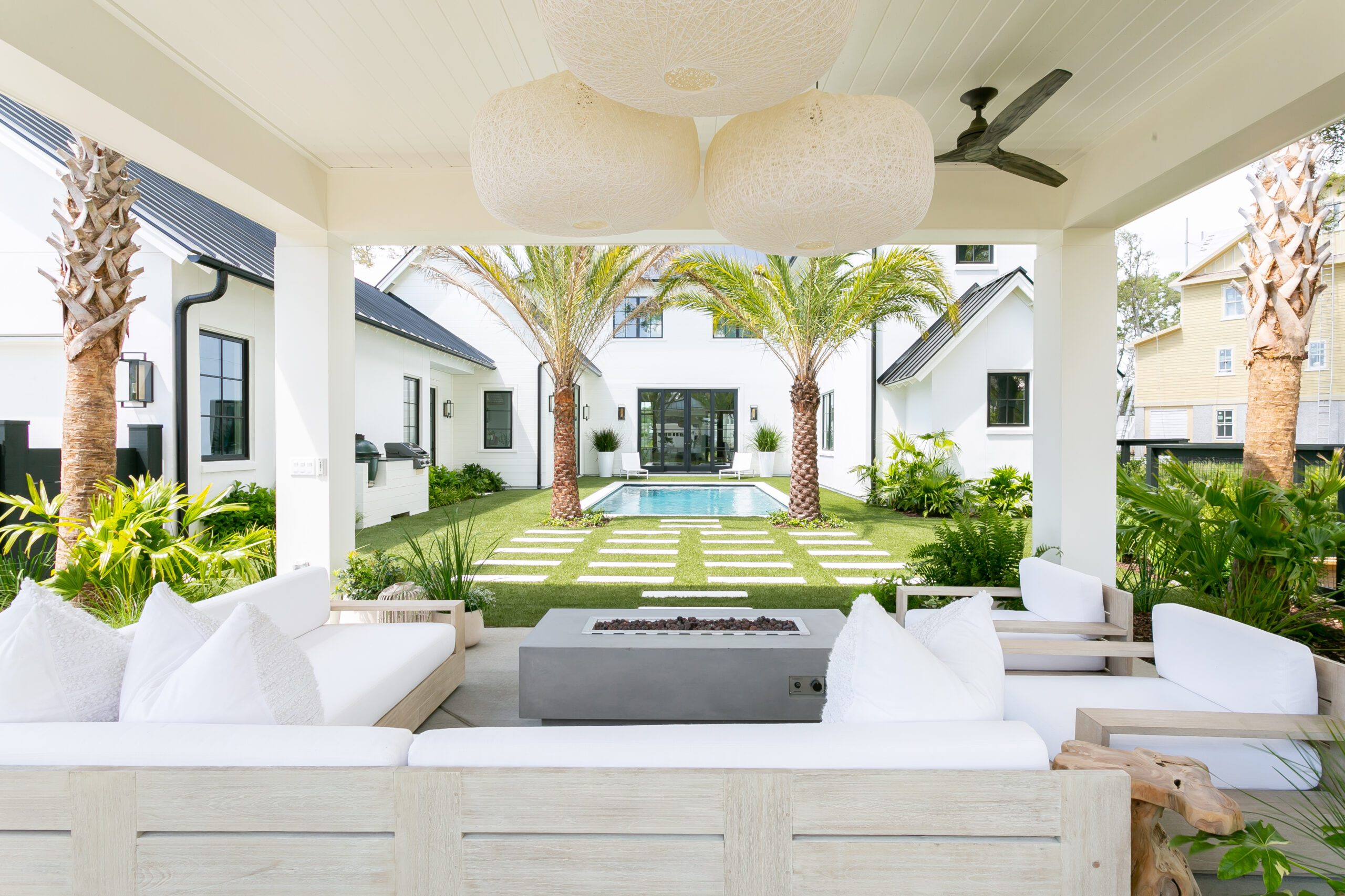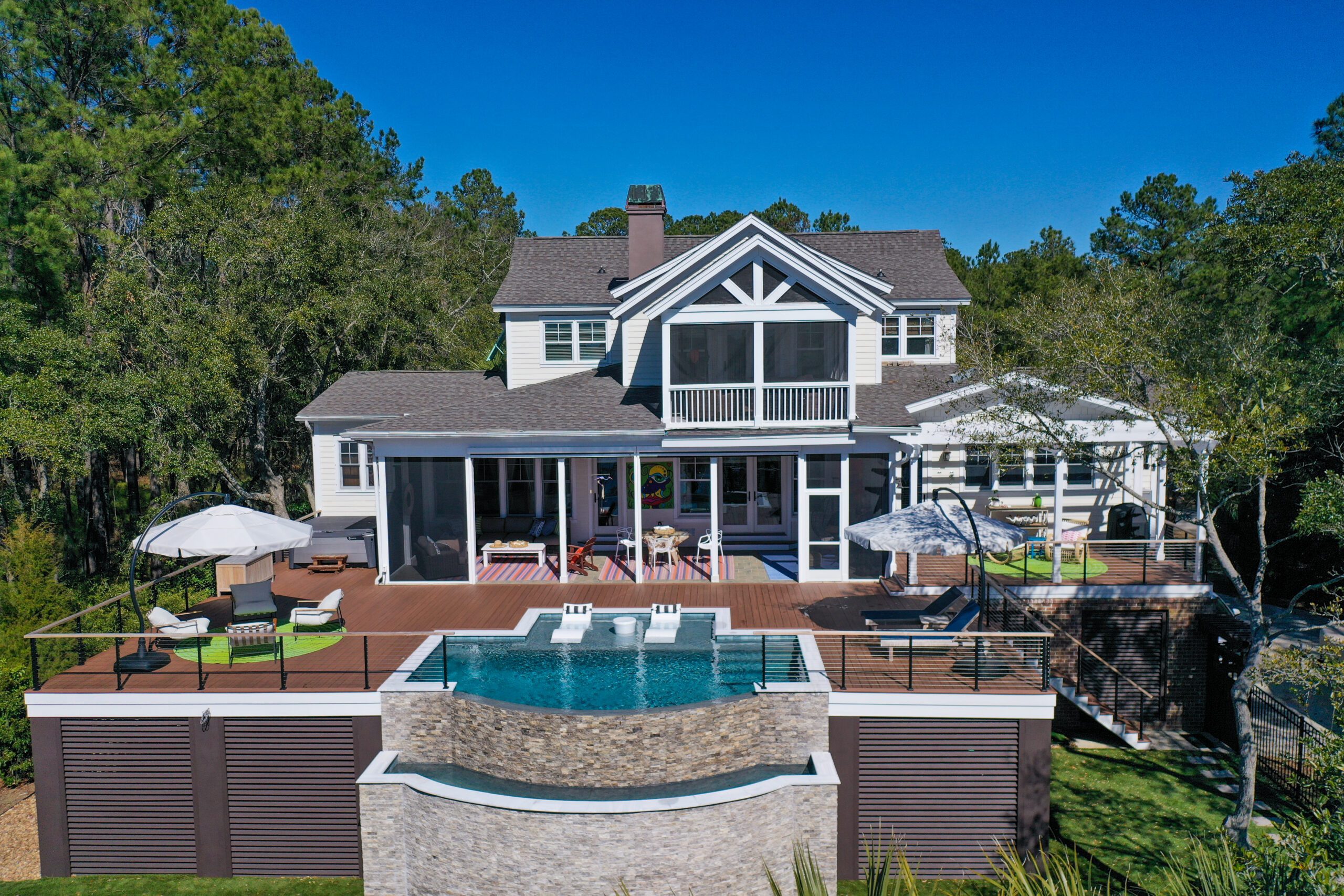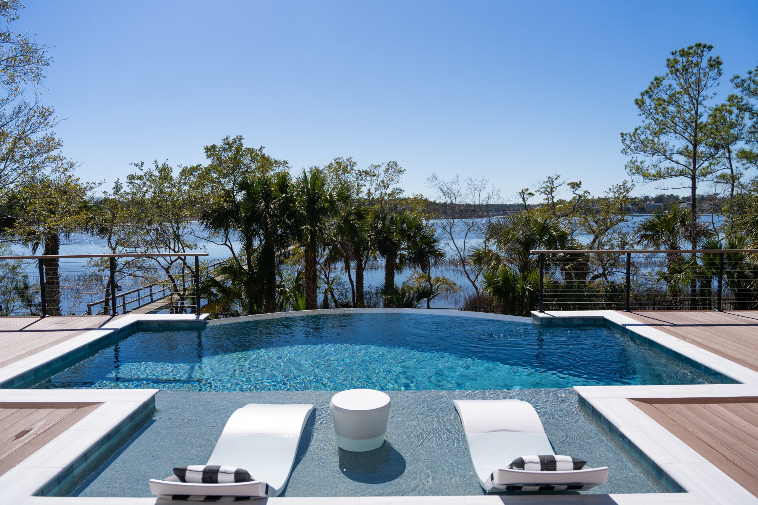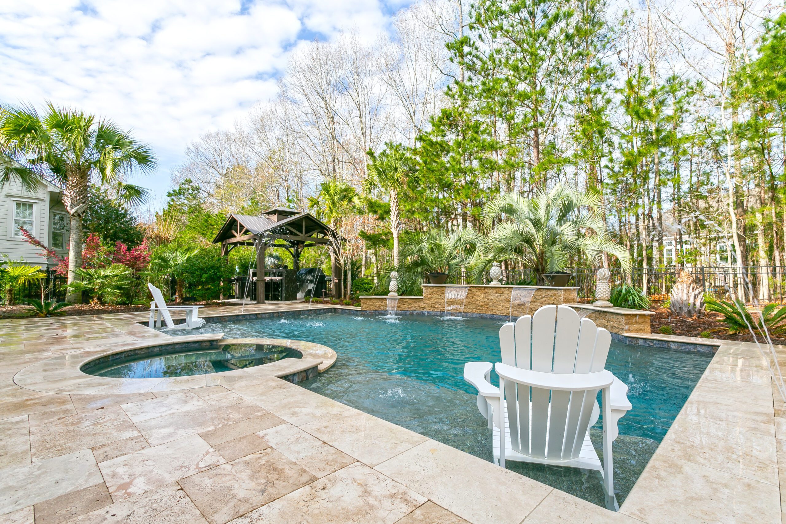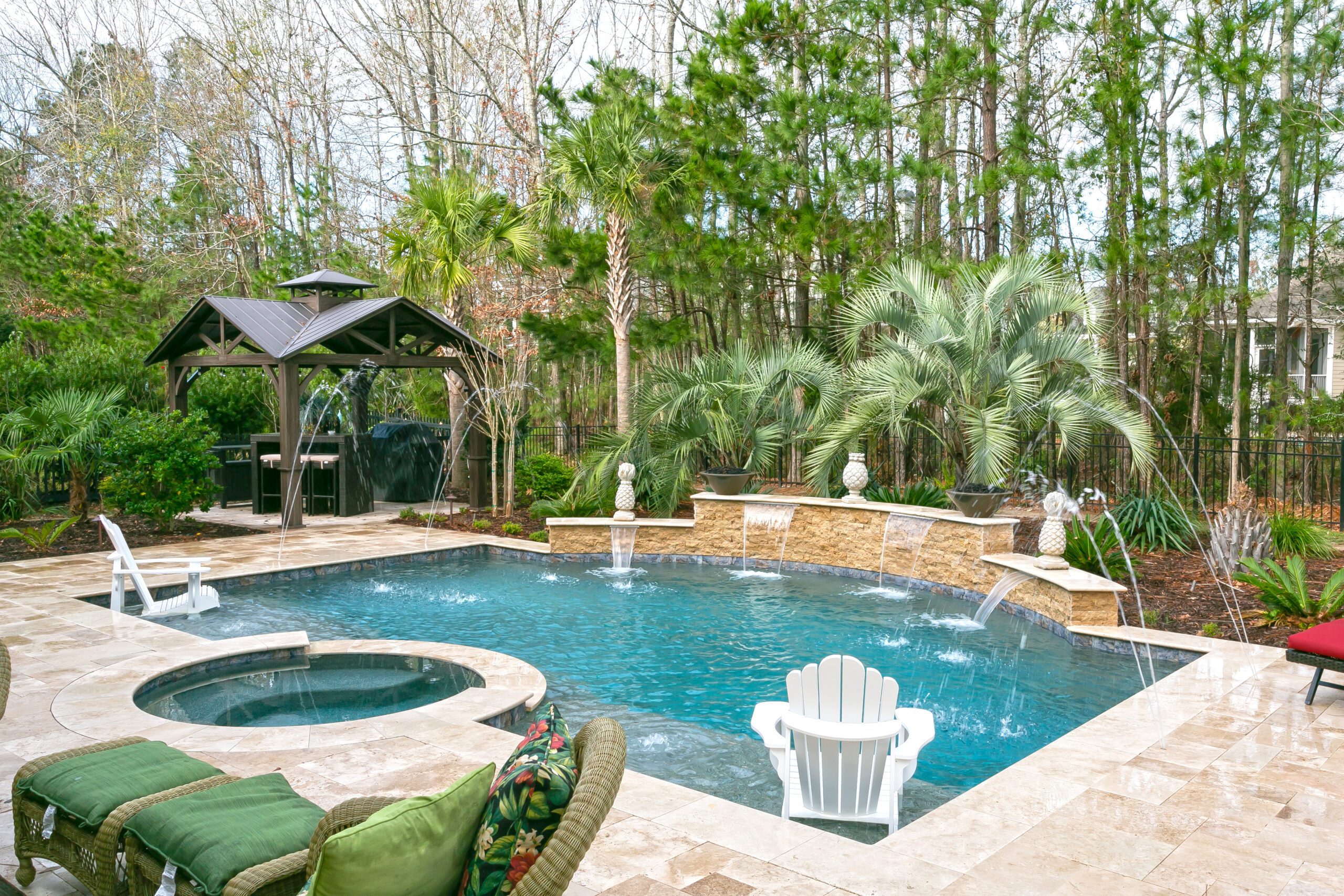 At the Blue Haven Pools & Spas showroom, there are three fully functional display pools on-site with one being inside the showroom showcasing a custom spillover spa. Homeowners will find other features on display like multiple colors of travertine, limestone, French limestone, and many marble decking options. To make it easier for their customer’s to visualize how a finished product will look like, each on-site pool has glass tile and veneer stone already installed. Blue Haven also highlights their fire pit seating walls selection along with a custom fireplace built on-site.