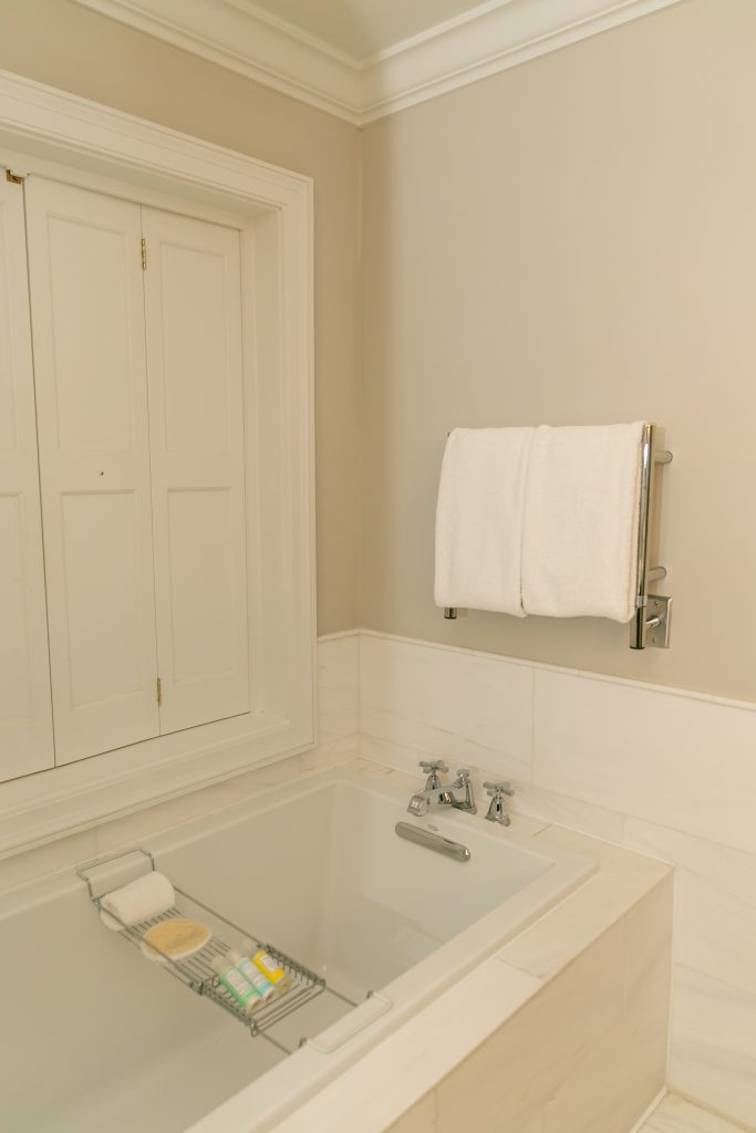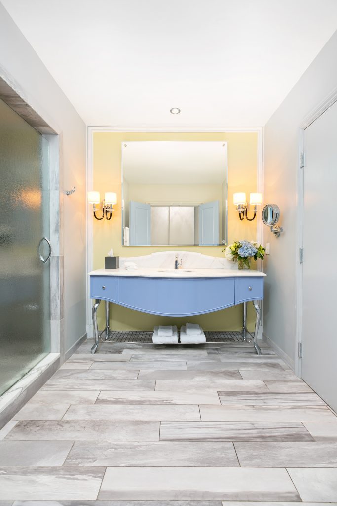 There are a variety of room styles available at the Restoration Hotel making this a great spot for a solo getaway or a weekend with friends. Enter the guest suites and find spacious bathrooms with a separate shower and tub, along with dual vanities with plenty of storage for your weekend necessities.