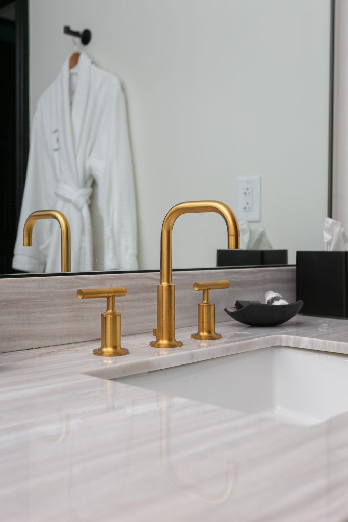 At the Grand Bohemian Hotel you’ll find modern elegance in the heart of downtown. The marble bathrooms offer plenty of space to get ready for a night on the town or relax after a long day of exploring. Makeup mirrors, walk-in showers, and a happy color palette make this space pop.