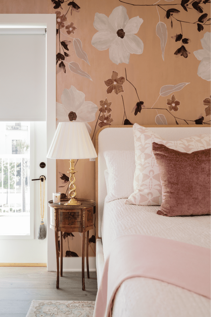 To keep a patterned space from feeling chaotic, balance it with solids and natural textures. A botanical wallpaper looks fresh when paired with simple linen drapery, while a statement rug feels grounded when surrounded by solid upholstery. Think of neutrals as the resting point for the eye.