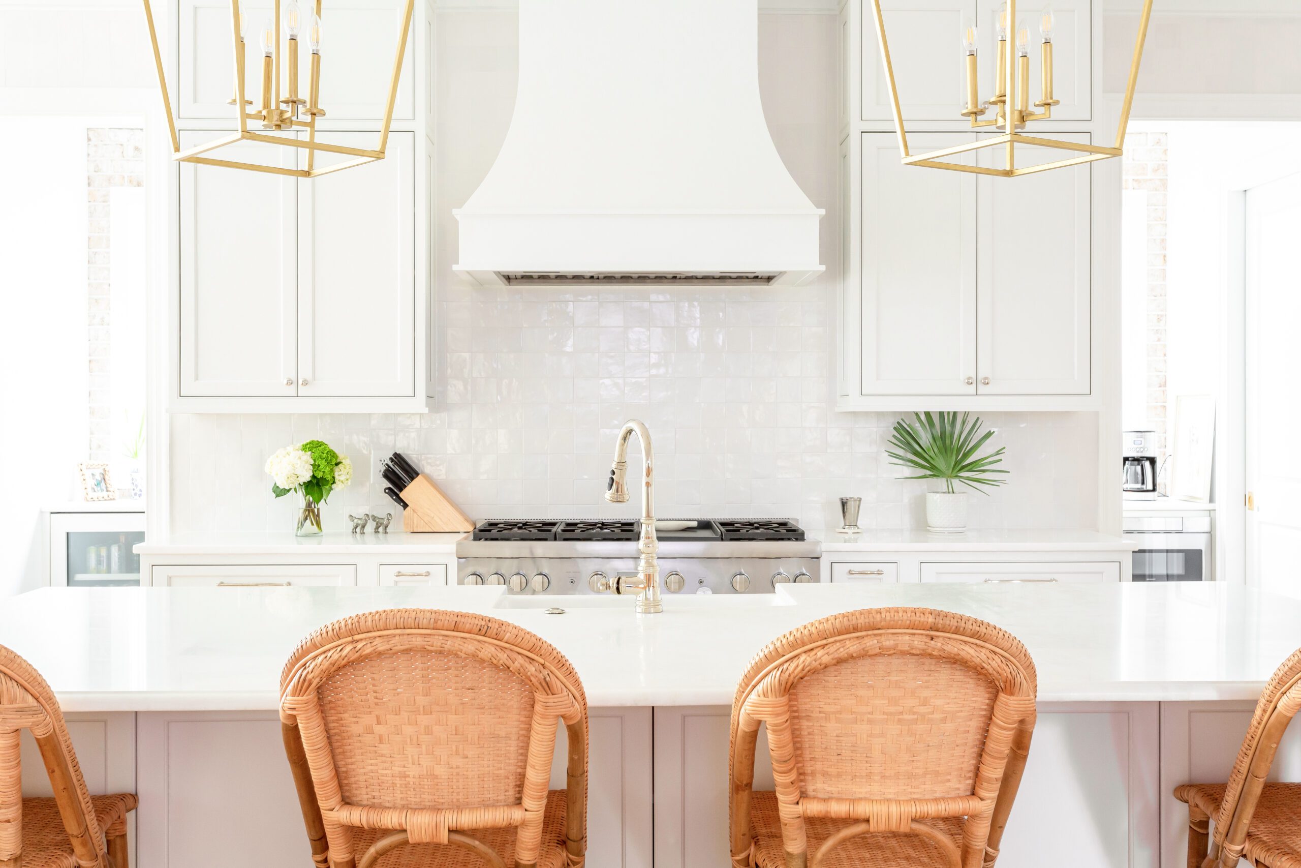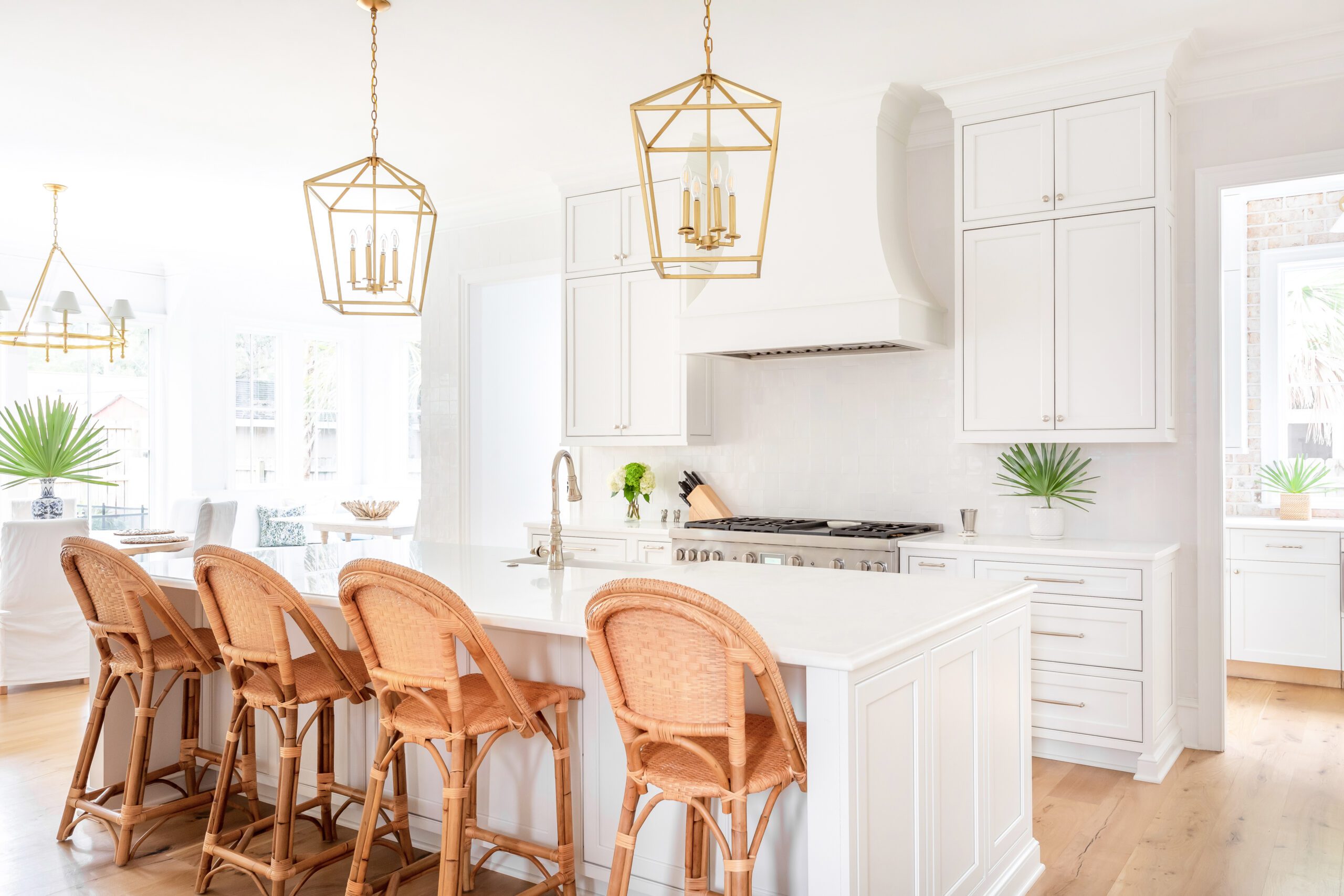 This light-filled kitchen is a refreshing place to prep and dine thanks to custom cabinetry by Classic Kitchens of Charleston.