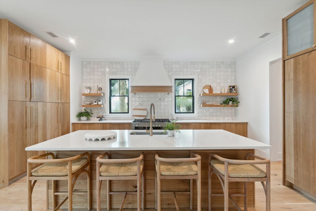 Fluted Oak Cabinetry by JW Woodworks | Plumbing Fixtures by Delta