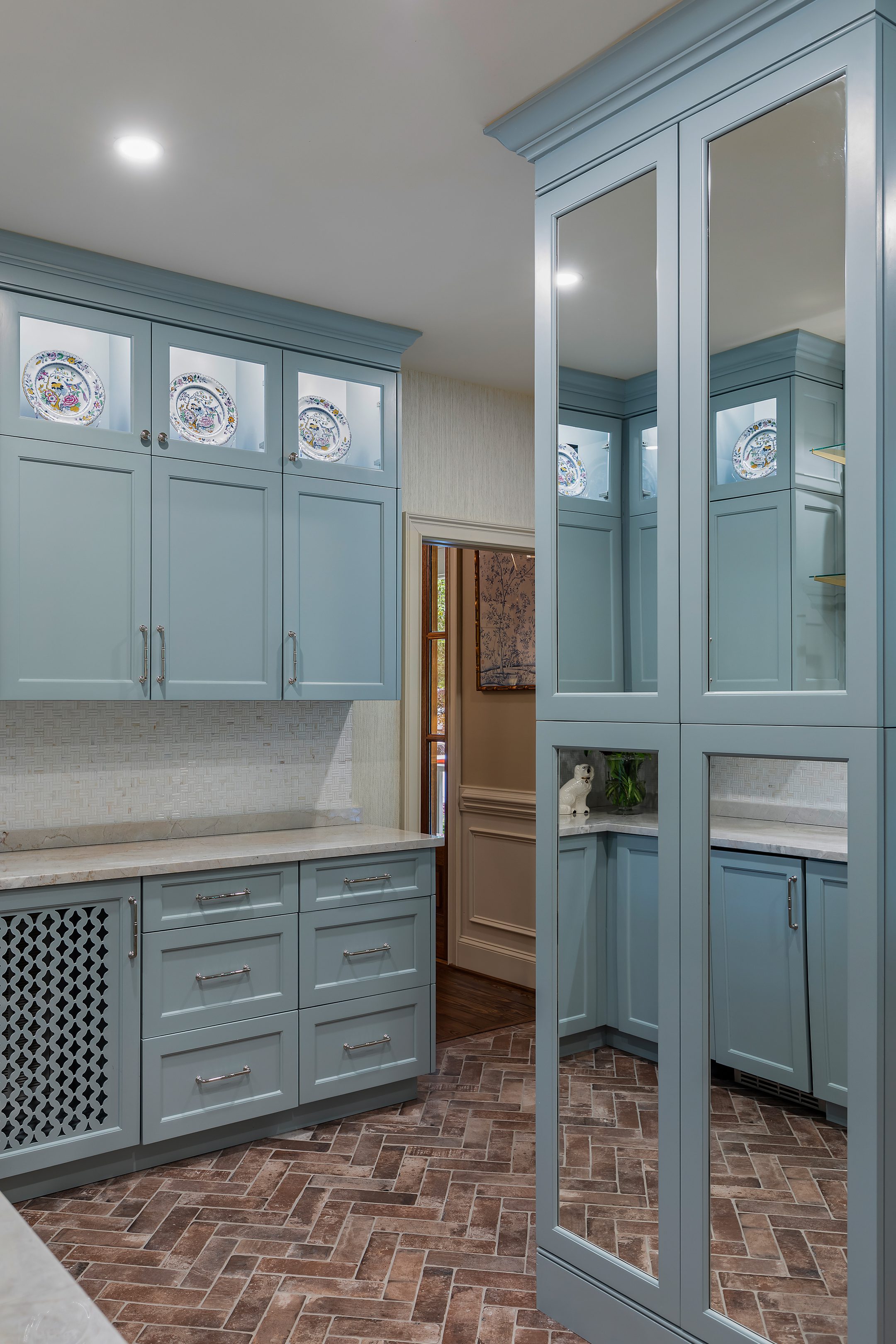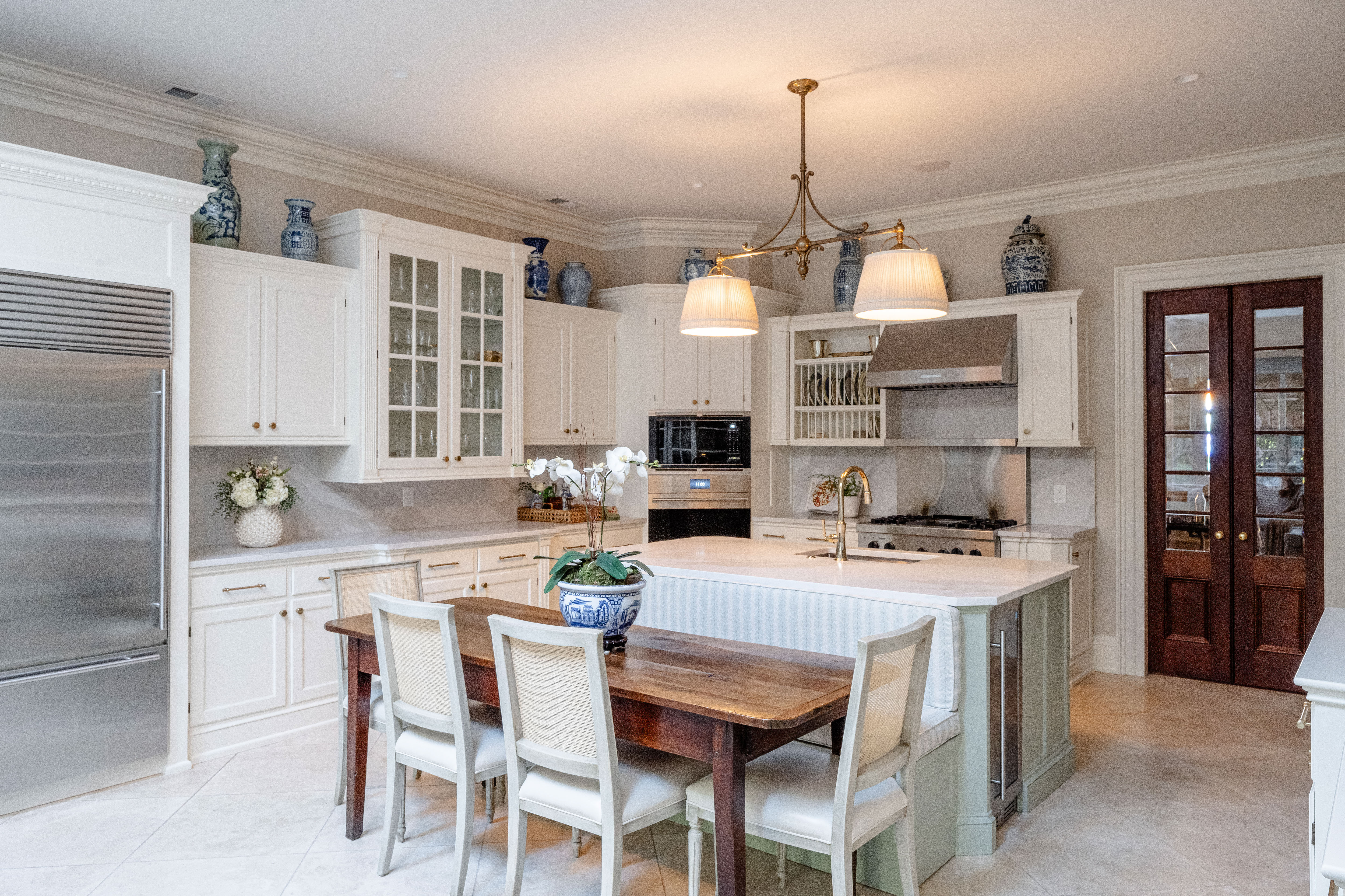 Charleston entertaining often moves between indoors and out. Kitchens designed with strong indoor-outdoor connections support that lifestyle with large sliders, folding doors, or pass-through windows. Designers often pair these layouts with outdoor-adjacent beverage centers or grilling zones. Durable materials and easy-clean finishes ensure the kitchen handles heavy traffic while maintaining its visual appeal.