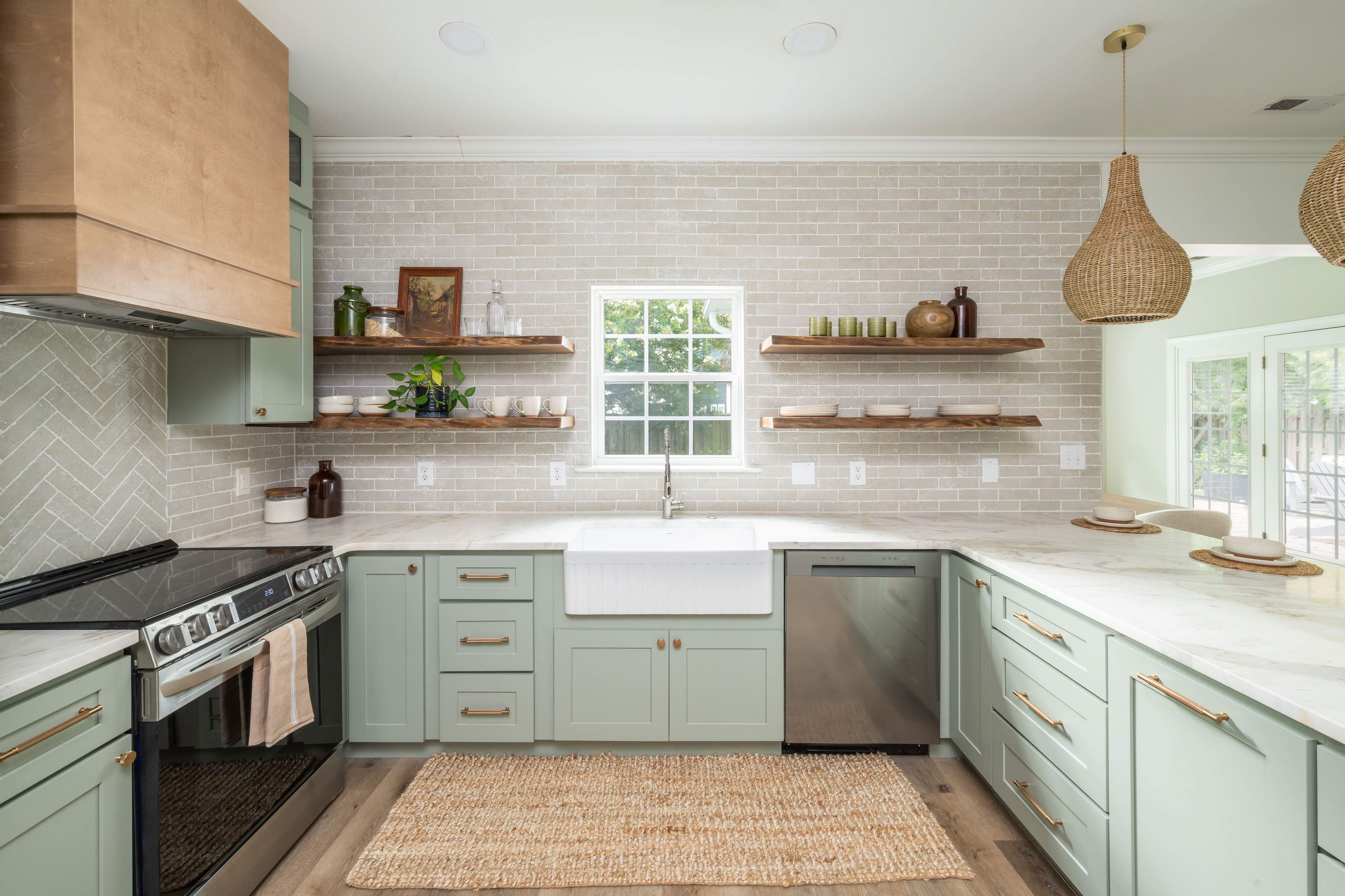 U-shaped kitchens naturally encourage interaction. Counters and seating wrap around the cook, keeping everyone involved in the action. This layout reduces travel between zones and works particularly well in smaller kitchens. When designers add seating along one leg or incorporate open shelving, the space feels inviting rather than enclosed.