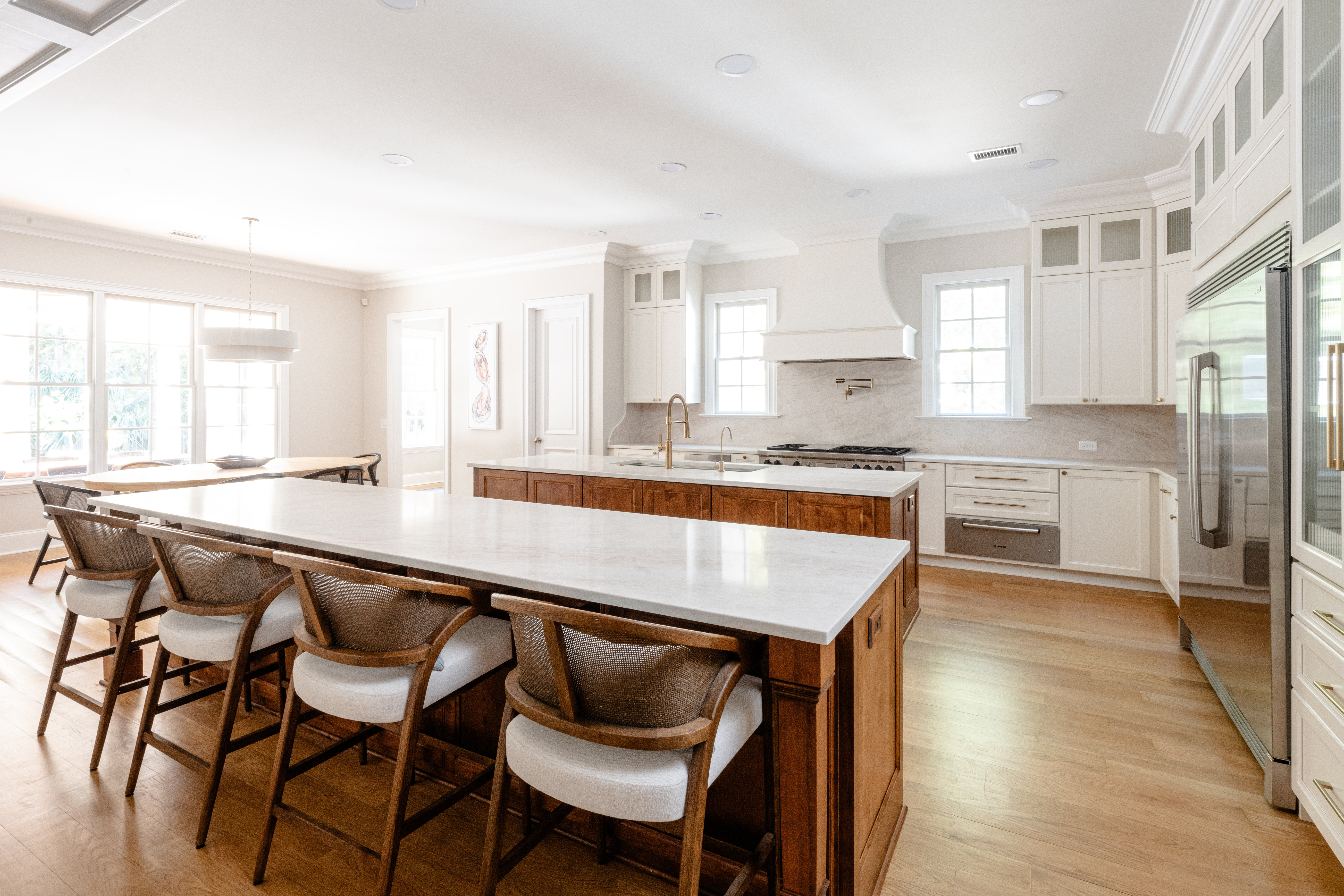 In Charleston, where gatherings range from casual weeknights to large celebrations, kitchen layout plays a critical role in how a space performs. Our kitchens do more than support cooking. They host conversations, anchor parties, and shape how we live within the space. This year, we saw Charleston homeowners planning their kitchens as social hubs first. Instead of rigid work zones, they prioritize flow, flexibility, and connection. These nine kitchen layouts highlight how thoughtful planning creates spaces for gathering, regardless of the home’s size or style.