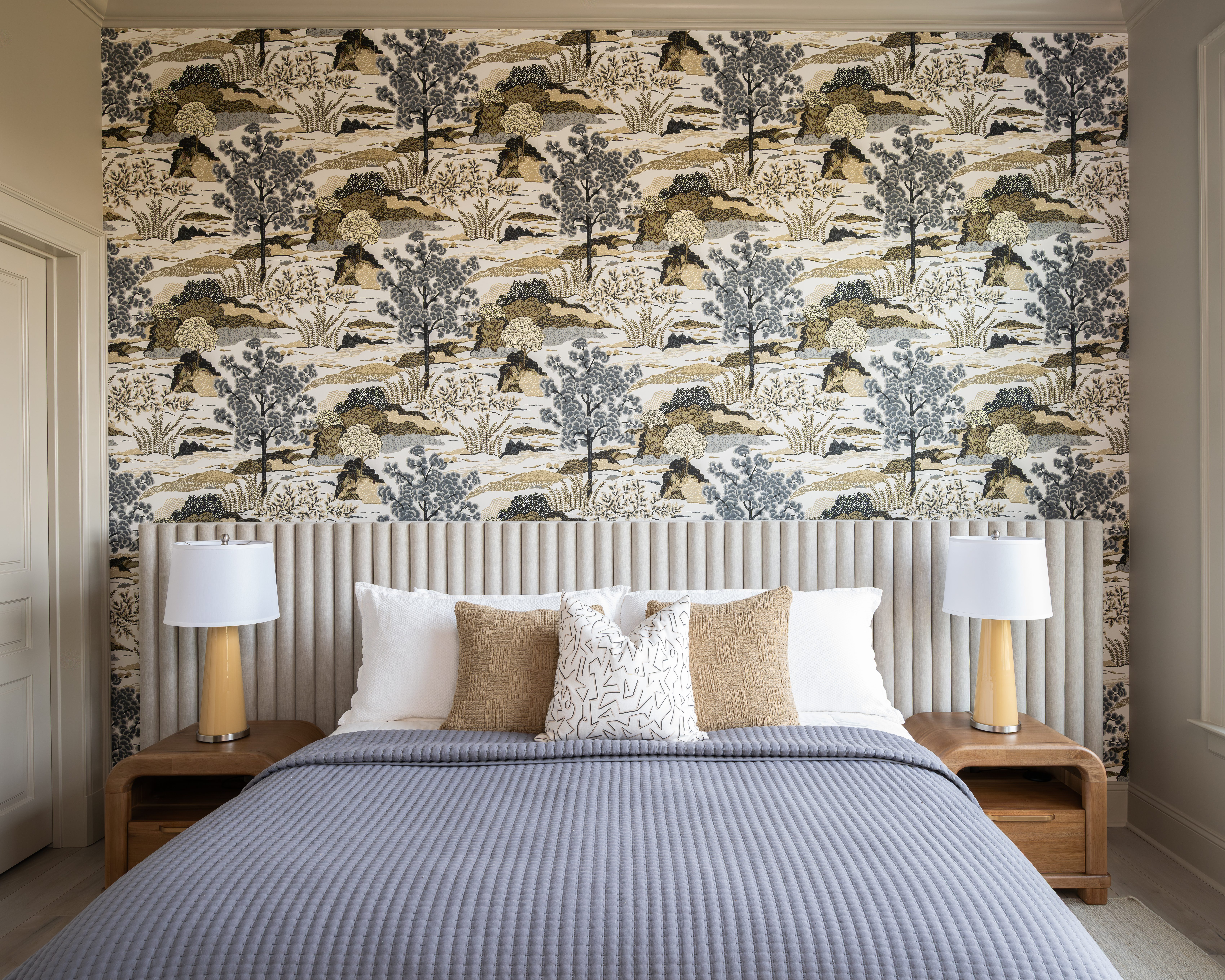 With understated palettes and classic motifs, the collection works especially well in bedrooms, hallways, and calm living spaces where the goal is to add character without overwhelming the architecture. Available locally through Sherwin-Williams, these designs feel refined, livable, and approachable for homeowners ready to experiment with wallpaper in a more understated way.
