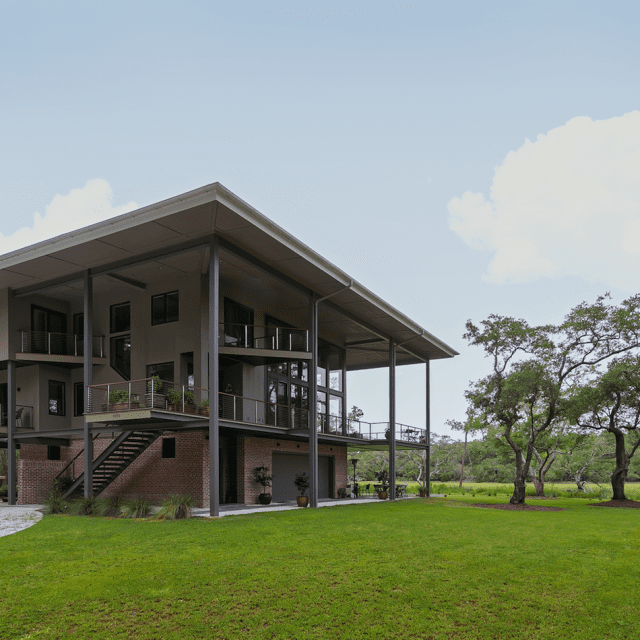 Rarely does the Lowcountry see a home that exudes modernity; one brand-new Hollywood house, simply known as River’s End, exhibits a stark, contemporary style.