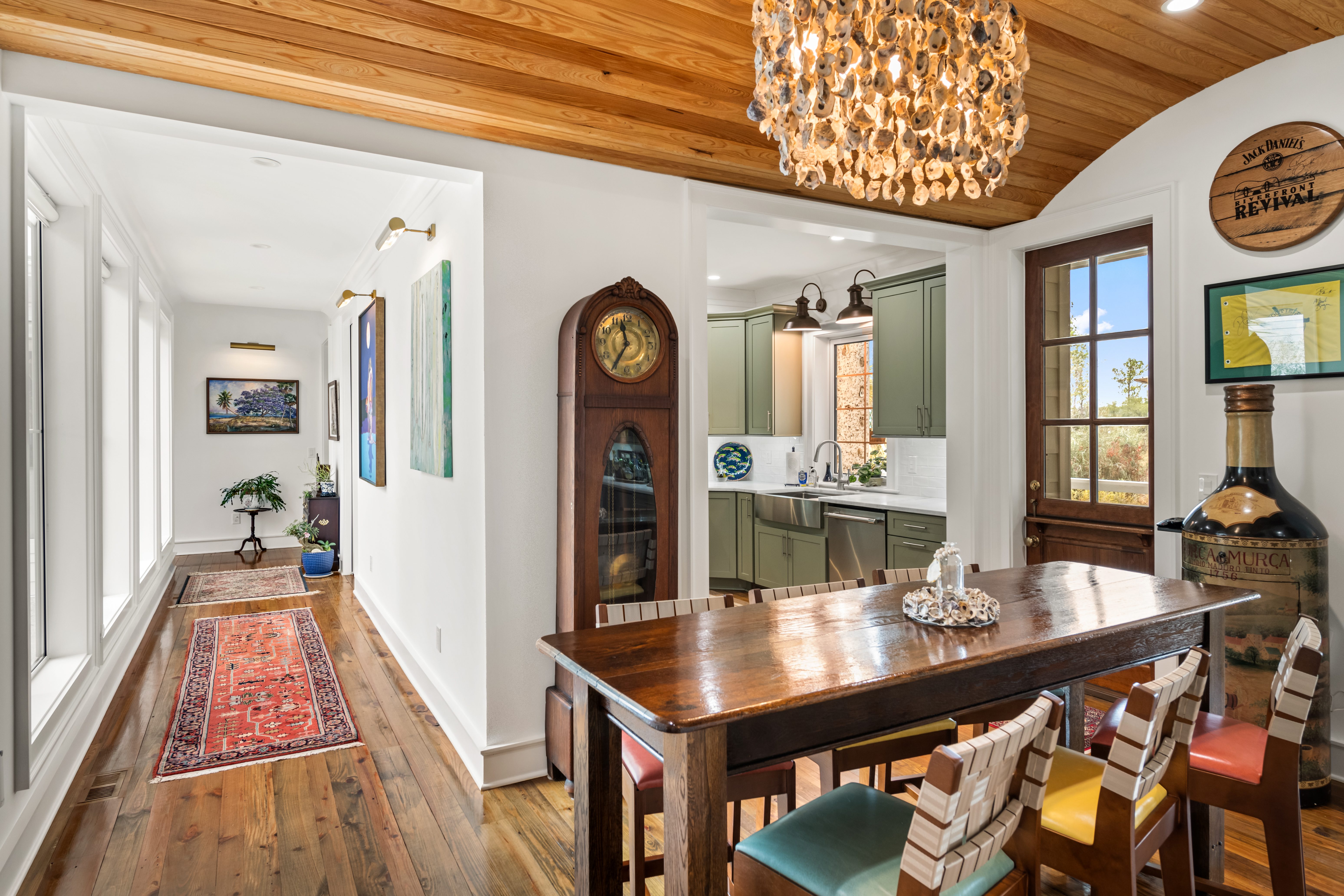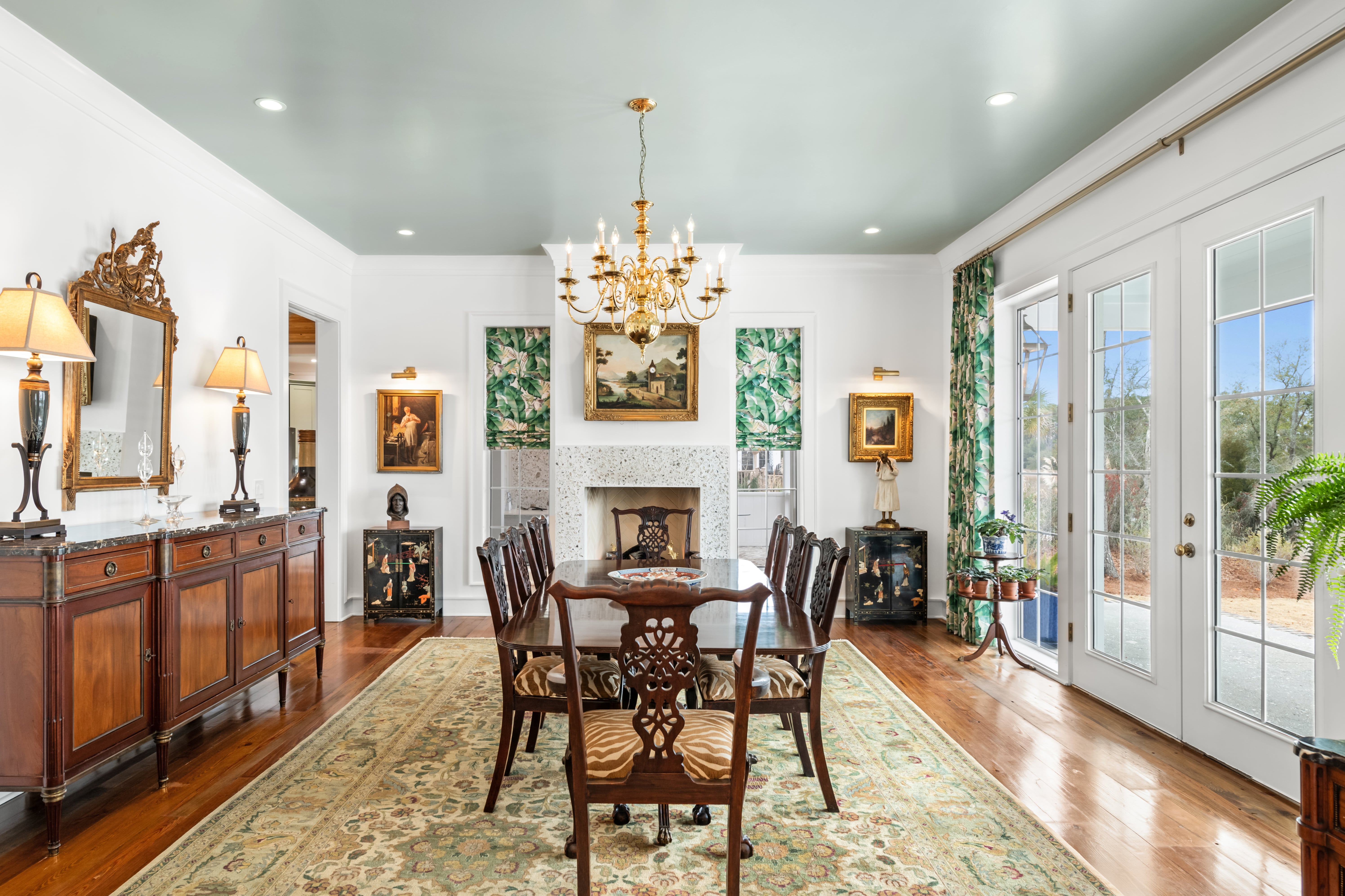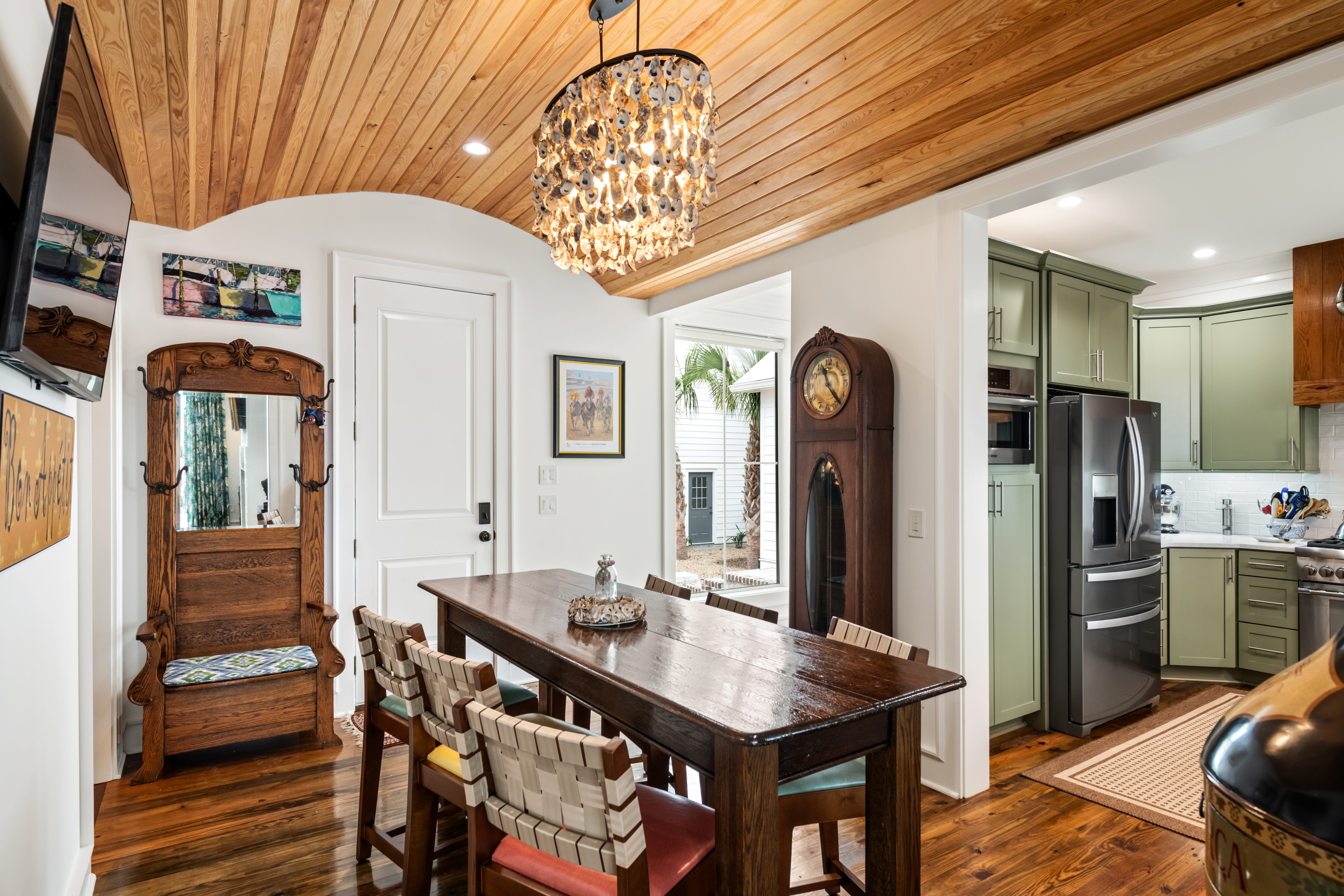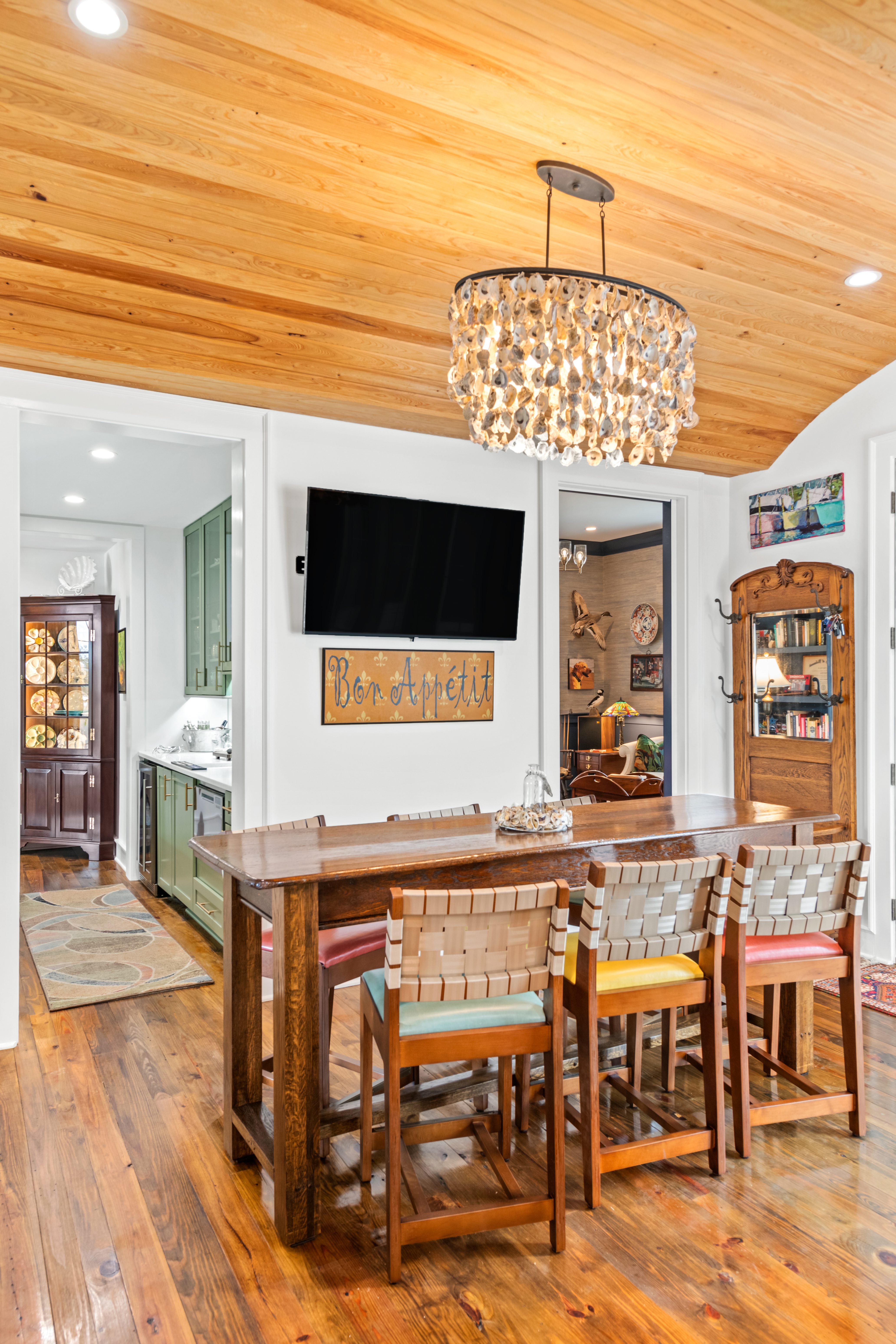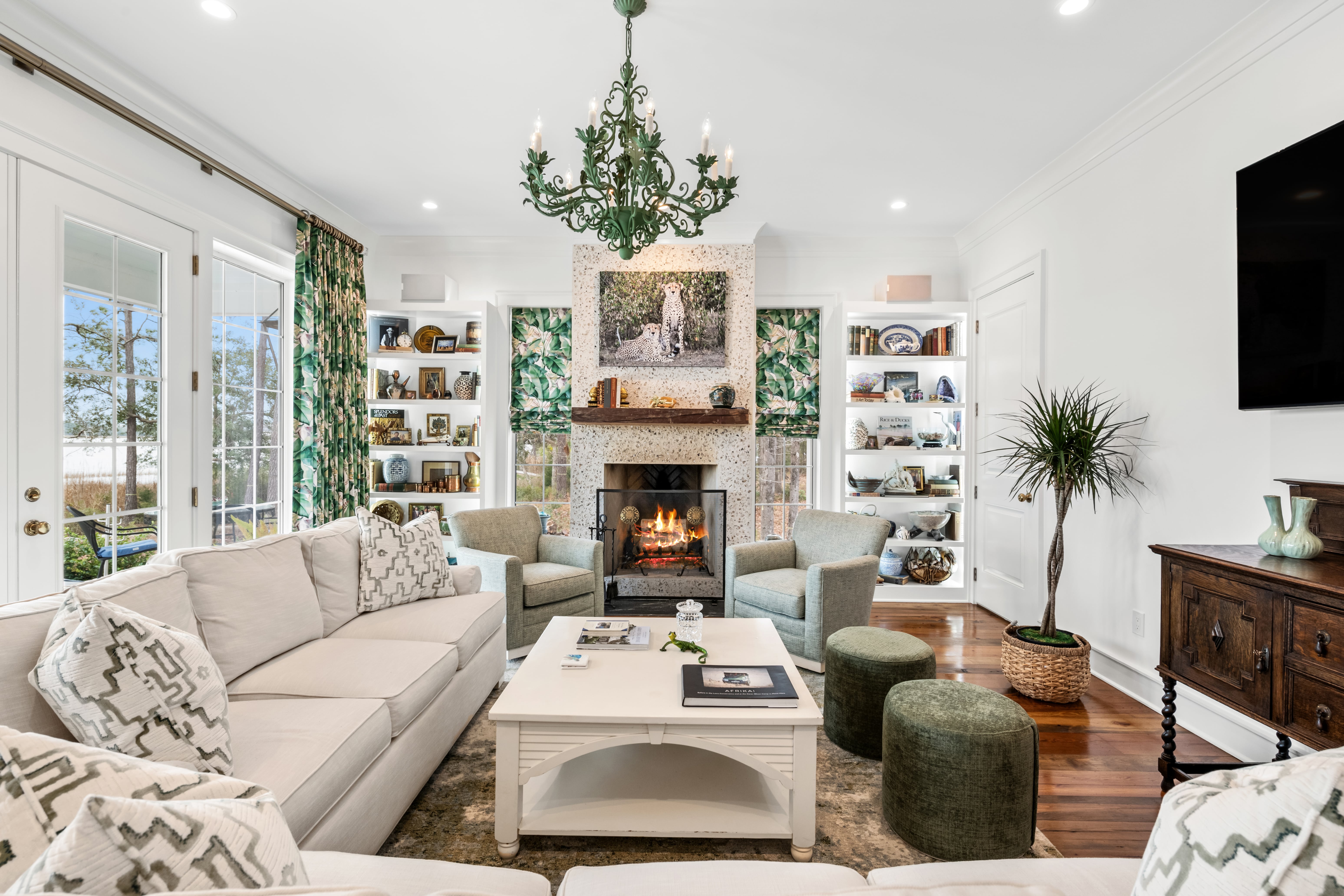 Having built a home before, they understood the challenges, especially since they were seven hours away from the site. Kalman’s straightforward, problem-solving approach and constant communication made all the difference. “He never dismissed an idea. Instead, he would say, ‘That’s a great idea’ or ‘Let’s think about how we can make it work.” Richmond architect, Josh McCullar, drew the plans to fit the setting and Lowcountry aesthetic, and Kalman Construction adapted them to fit the budget. The couple aimed to ensure the home felt like it had always been there rather than appearing trendy or new. “The house was designed around our antiques and collections from our travels,” they explain, “We didn’t have to buy much new, but built around what we already had.”