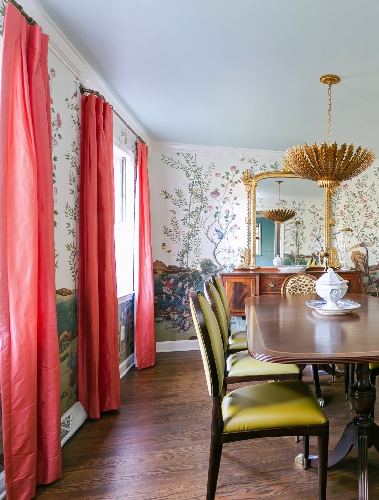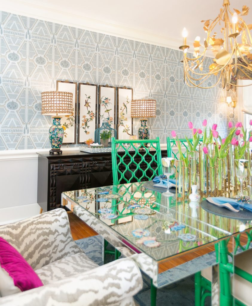 If you think of your room as a pie chart, about 60 percent should be the primary and secondary bold prints, 20 percent smaller prints and designs, and 10-15 percent neutrals. The eye needs a place to rest so layering too many patterns will look and feel chaotic. For example, if your walls have a heavy print, add solid curtains. Patterns work best when they have plenty of space to breathe.
