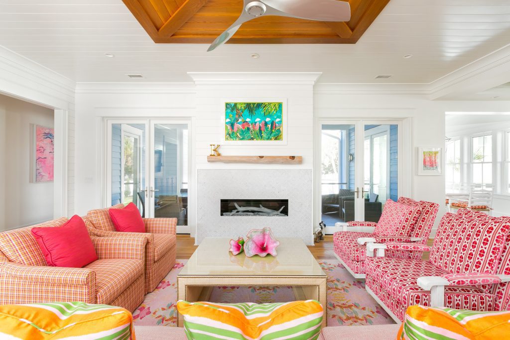 Distribute patterns evenly throughout the room, keeping patterns to one side of a room will throw the whole space off balance. Be aware of other design elements of the room, such as a fireplace or crown molding, that contain patterns. These elements need to be considered in the grand scheme.