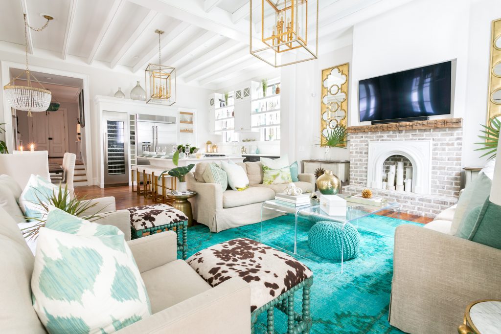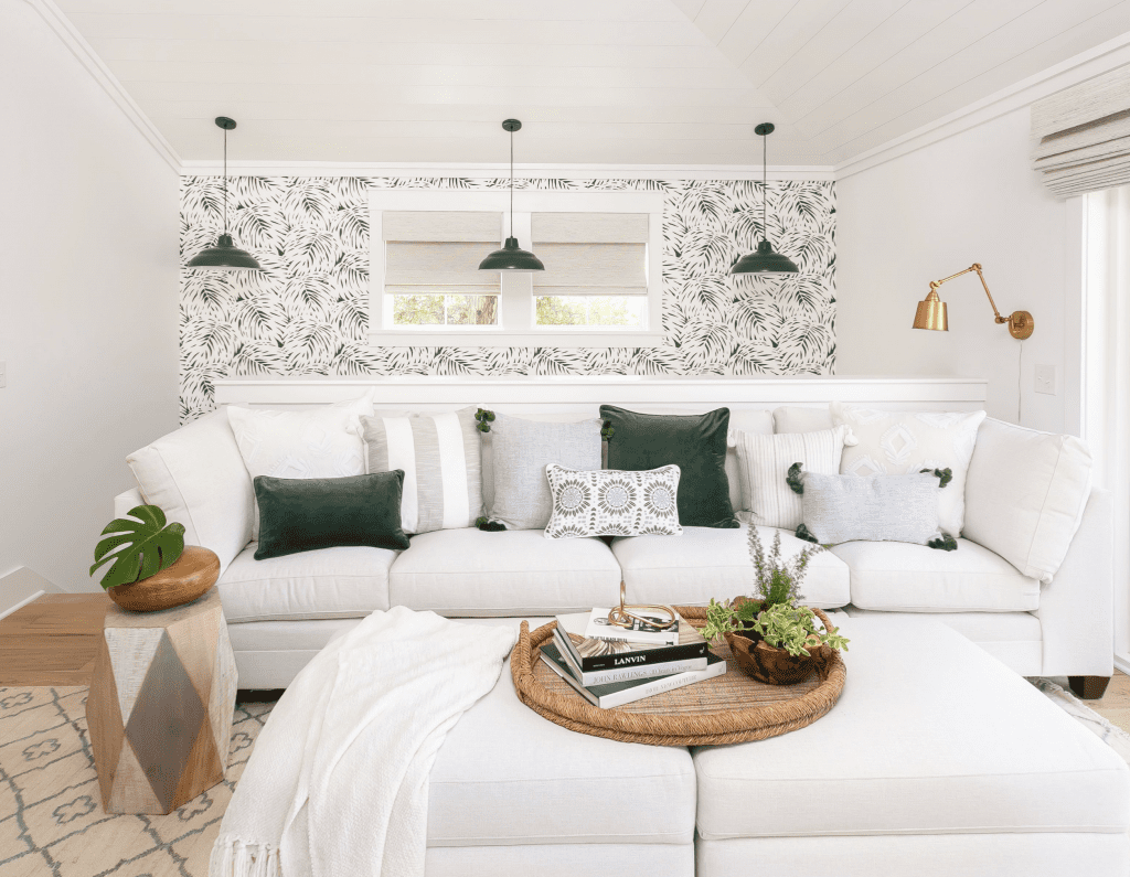 If you decided to go with a monochromatic theme, consider adding one accent color that elevates the space and makes your room pop. Think about which color will make your patterns stand out and add splashes of it throughout the room with a well placed vase, books, or throw. Plants are a great way to add an accent color if want a natural feel that will breathe life into your space.