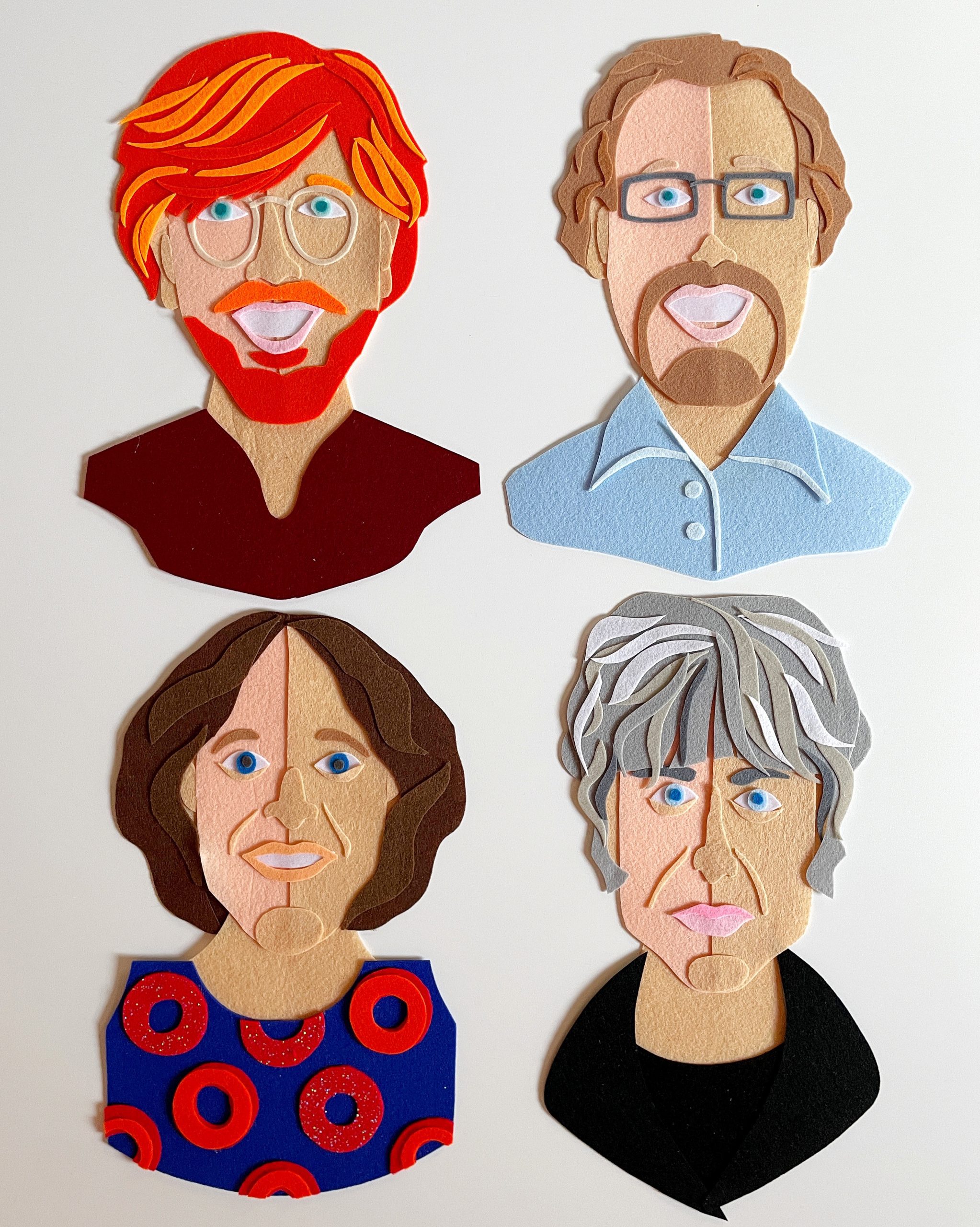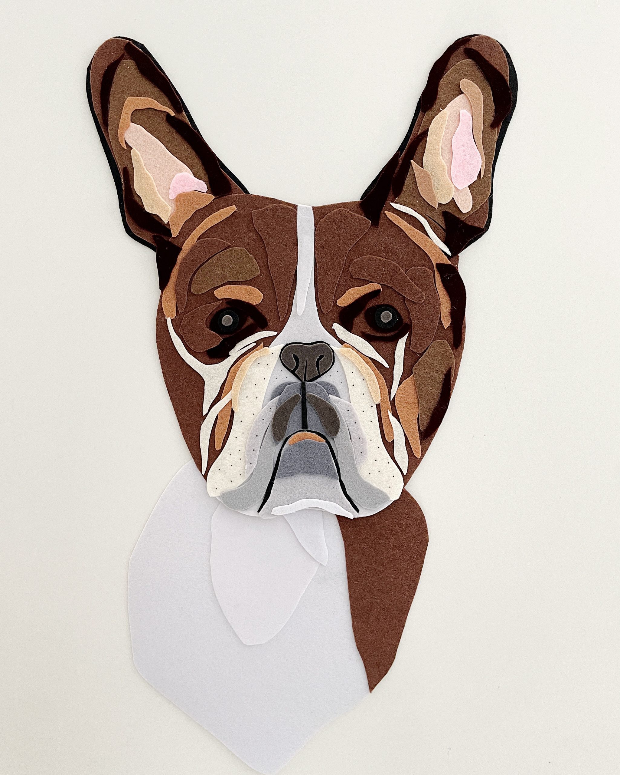 It all began during the pandemic. I was home with 4 kids while my husband was at work. I was keeping the kids busy with a daily art project. One day we opened a box of felt and made some collages. A few days later I made an abstract self portrait, posted it on Instagram, and the response was so positive. I received orders from that day and haven’t stopped since.
