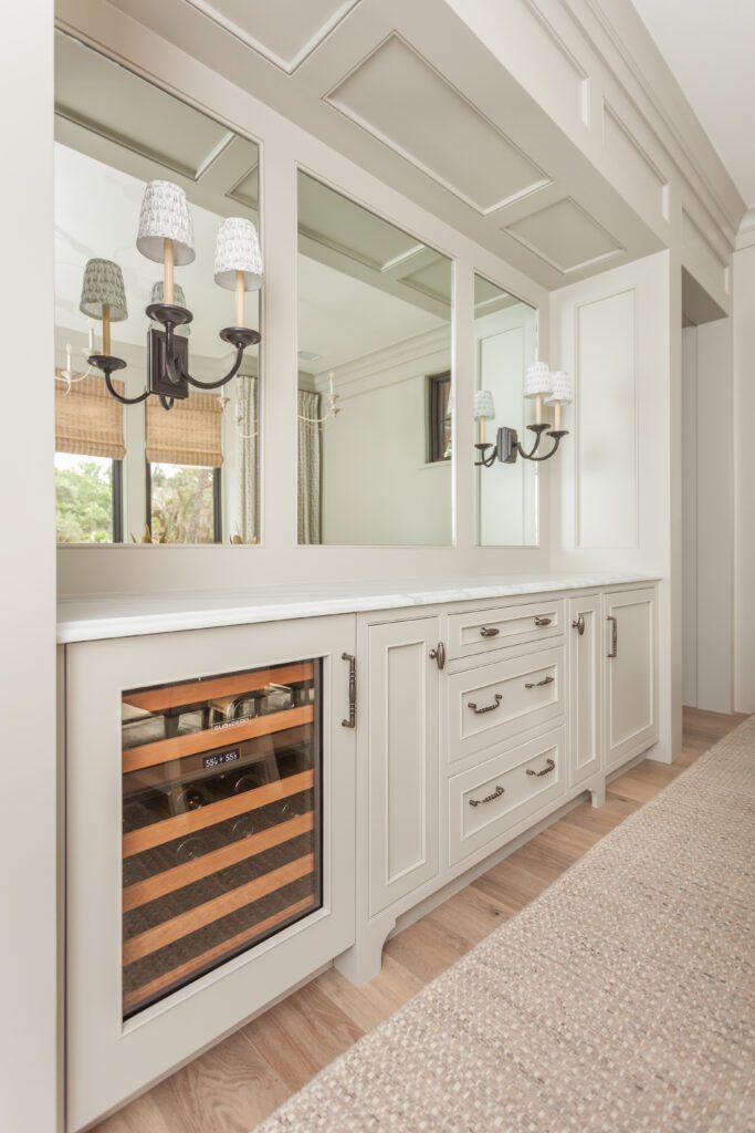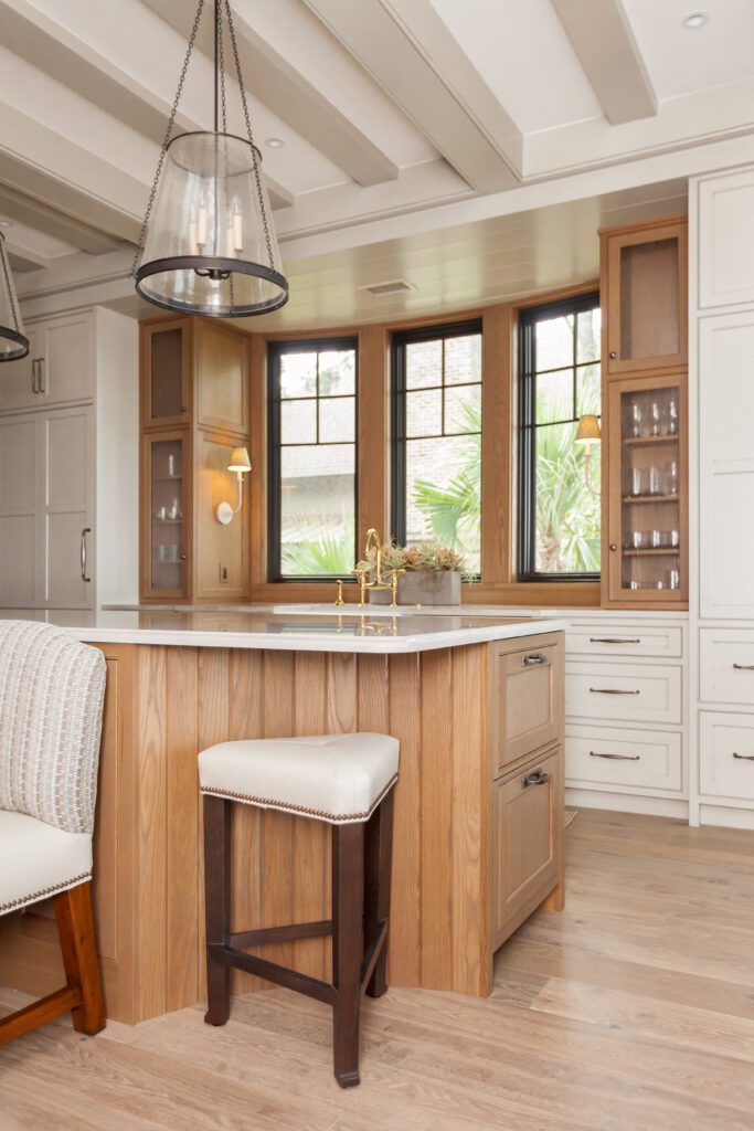 Ultra-luxe style meets highly practical designs in this home perfected by architect Bill Huey, builder Elliott Hobbs, and interior designer Rebecca Carter of Red Element Design. Together, this team worked alongside the custom cabinet professionals at Mount Pleasant Kitchen and Bath to create a luxurious home aesthetic complete with hidden function and elevated style.