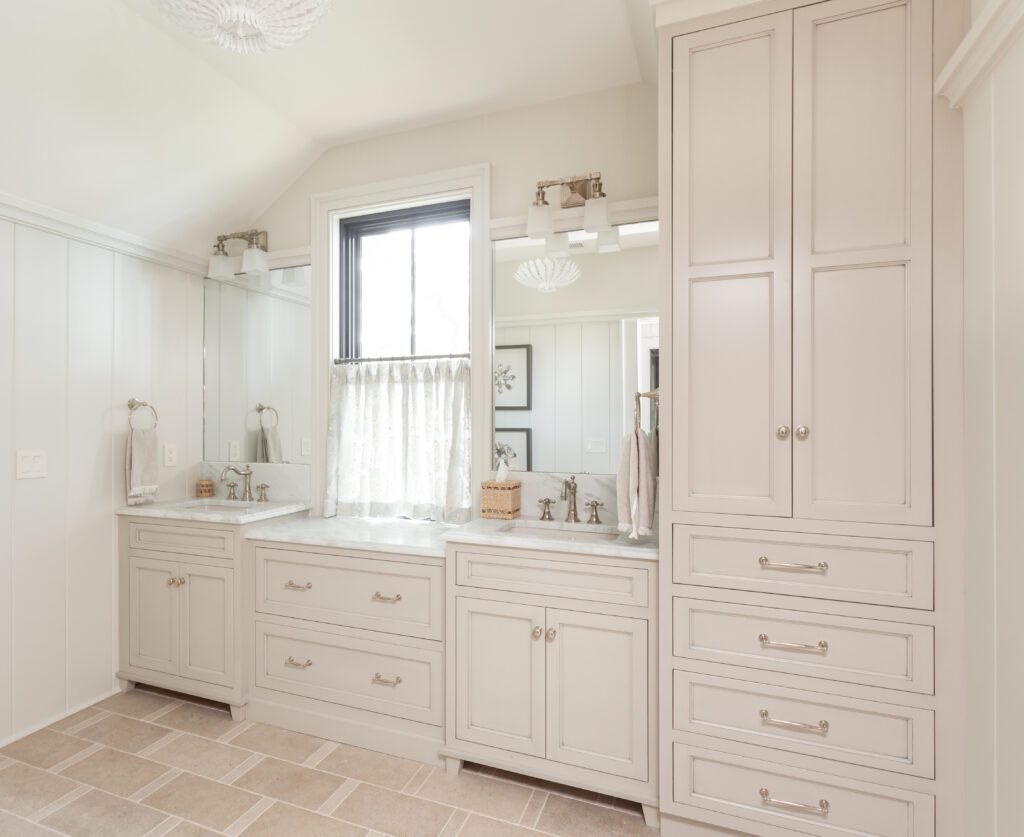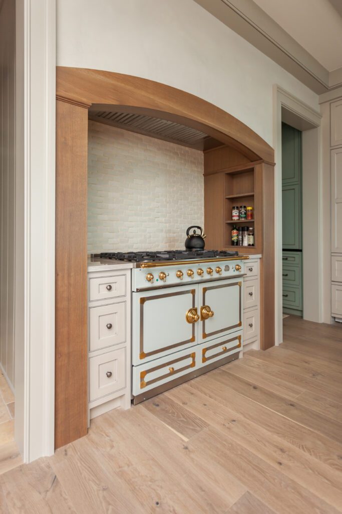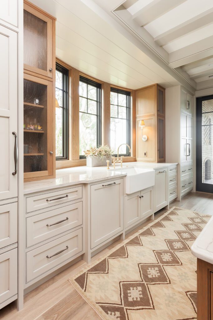 Each set of cabinetry throughout the home is framed and inset, designed to tie in with the surrounding millwork for a seamless look that mimics the look of historic architecture.