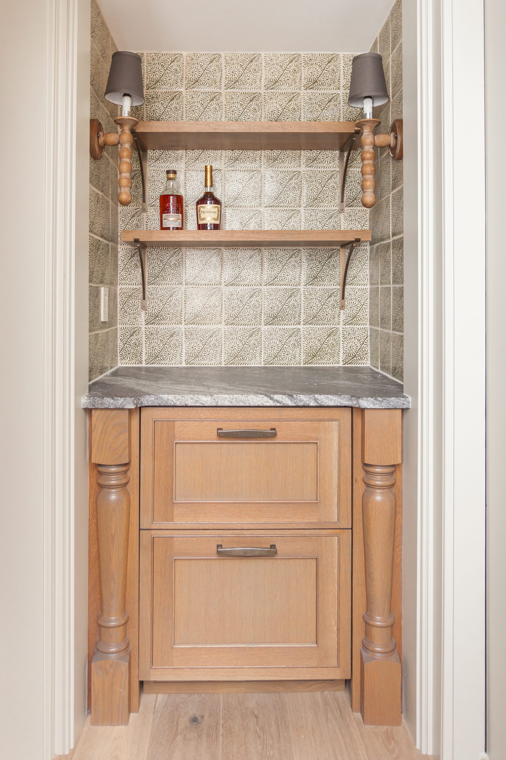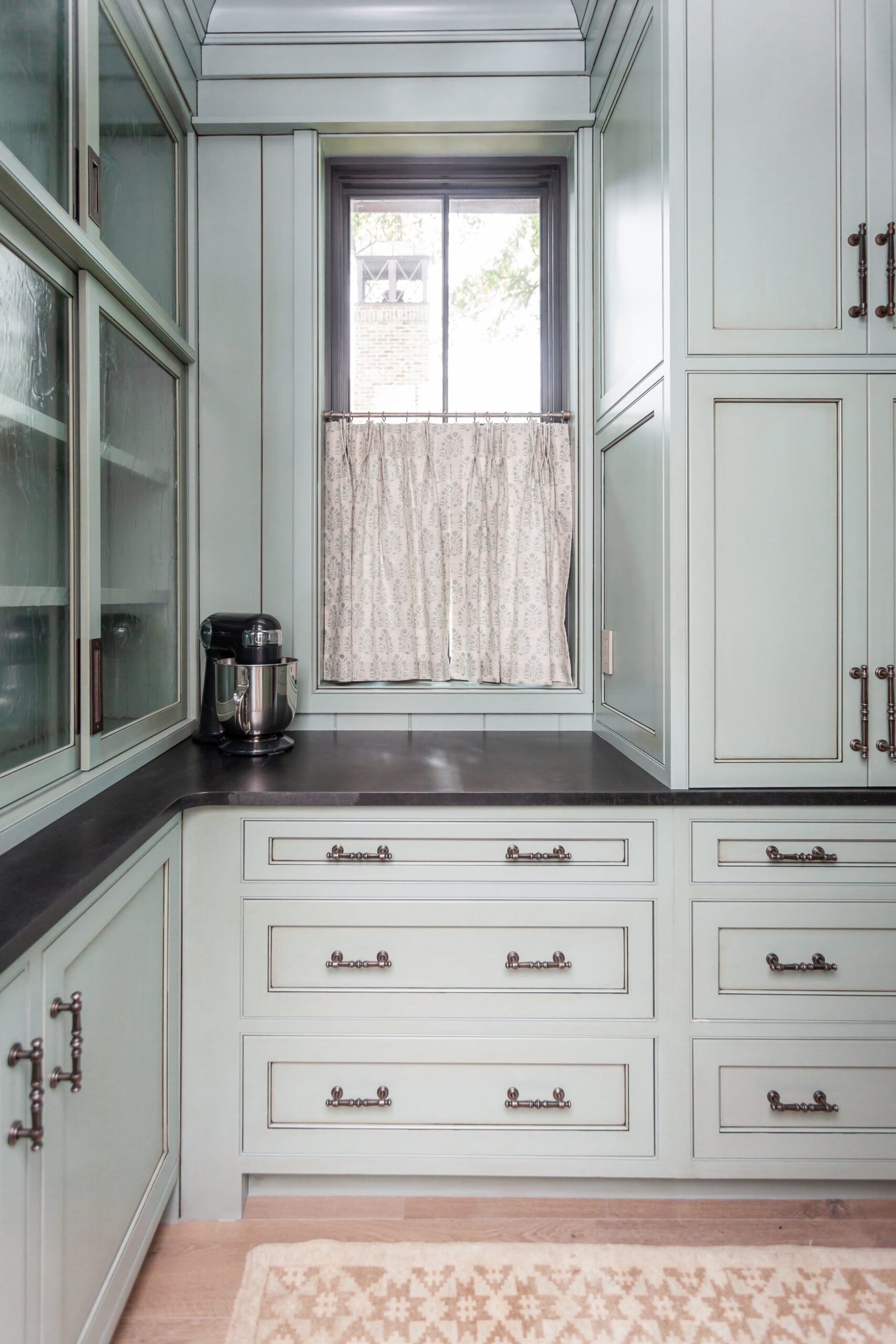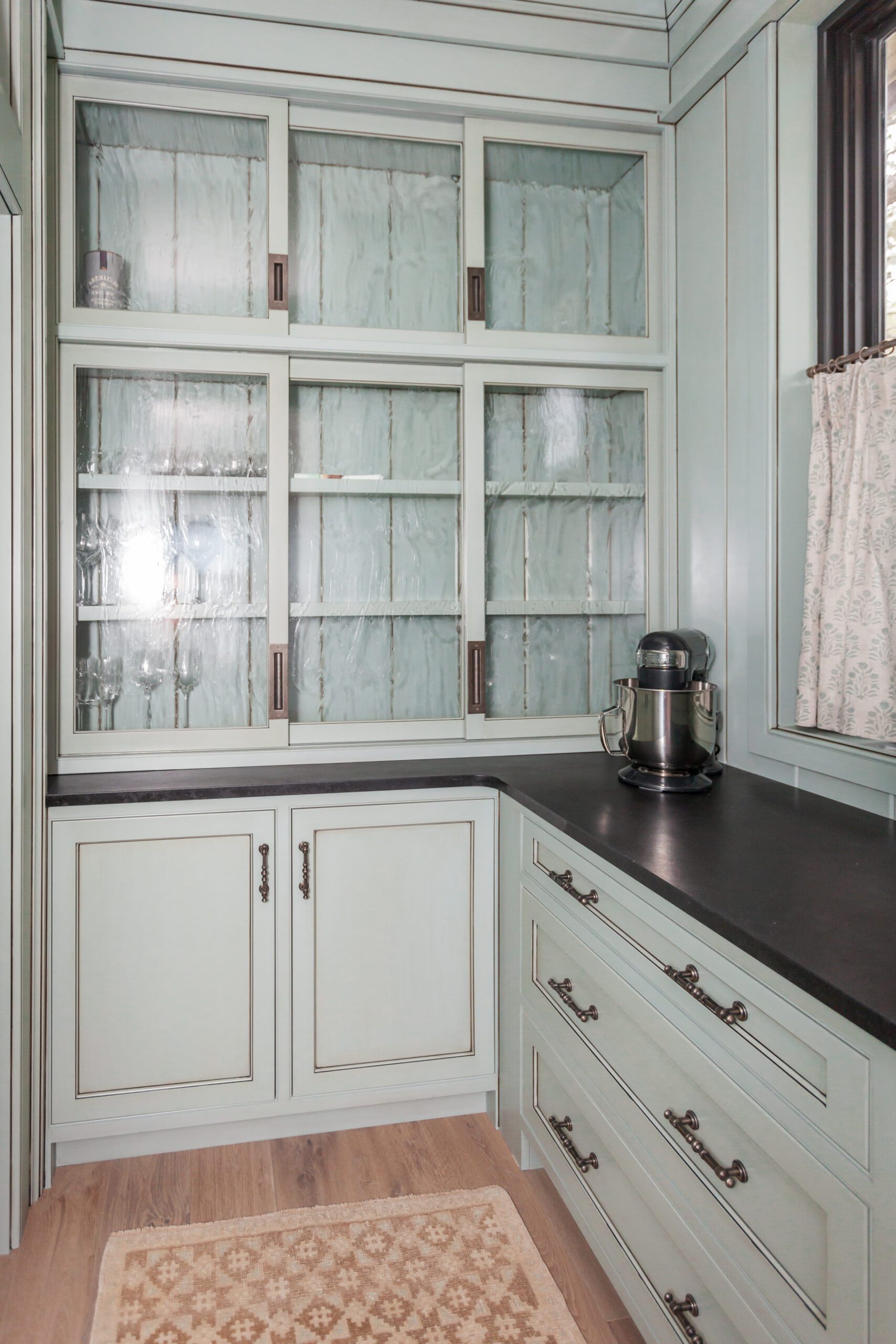 Each set of cabinetry throughout the home is framed and inset, designed to tie in with the surrounding millwork for a seamless look that mimics the look of historic architecture.