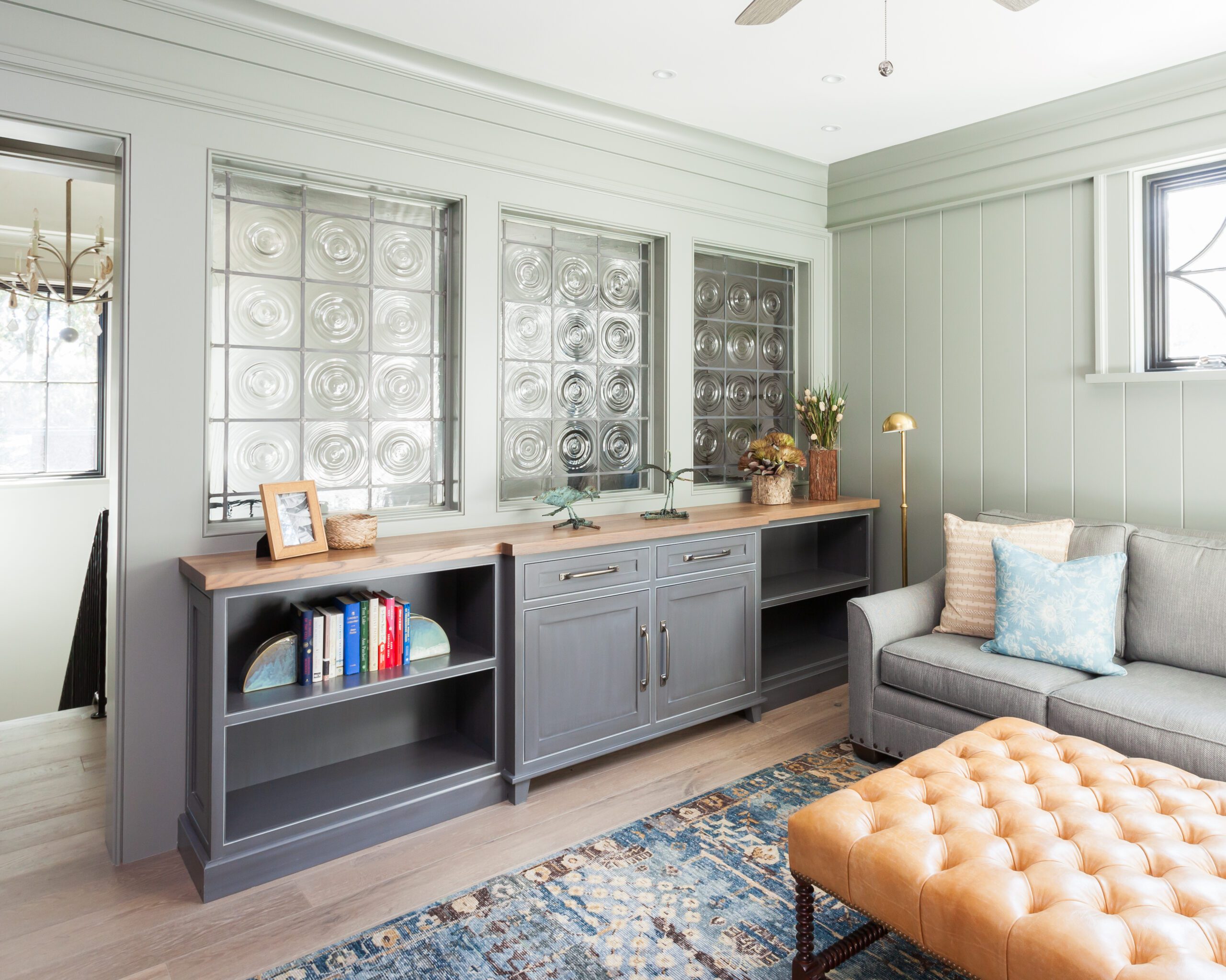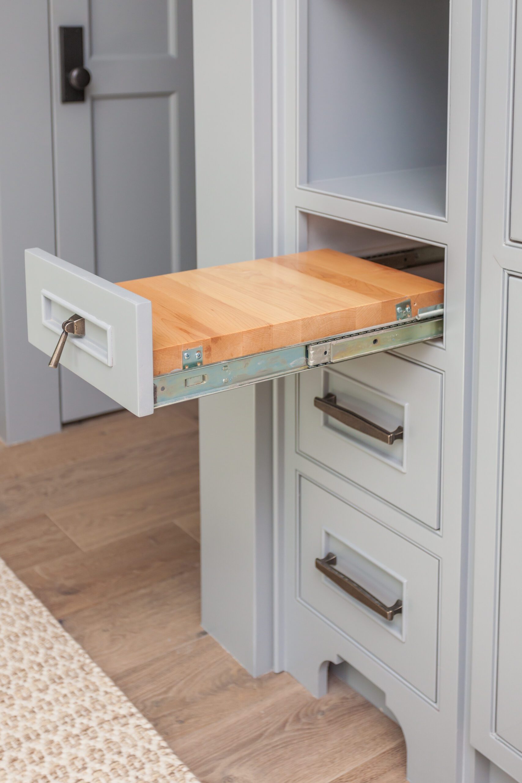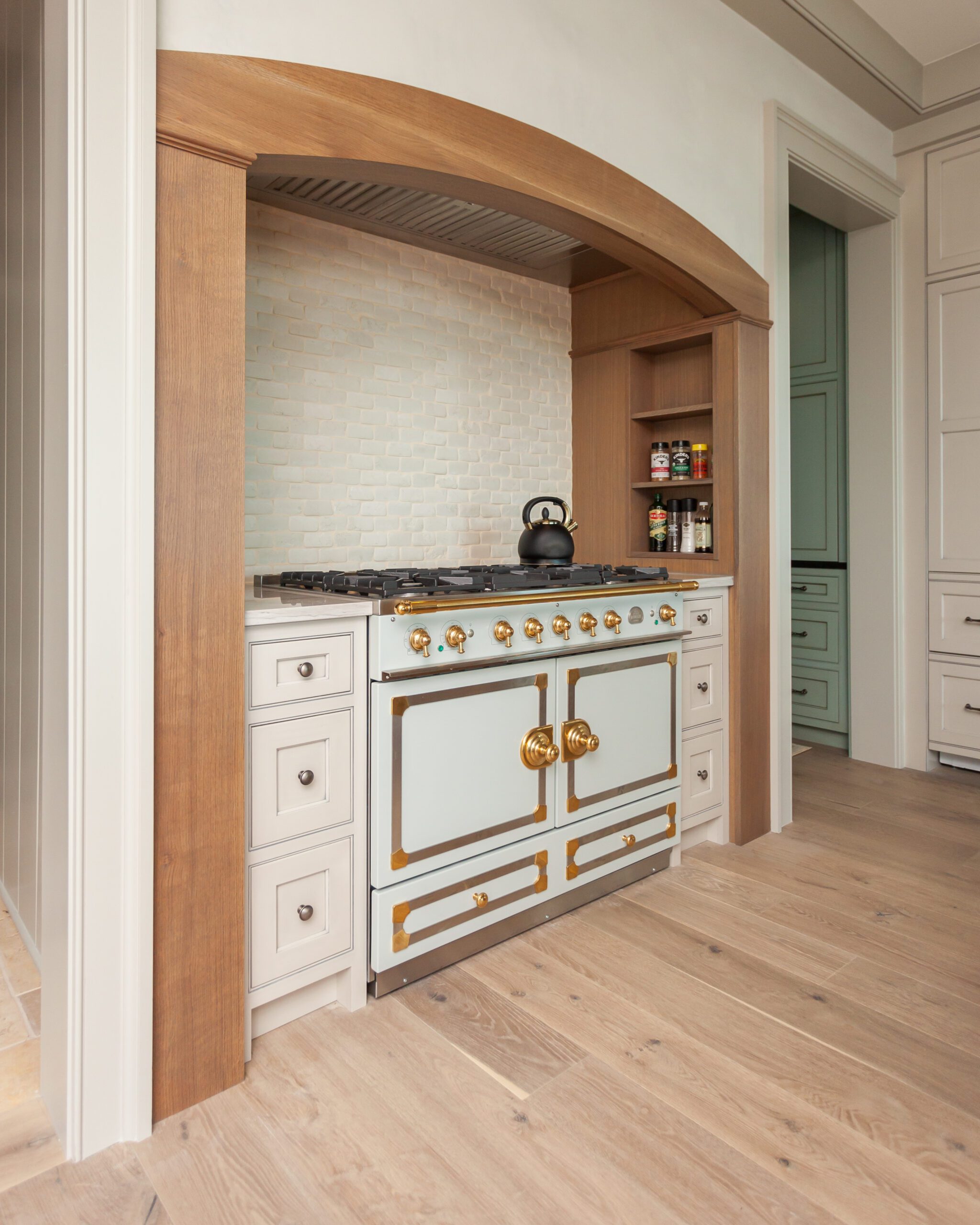 Each set of cabinetry throughout the home is framed and inset, designed to tie in with the surrounding millwork for a seamless look that mimics the look of historic architecture.