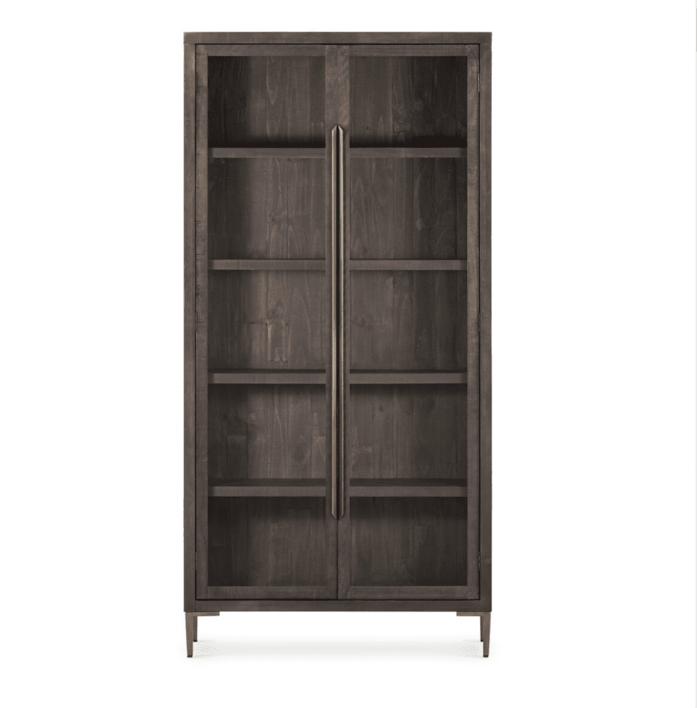 “This is one of those pieces that gets it right. The dark, reclaimed wood, sleek iron hardware, and clean glass doors evoke a modern yet warm and grounded feel. Whether you style it with books, barware, or your favorite finds, it adds character without trying too hard.”