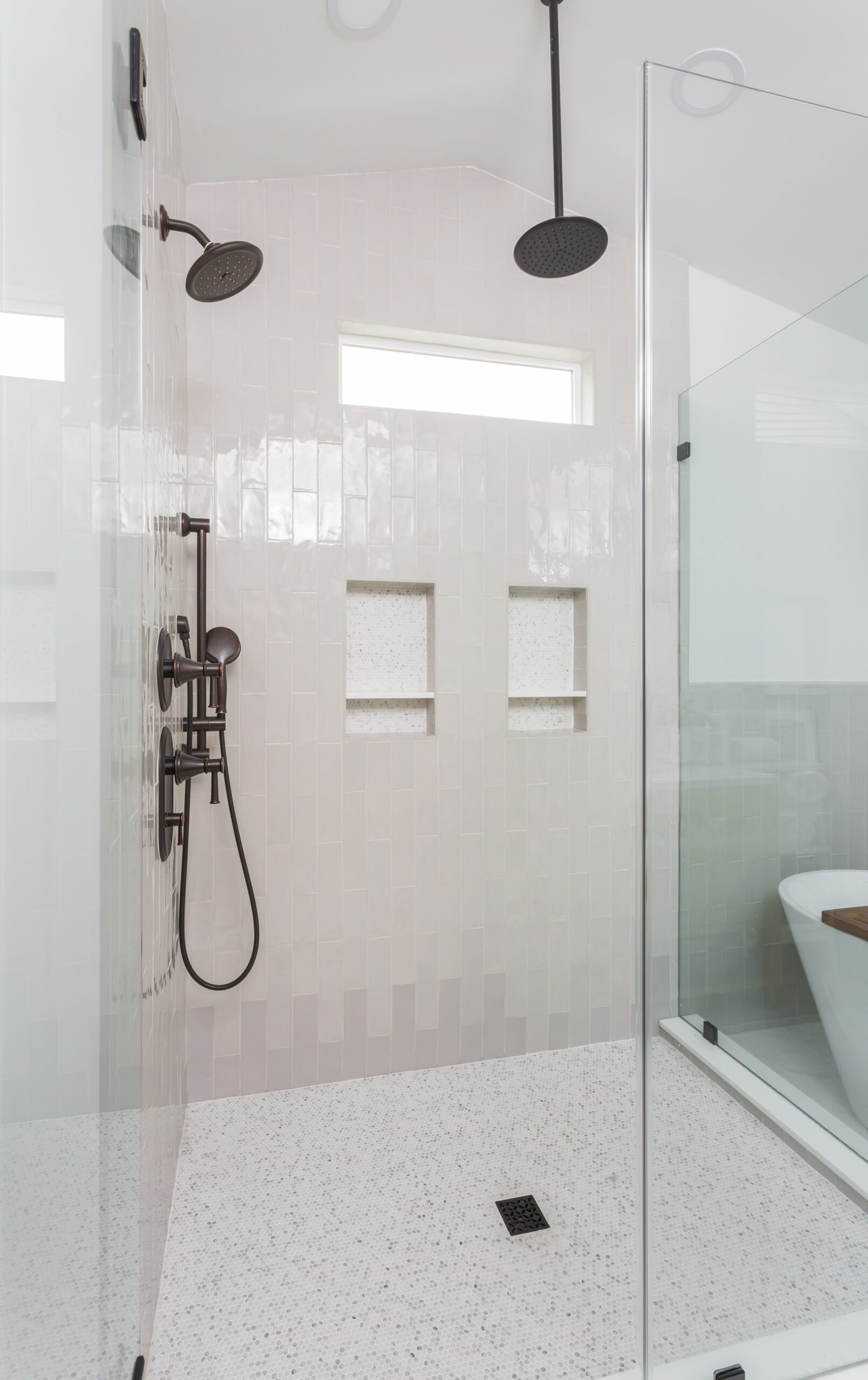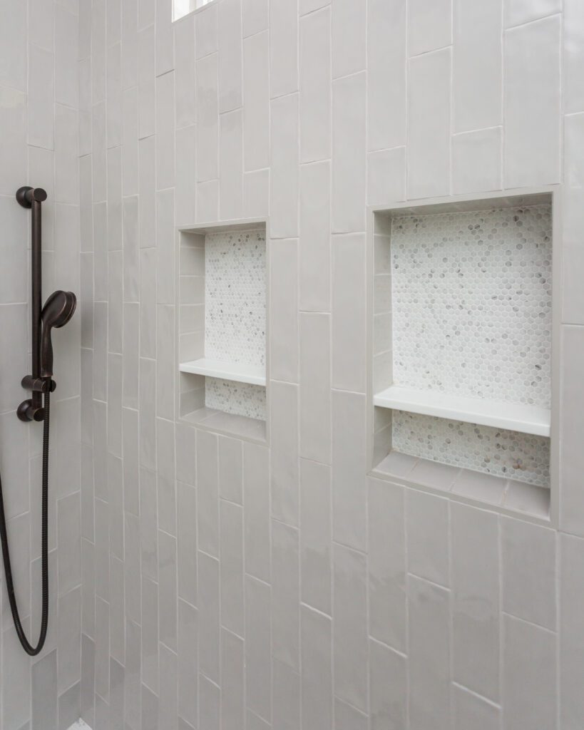 A shower niche offers stylish storage for essentials, keeps your shower organized, and enhances the space’s sleek, modern appearance.