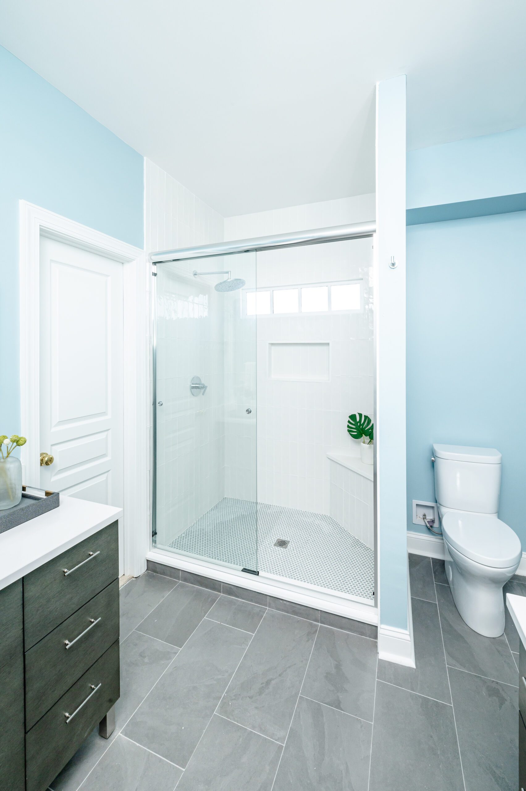 A walk-in shower offers easy access, a spacious feel, and a sleek, modern look, transforming your bathroom into a stylish retreat.