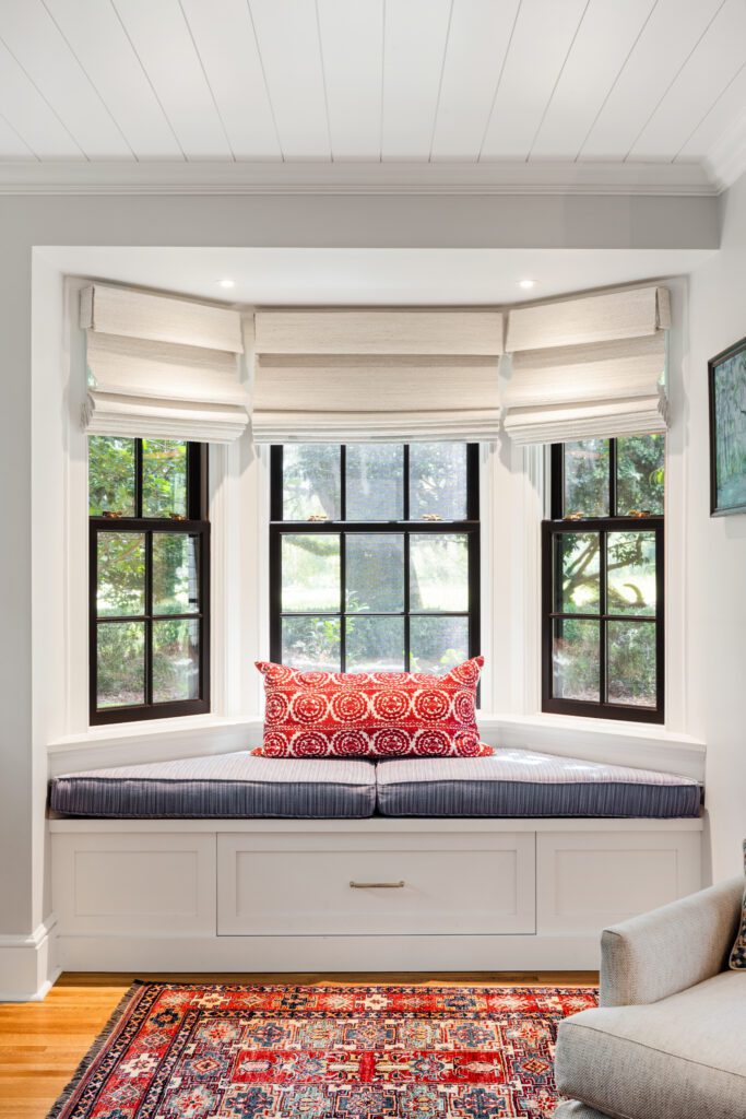 Hurricane windows surround this custom-built window seat with style and impact-rated safety.