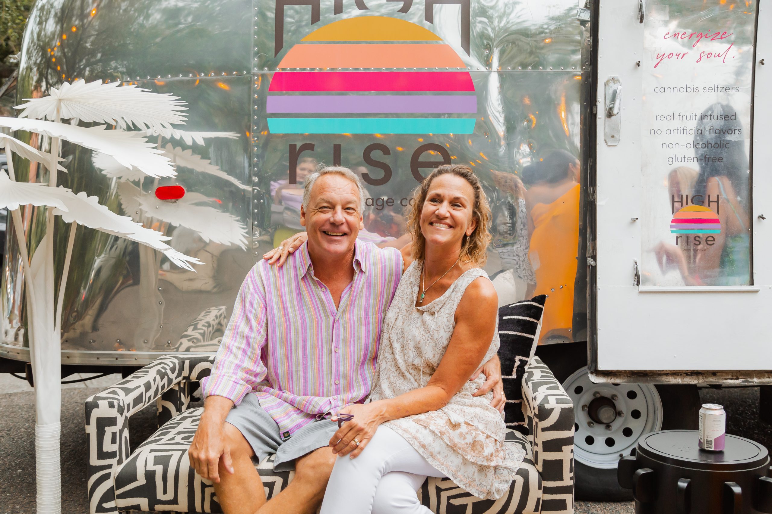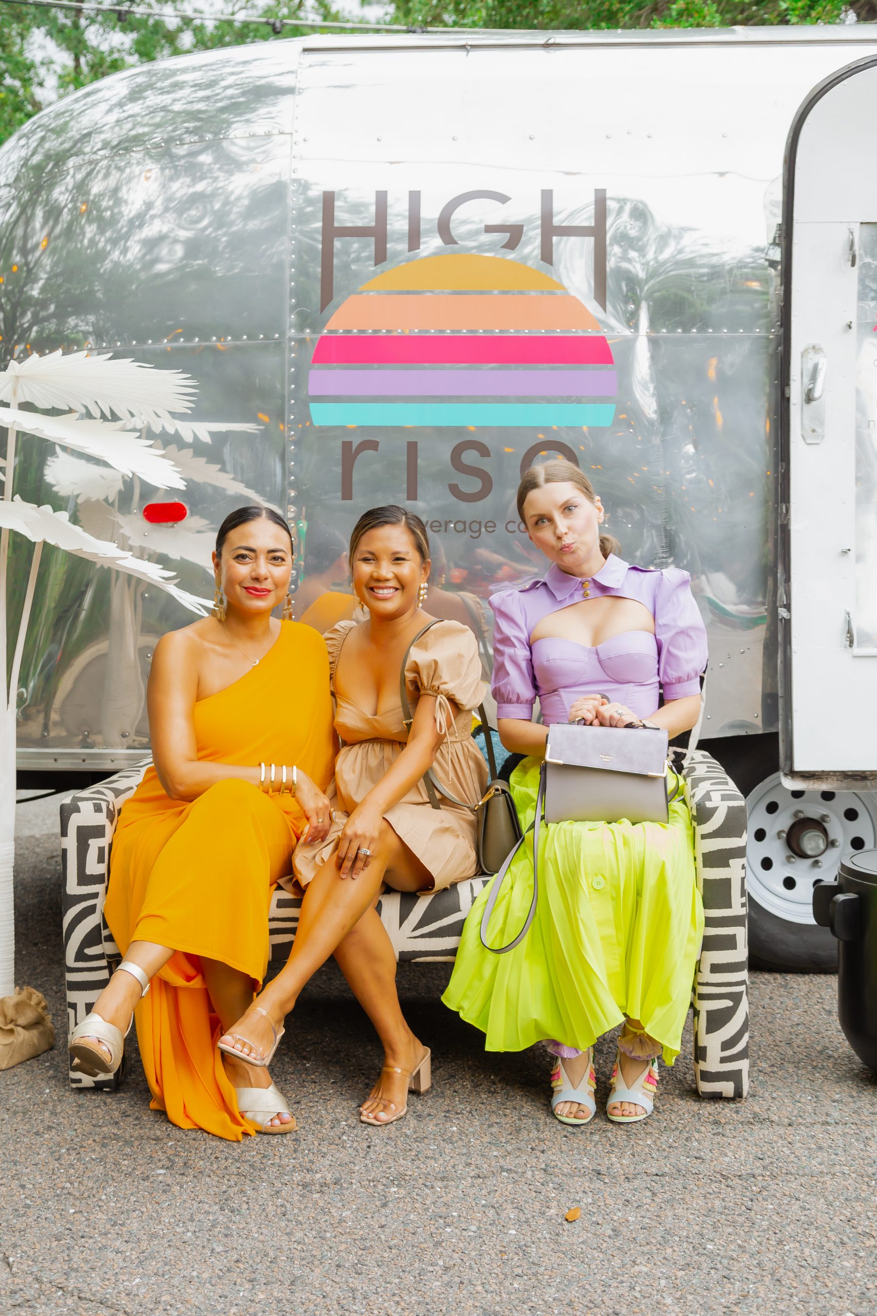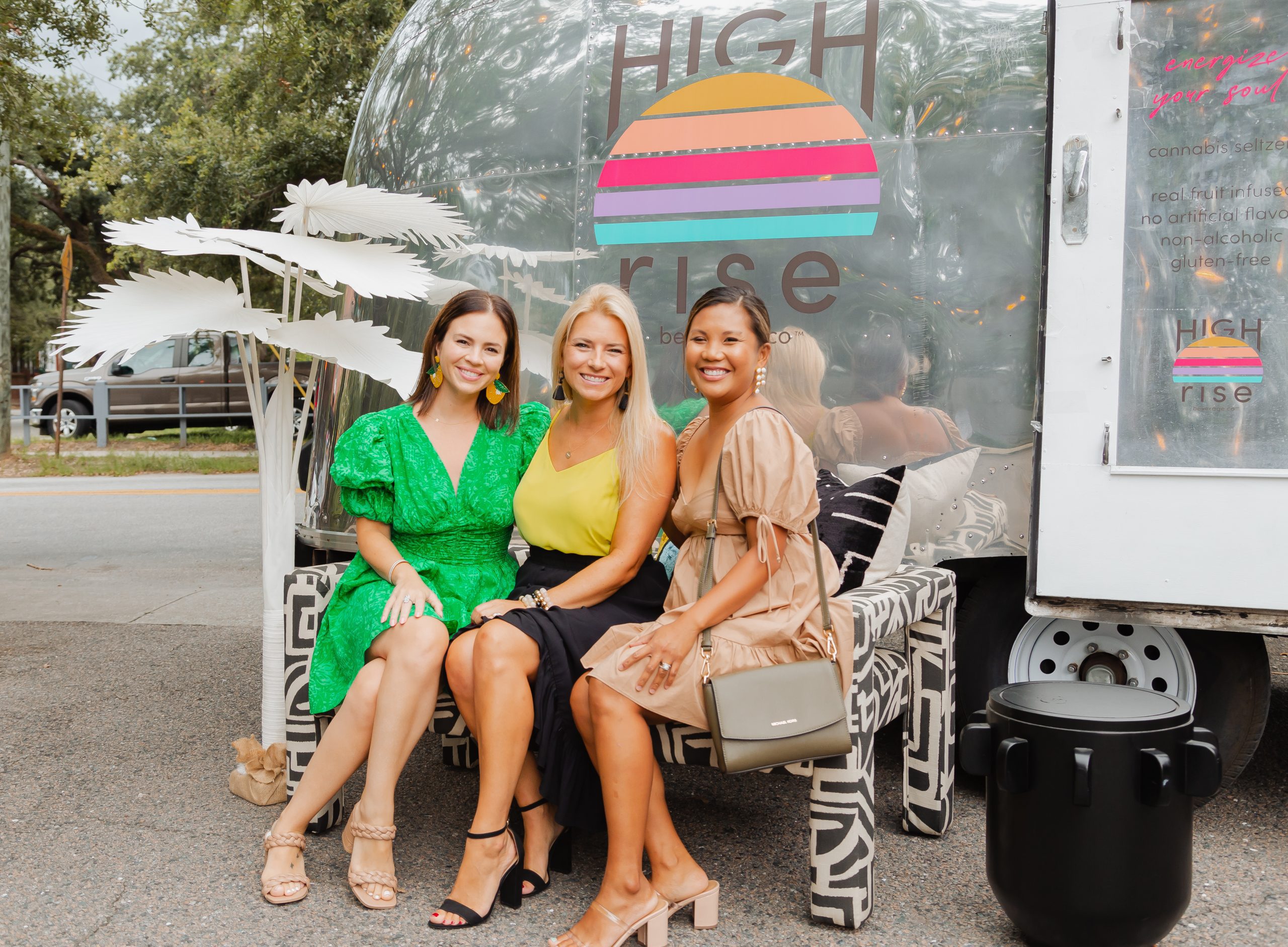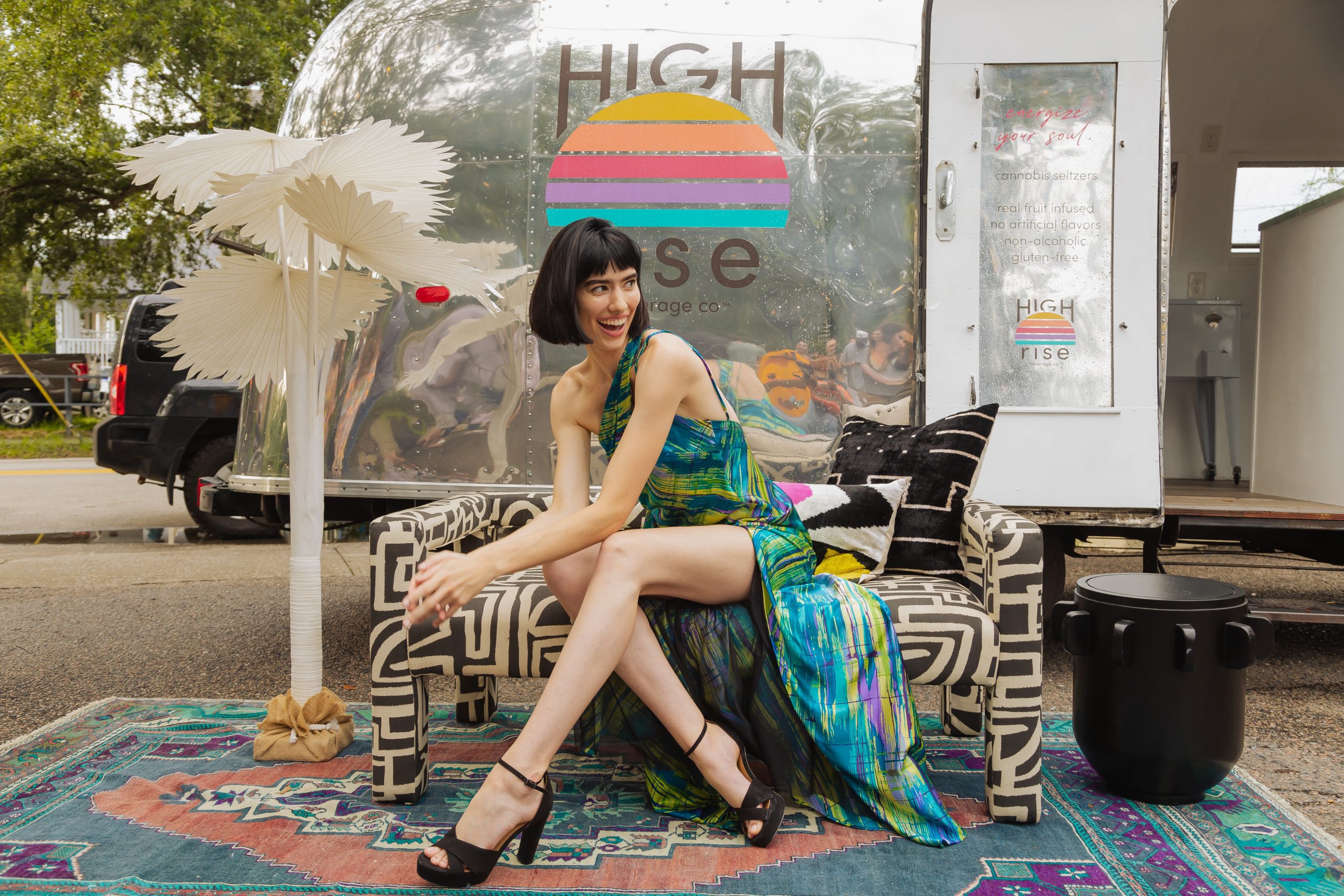 The decor included planters from Iola Modern and a gorgeous Turkish rug from Zuma Imports. A patterned sofa from House of Nomad sat in front of a retro airstream which was so kindly sponsored by High Rise and their innovative CBD-based beverages.