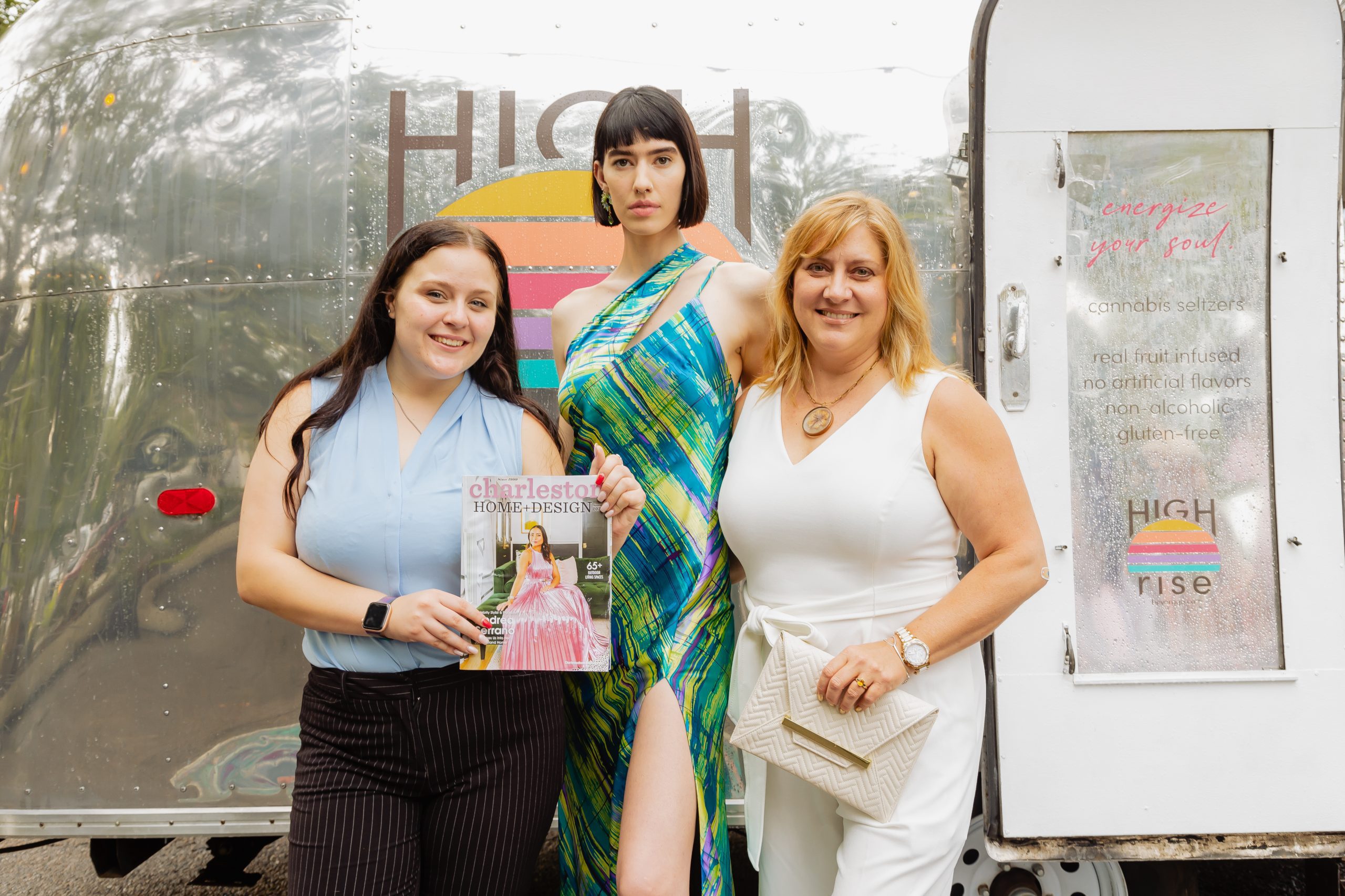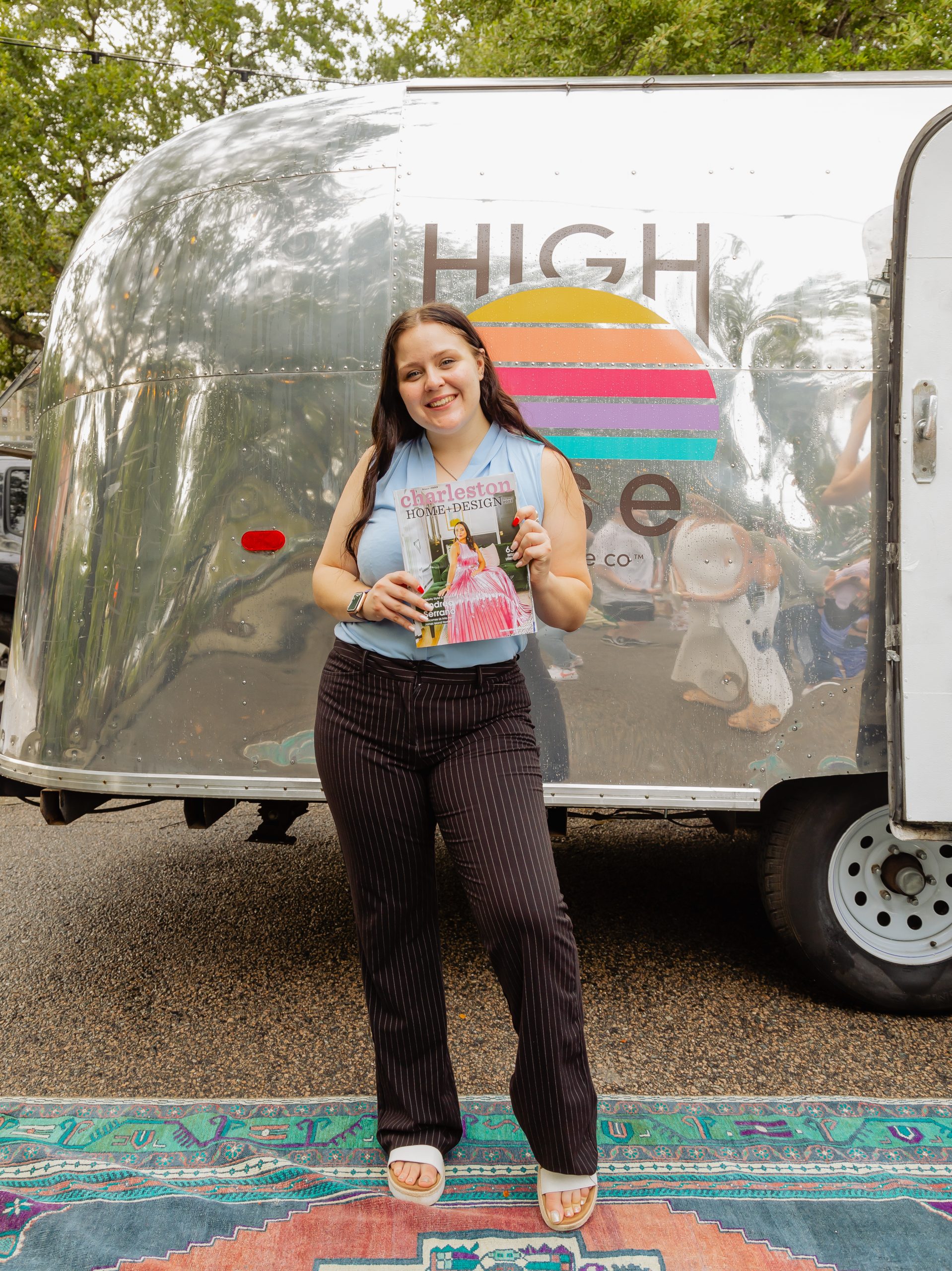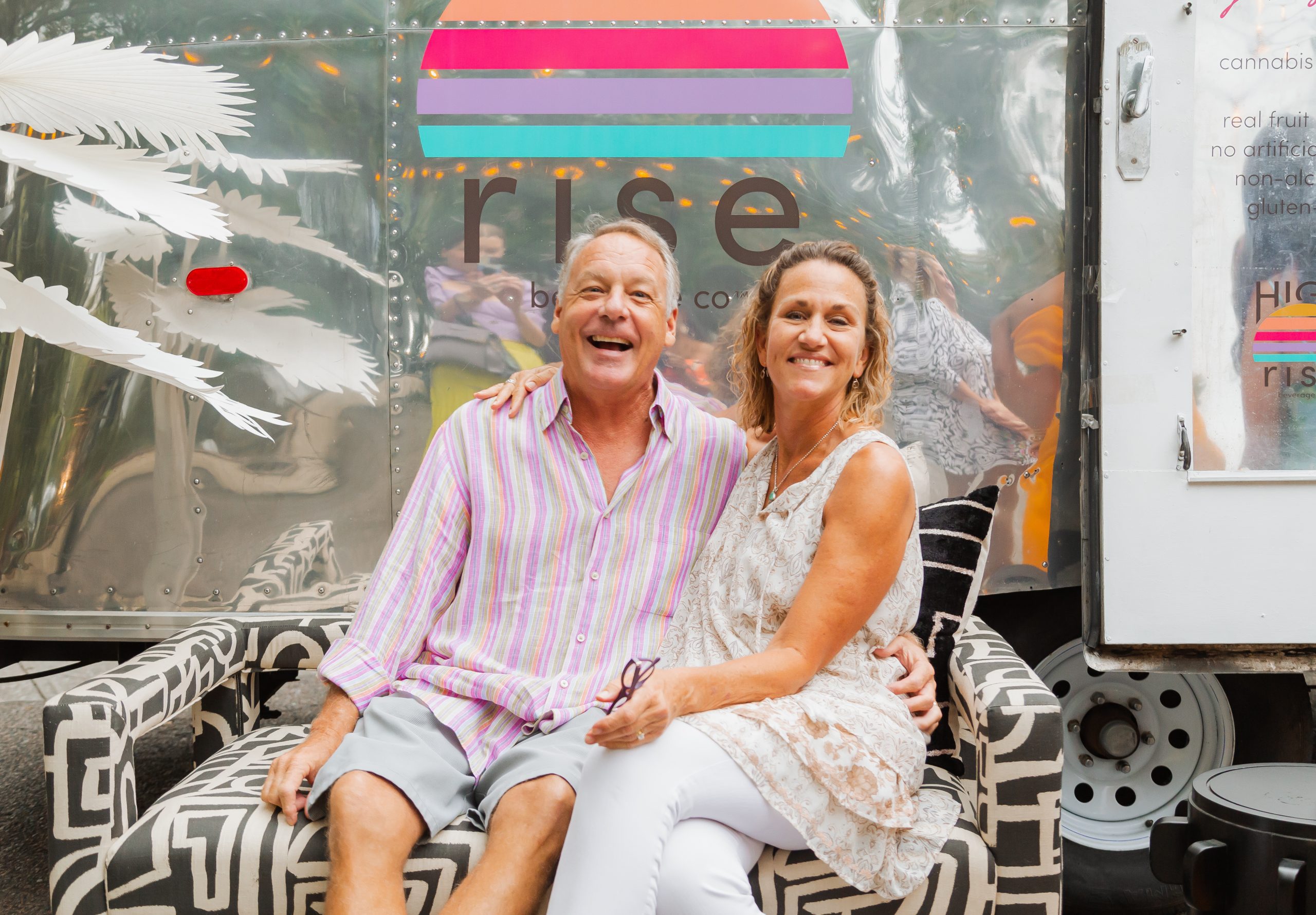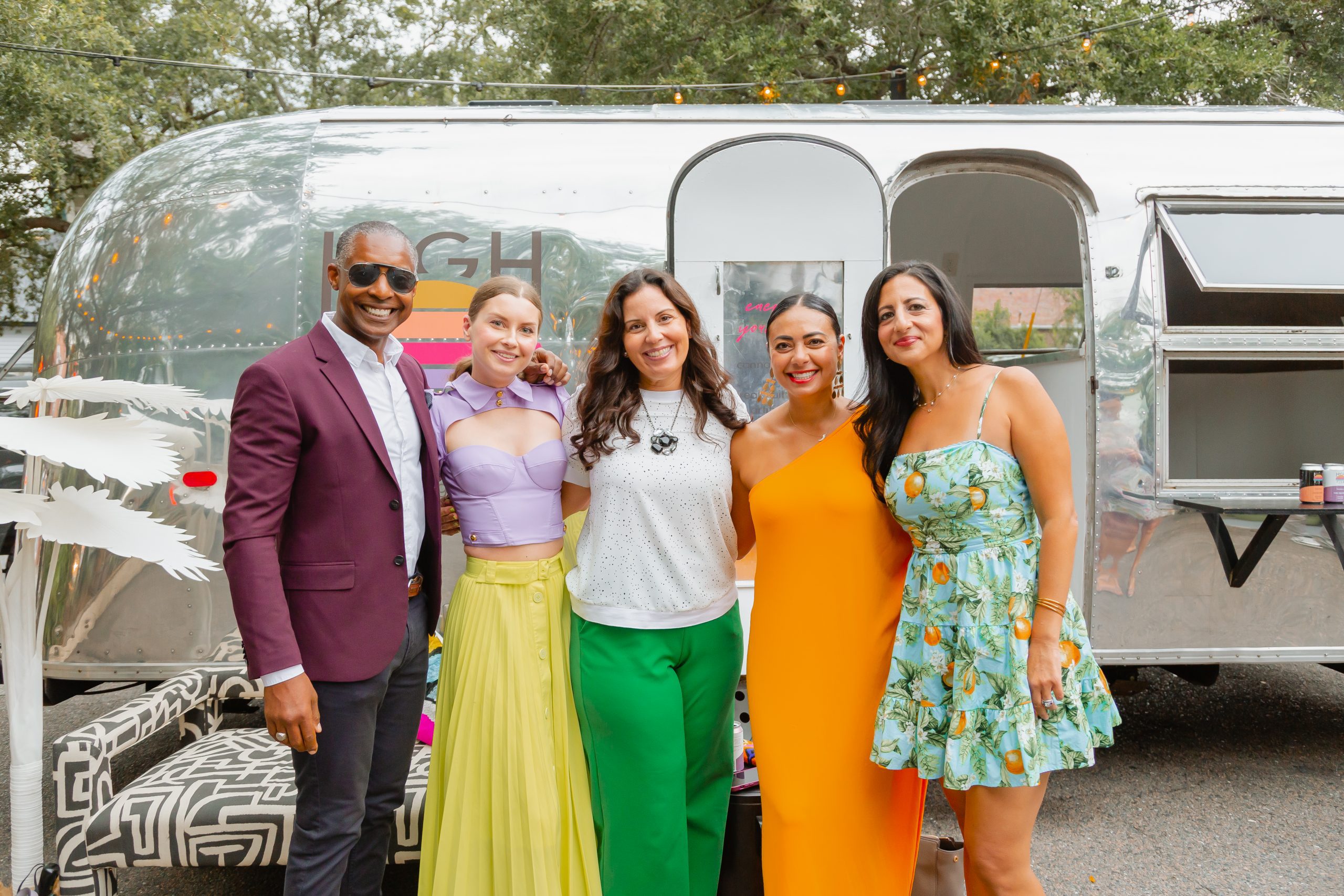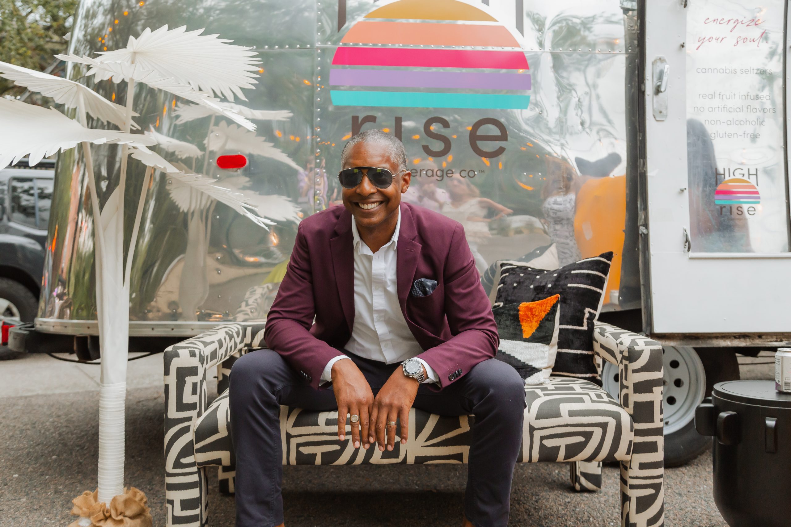 The decor included planters from Iola Modern and a gorgeous Turkish rug from Zuma Imports. A patterned sofa from House of Nomad sat in front of a retro airstream which was so kindly sponsored by High Rise and their innovative CBD-based beverages.