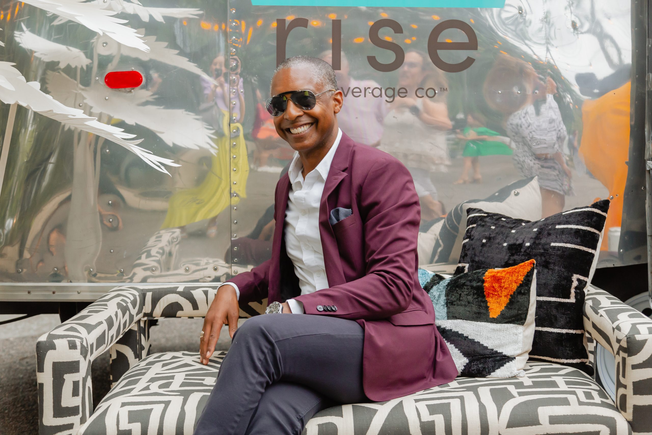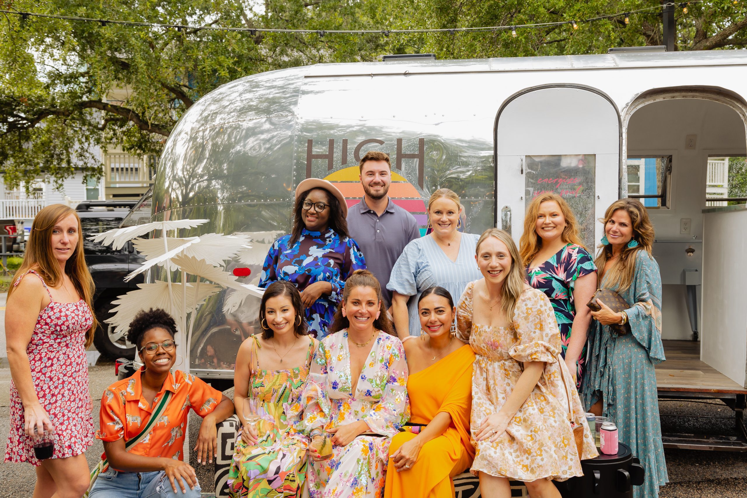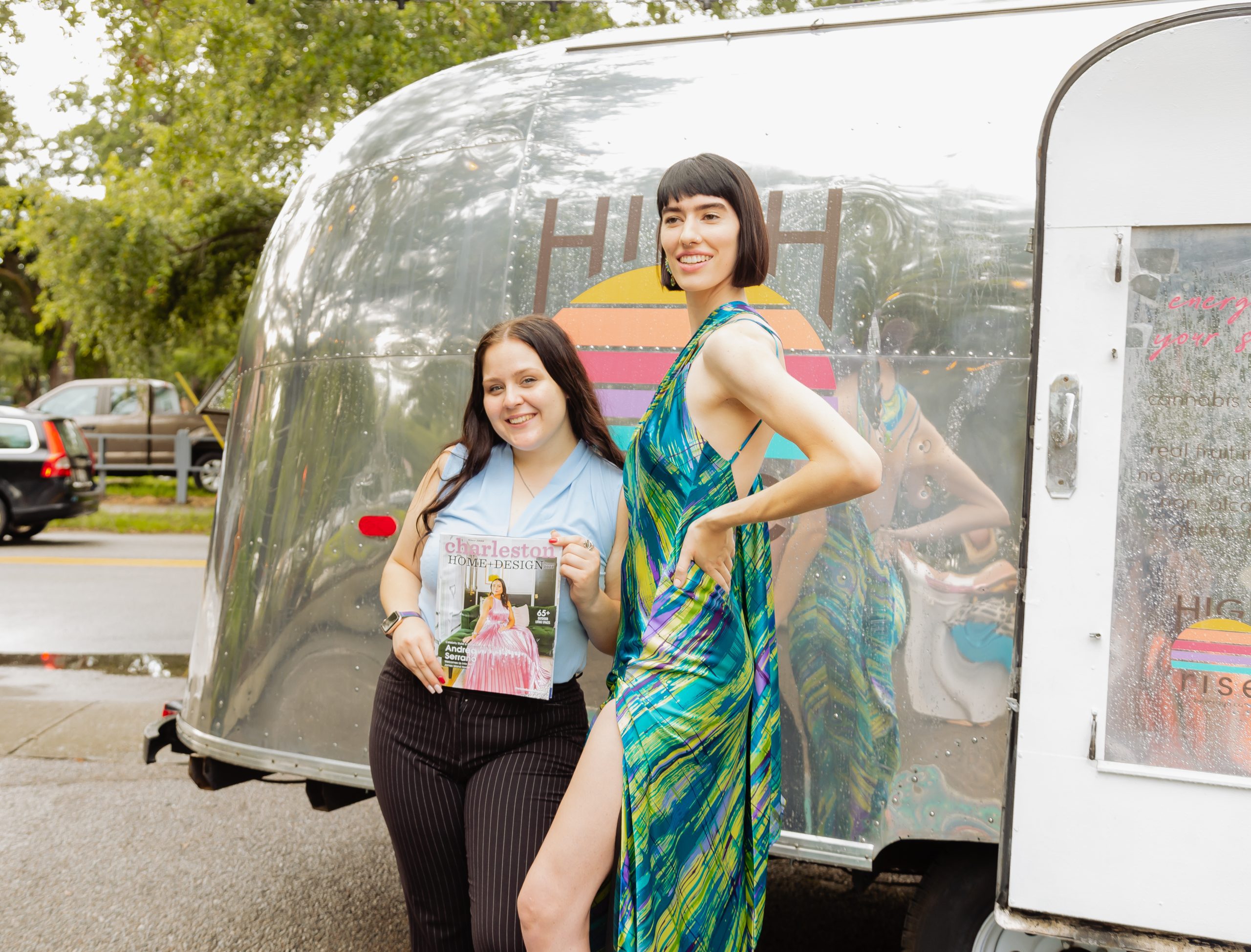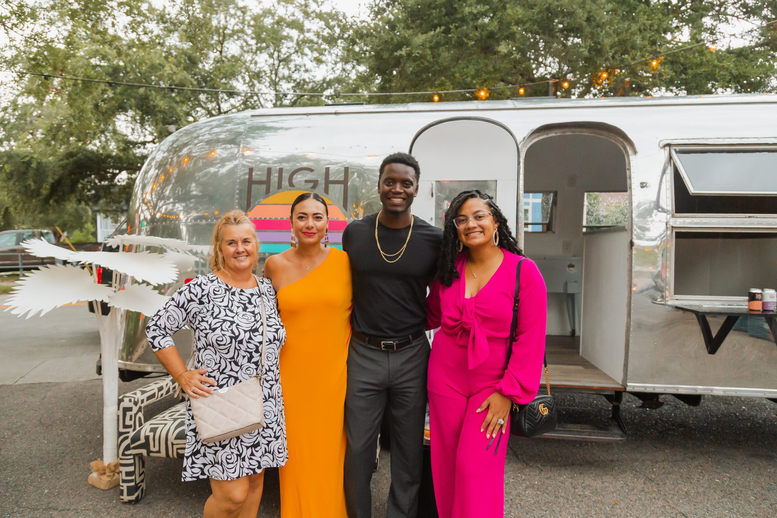 The decor included planters from Iola Modern and a gorgeous Turkish rug from Zuma Imports. A patterned sofa from House of Nomad sat in front of a retro airstream which was so kindly sponsored by High Rise and their innovative CBD-based beverages.